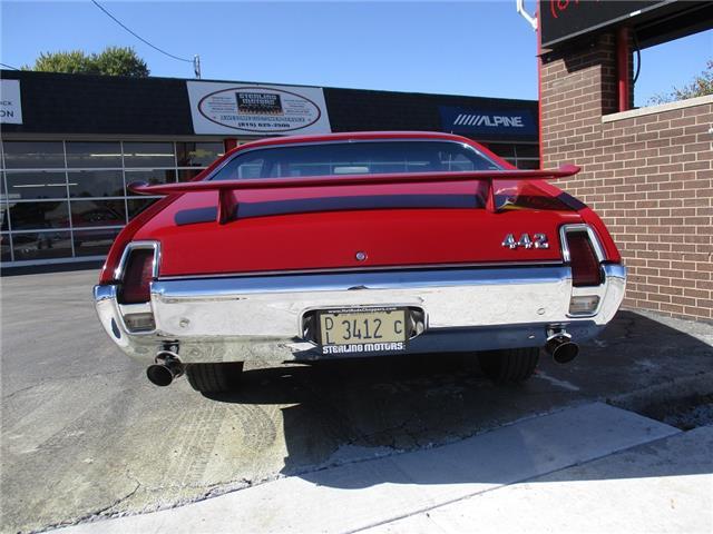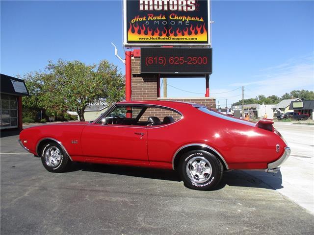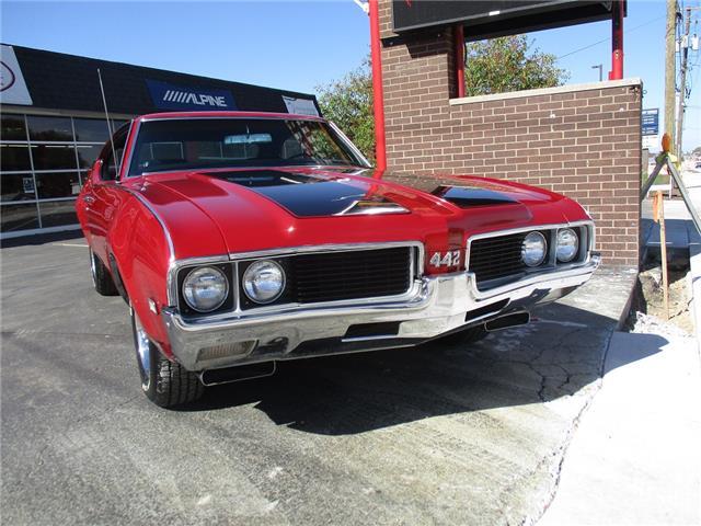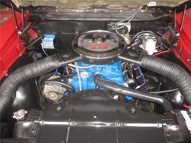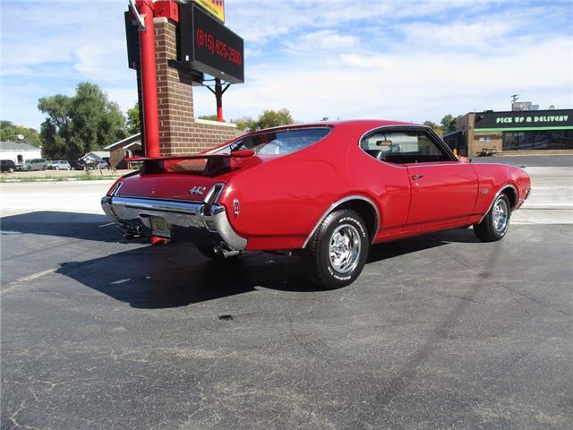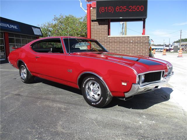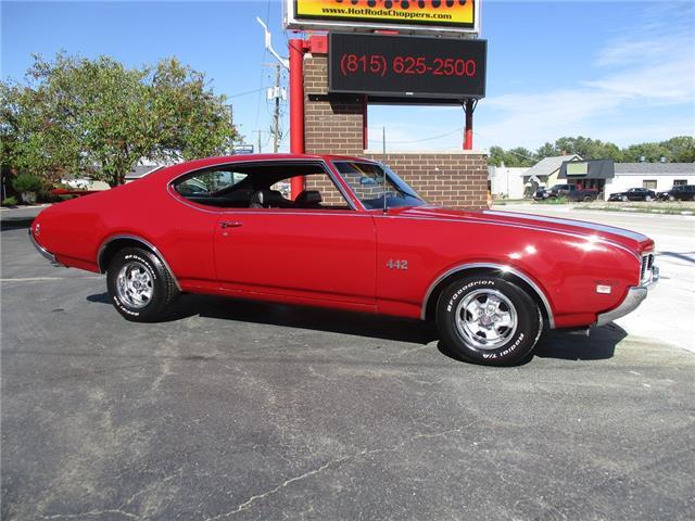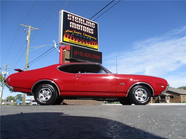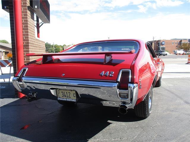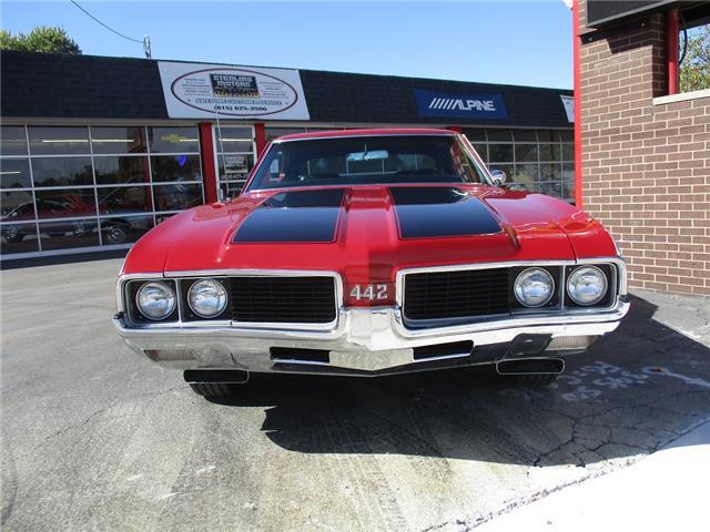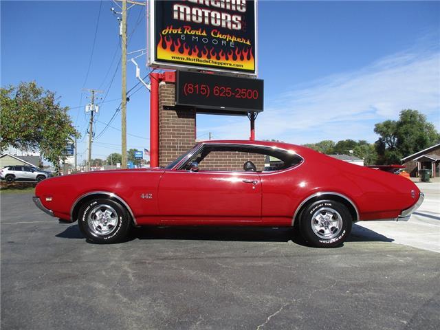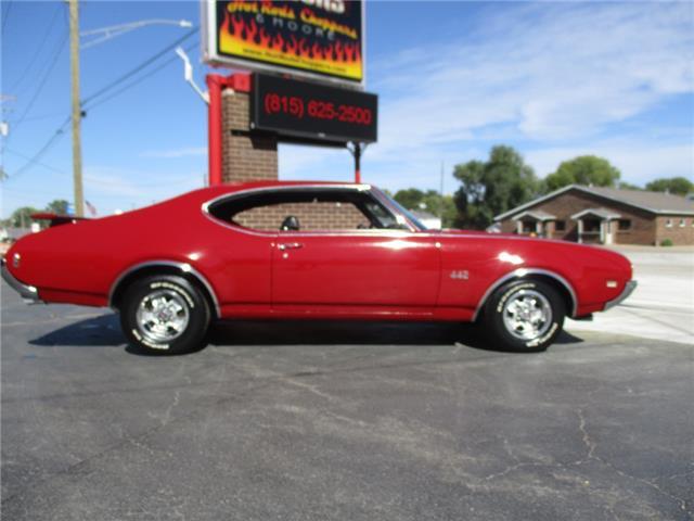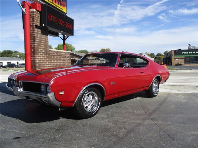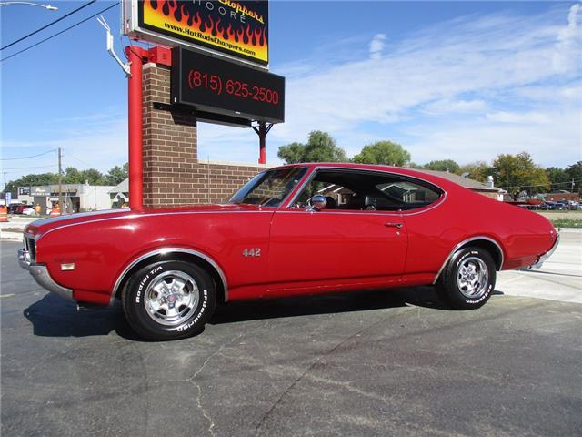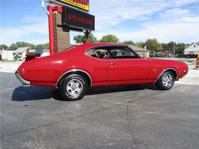 The 4-4-2 (also known as the 442) is a muscle car produced by Oldsmobile from 1964 – 1987. Originally it was introduced as an optional package for the F-85 and Cutlass models. The 2nd generation was introduced in 1968 which is when the 442 became its own model. In 1969 the changes were subtle and included a division tooth between the grilles, the wing windows were deleted, trunk lid inlets were added for the tail lights and headrests were added to the front seats. This particular example is believed to be a 4 owner car with 38,268 original miles. It retains its original 396026 400ci V8 engine that was professionally rebuilt by Jimmie’s Motor Rebuilding Co. out of Peru, IL in August of 2021. At the same time the original T400 transmission was also rebuilt and both now have less than 1,000 miles on them. It is fed via an Edelbrock 4 barrel carb and Performer intake. It is sparked by an electronic ignition and exhaust is handled by a set of performance headers and a new performance dual exhaust system which sounds just plain nasty when you get into it. At the same time the engine was rebuilt the suspension received new springs and pads and the brakes received a new master cylinder, wheel cylinders and lines. It also received new steel braided fuel lines, vacuum lines, transmission lines, coolant lines, a new water pump and a new radiator. It was repainted in its original color of Red about 20 years ago which has held up very well but is starting to show its age. All the weather stripping was replaced when the engine was done as well and everything lines up and closes as it should. The interior is all original with the exception of the B&M slap shifter and the aftermarket gauges. Everything works as it should except for the voltage meter and the gas gauge. When it was repainted it was also upgraded with the W-32 dual snorkel air intake which is 100% correct. Pictures of the engine casting and serial #’s are posted below. The car is an absolute pleasure to drive and in need of nothing but having a couple of gauges repaired. Based on the current NADA values we would conservatively appraise this beauty at $49,600. We have priced it much lower than that to get her sold quick so if you like what you see don’t wait until it is too late to contact us!
