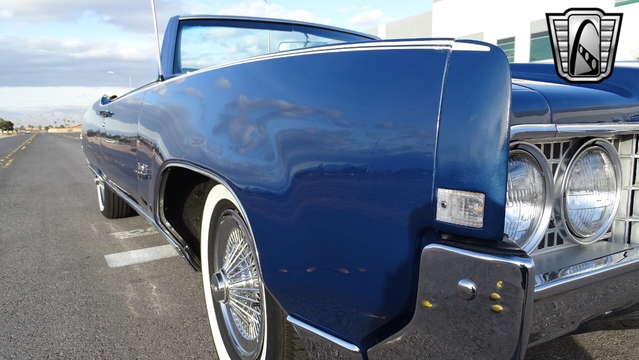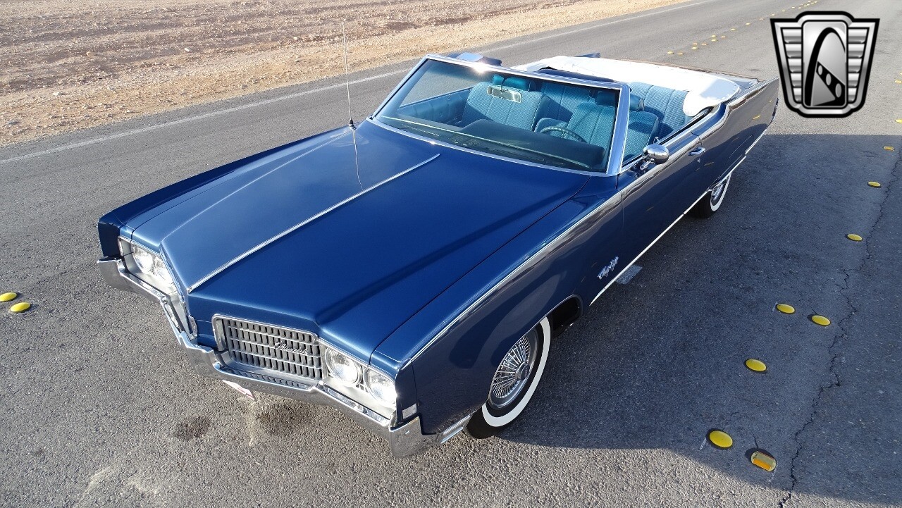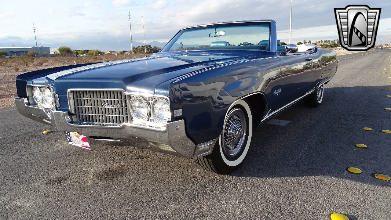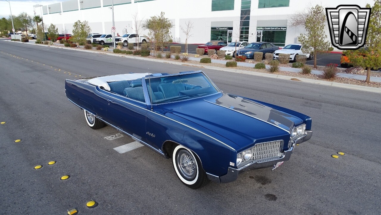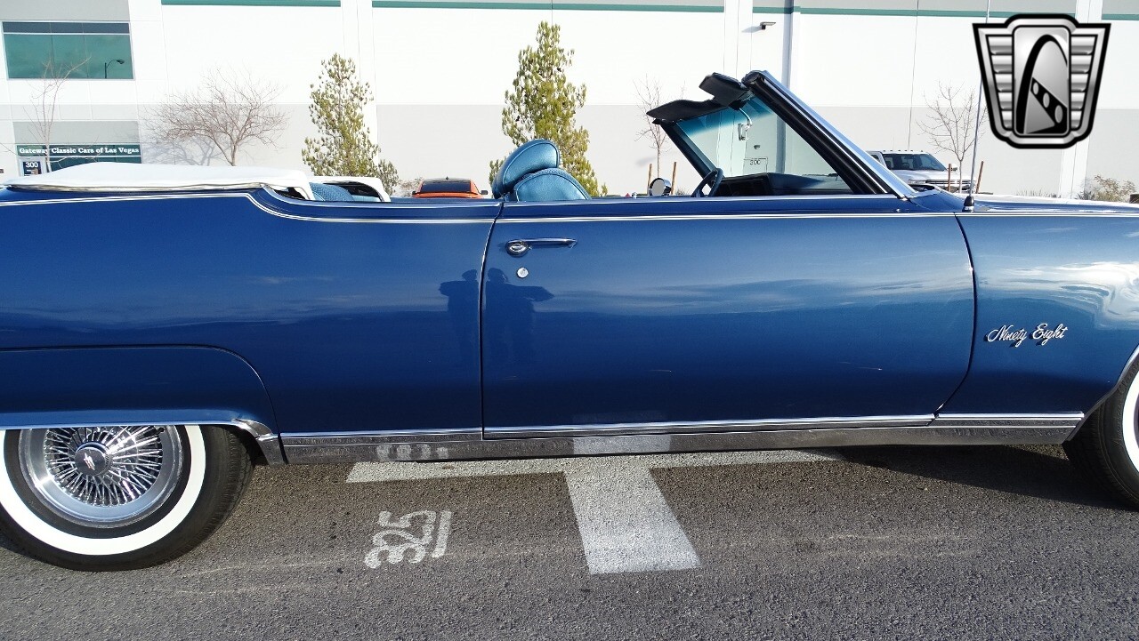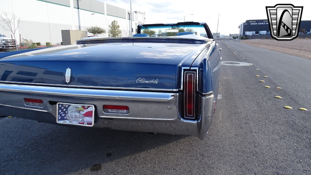 Gateway Classic Cars of Las Vegas would like to present this 1969 Oldsmobile 98. The 1969 Ninety-Eight (eight generation) remained the top-of-the-line Oldsmobile. It was the largest Oldsmobile product offered with a wheelbase of 127.0 inches. The owner states this vehicle has been in their family since 1971 and was treated to a restoration and paint approximately 5 years ago. Powered by a 455ci Rocket V8 with a new carb and manual and electric fuel pump and cooled by a Hayden 4 row radiator, this engine is mated to a 3-speed turbo 400 automatic transmission that owner states has 200 miles. Painted Trophy Blue and complimented with a light blue cloth interior. According to the owner it has only a couple hundred miles since the rebuild and has spent it's life in Idaho and Nevada. Rebuilt options include: new power convertible top with glass back window. It also includes power window/steering, tilt/telescoping steering column, power front disc brakes (acquired from a 1970 Olds 98), AM/FM 8-track stereo and power 6-way front bench seat. Aftermarket upgrades include dual exhaust, LED lights (inside and out where possible) and HEI distributor. Owner states the front end was also rebuilt, replacing wheel bearings, tie rod ends, ball joints, etc. it required three different parts cars in order to restore this vehicle to the beauty it is today. .