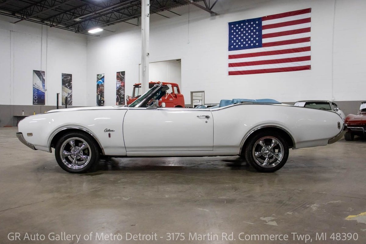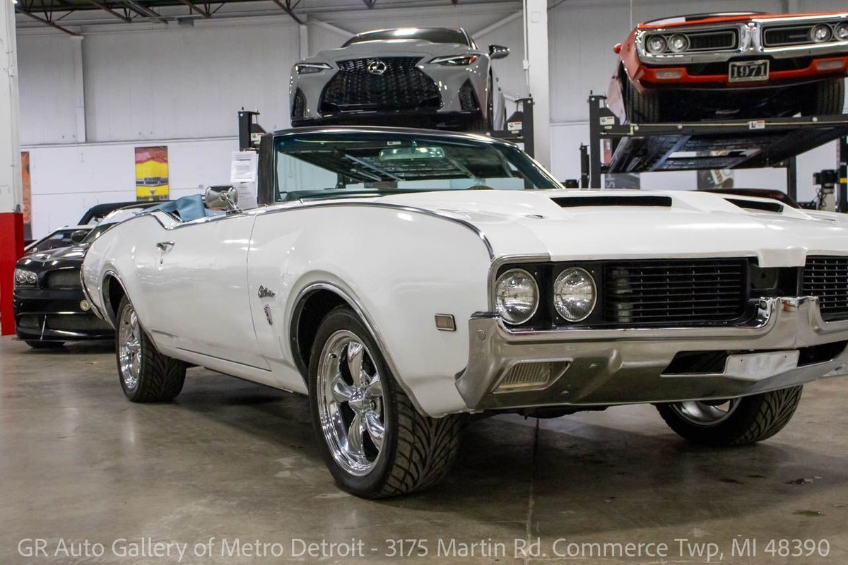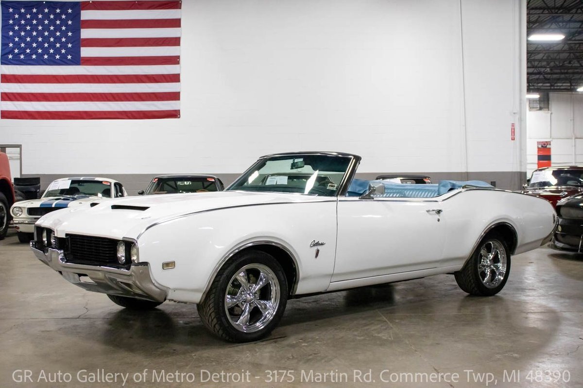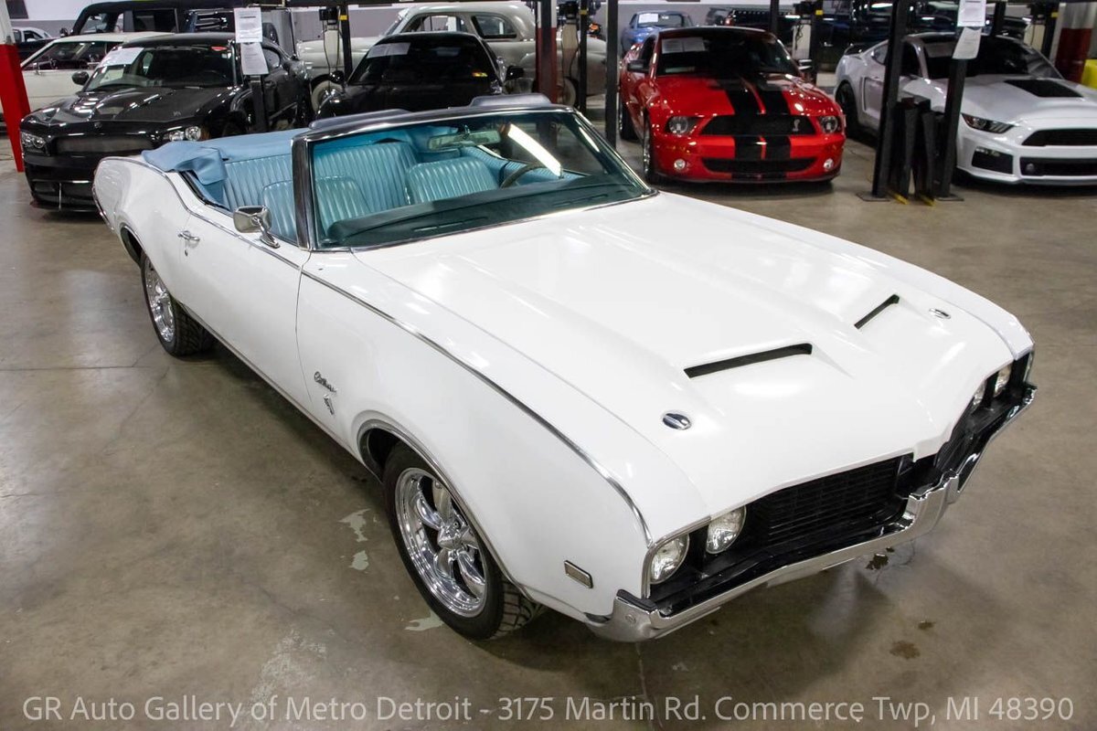 GR Auto Gallery is pleased to present this 1969 Oldsmobile Cutlass S convertible for your consideration. This Cutlass comes in a nice White exterior over a clean blue leather interior. Powering this Cutlass is a 350 cubic inch V8. Paired with an automatic transmission. This vehicle has some great features such as a power convertible top, power steering, power brakes, functional heat, trw pistons, a new water pump, a new steering gearbox, a triple chrome plated front end, milling timing set and oil pump, disc brakes with a new master cylinder, and much more. This Cutlass has a ton of new upgrades internal as well as external and is ready for the road. Drive this one out of our showroom or have us assist with shipping it to you anywhere in the United States! Don't hesitate to call us with any questions or for more information. Drive this one out of our showroom or have us assist with shipping it to you anywhere in the United States! Don't hesitate to call us with any questions or for more information.