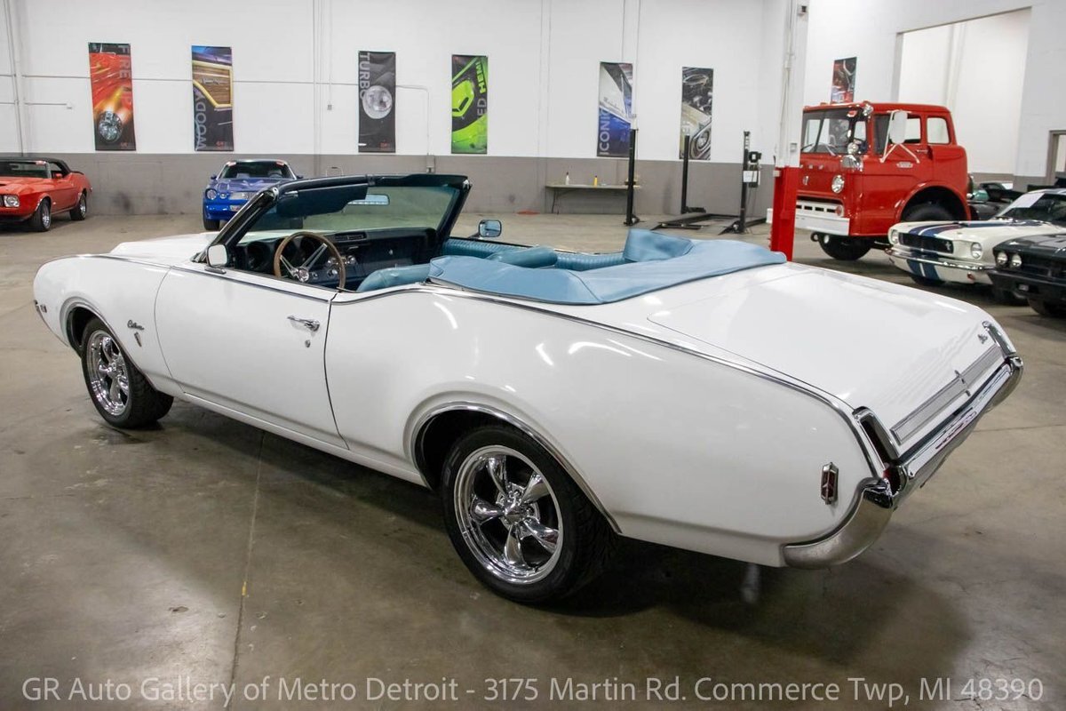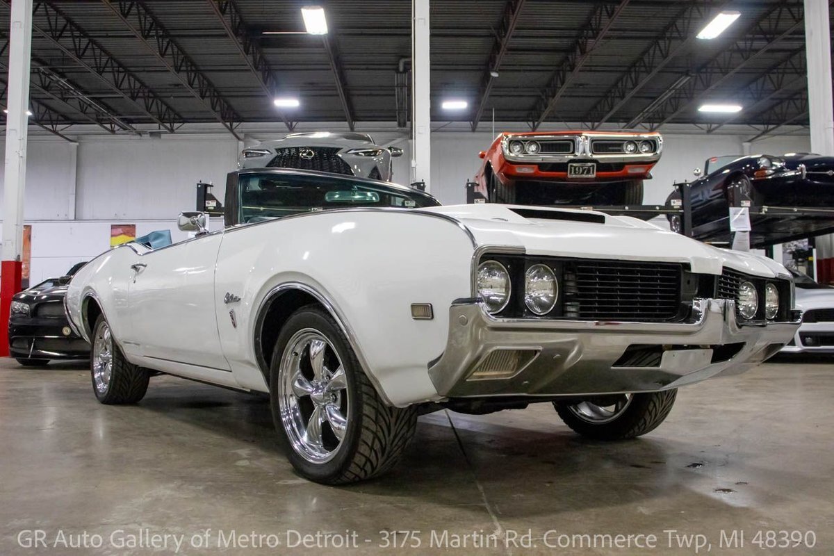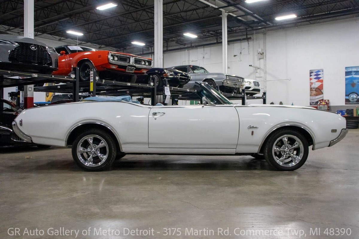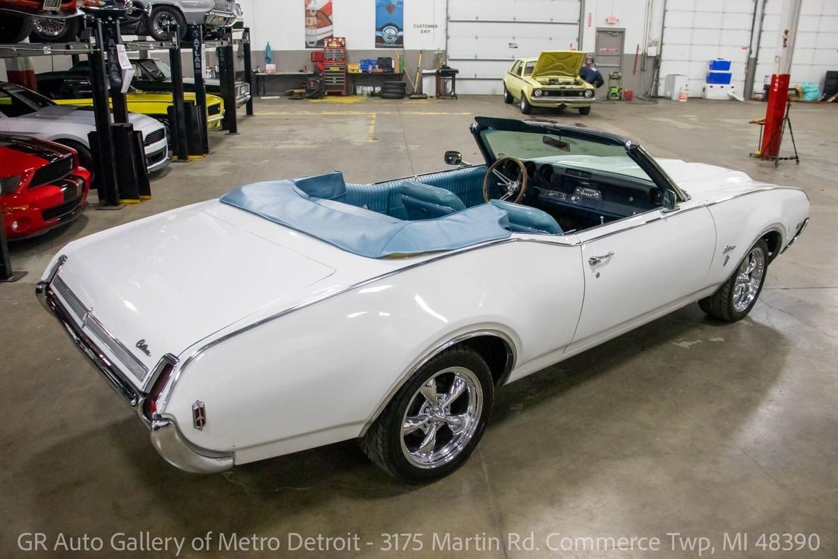 GR Auto Gallery is pleased to present this 1969 Oldsmobile Cutlass S convertible for your consideration. This Cutlass comes in a nice White exterior over a clean blue leather interior. Powering this Cutlass is a 350 cubic inch V8. Paired with an automatic transmission. This vehicle has some great features such as a power convertible top, power steering, power brakes, functional heat, trw pistons, a new water pump, a new steering gearbox, a triple chrome plated front end, milling timing set and oil pump, disc brakes with a new master cylinder, and much more. This Cutlass has a ton of new upgrades internal as well as external and is ready for the road. Drive this one out of our showroom or have us assist with shipping it to you anywhere in the United States! Don't hesitate to call us with any questions or for more information. Drive this one out of our showroom or have us assist with shipping it to you anywhere in the United States! Don't hesitate to call us with any questions or for more information.