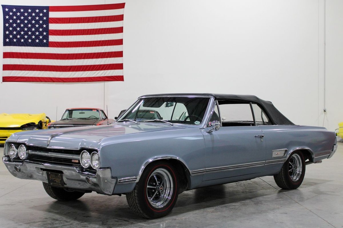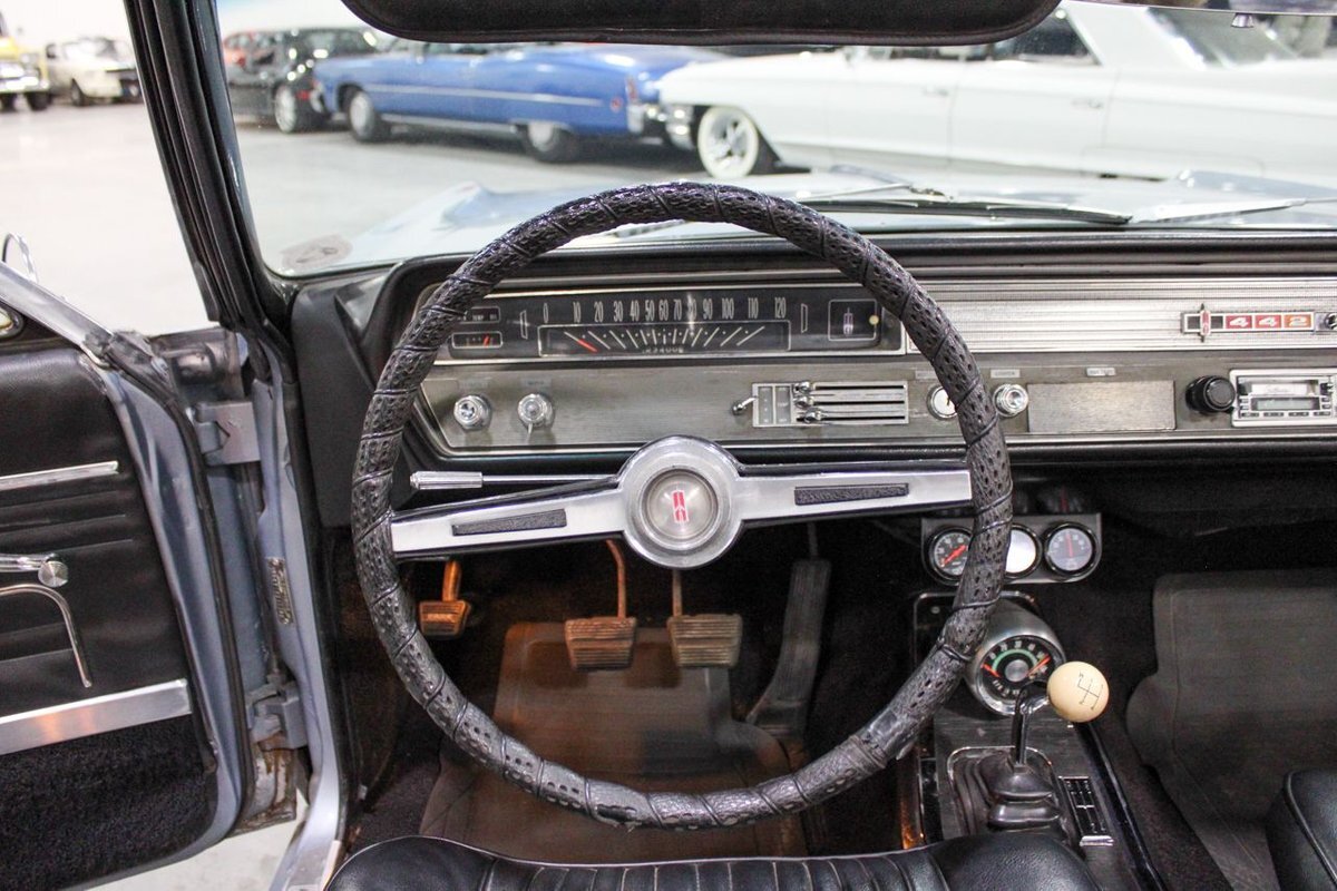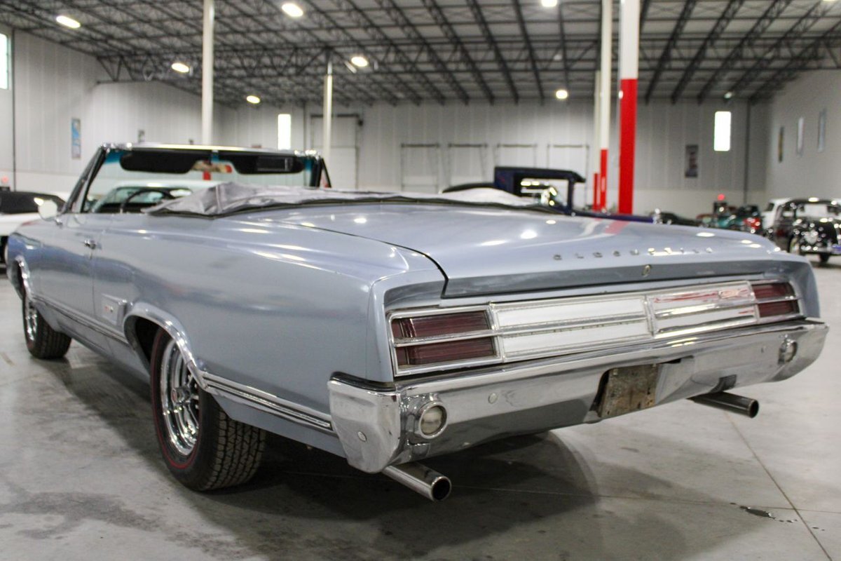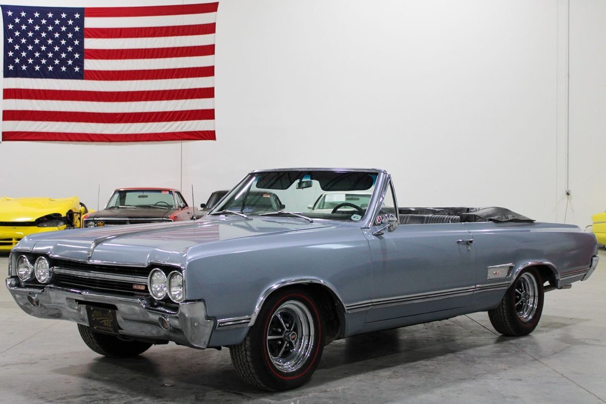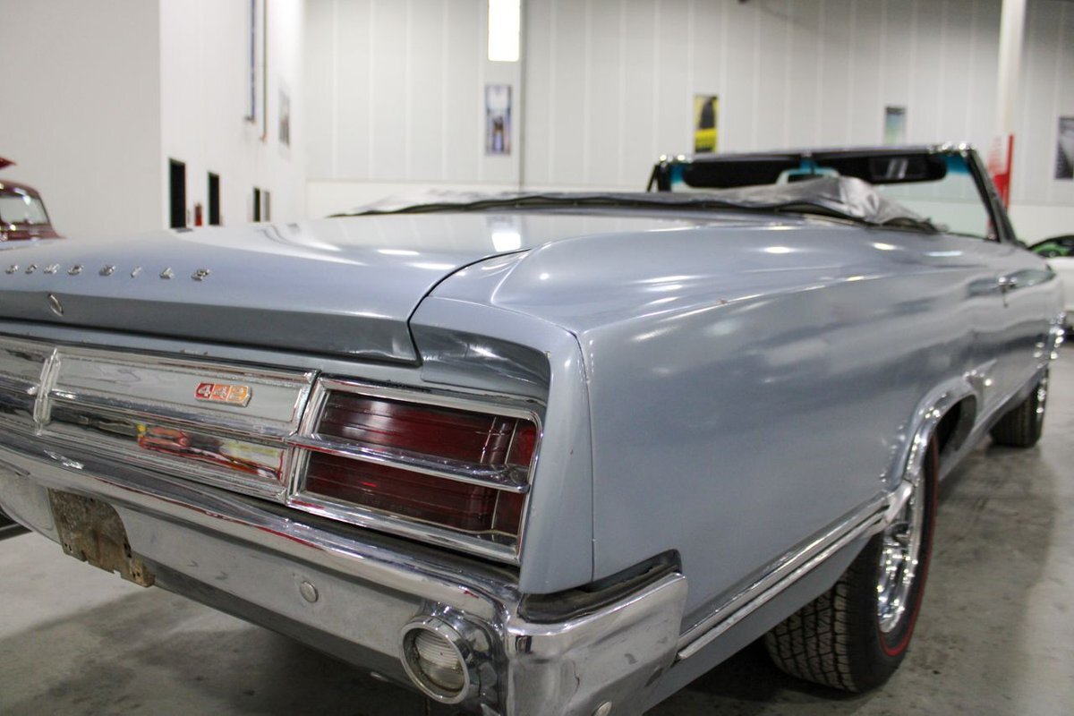 Welcome to our showroom! Feast your eyes on the stunning 1965 Oldsmobile Cutlass 442 Convertible in Sheffield Mist Poly. This beauty isn't just a car – it's a blast from the past that'll make you feel like a king on the road. With its sleek design and eye-catching color, it's bound to make heads turn wherever you go.