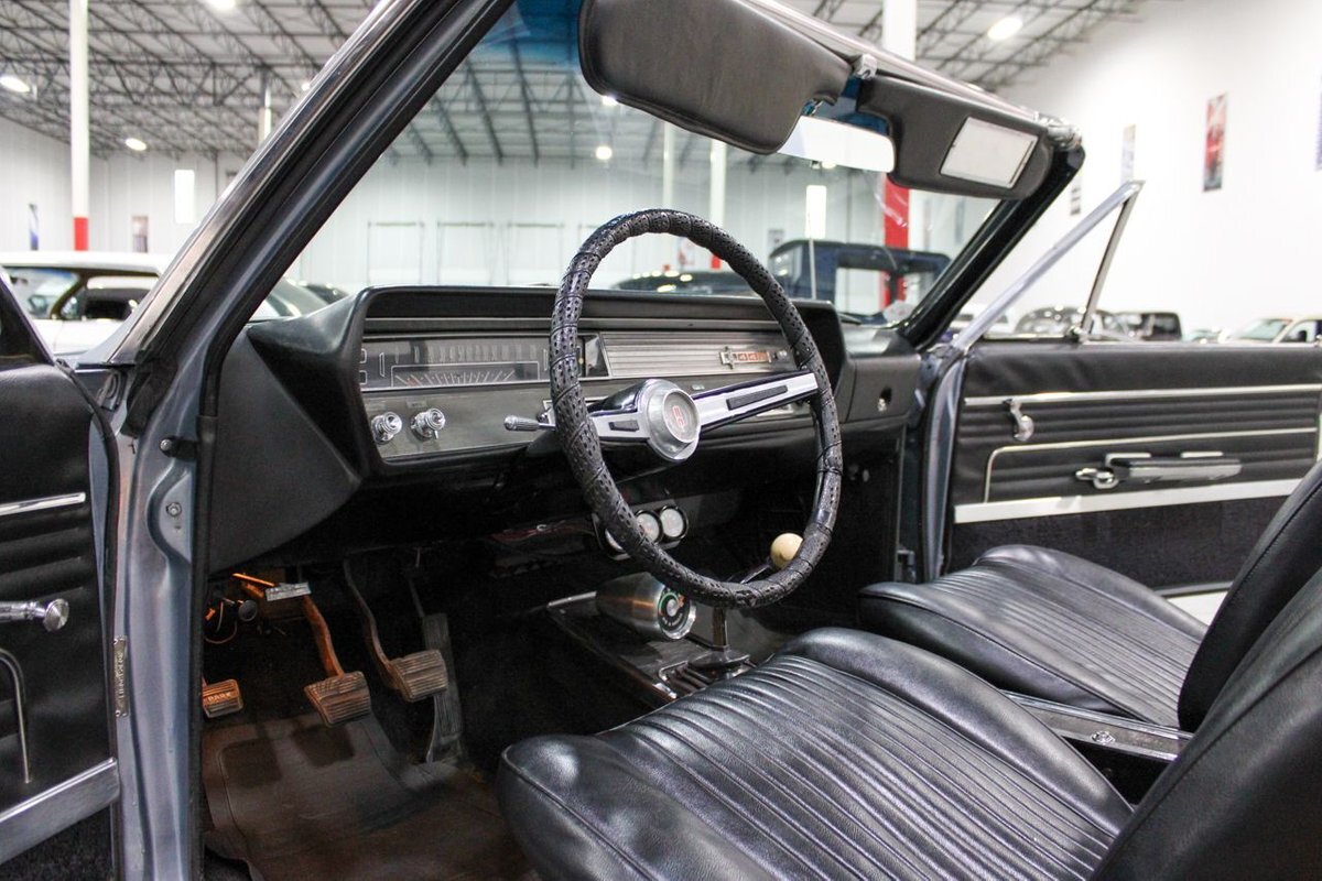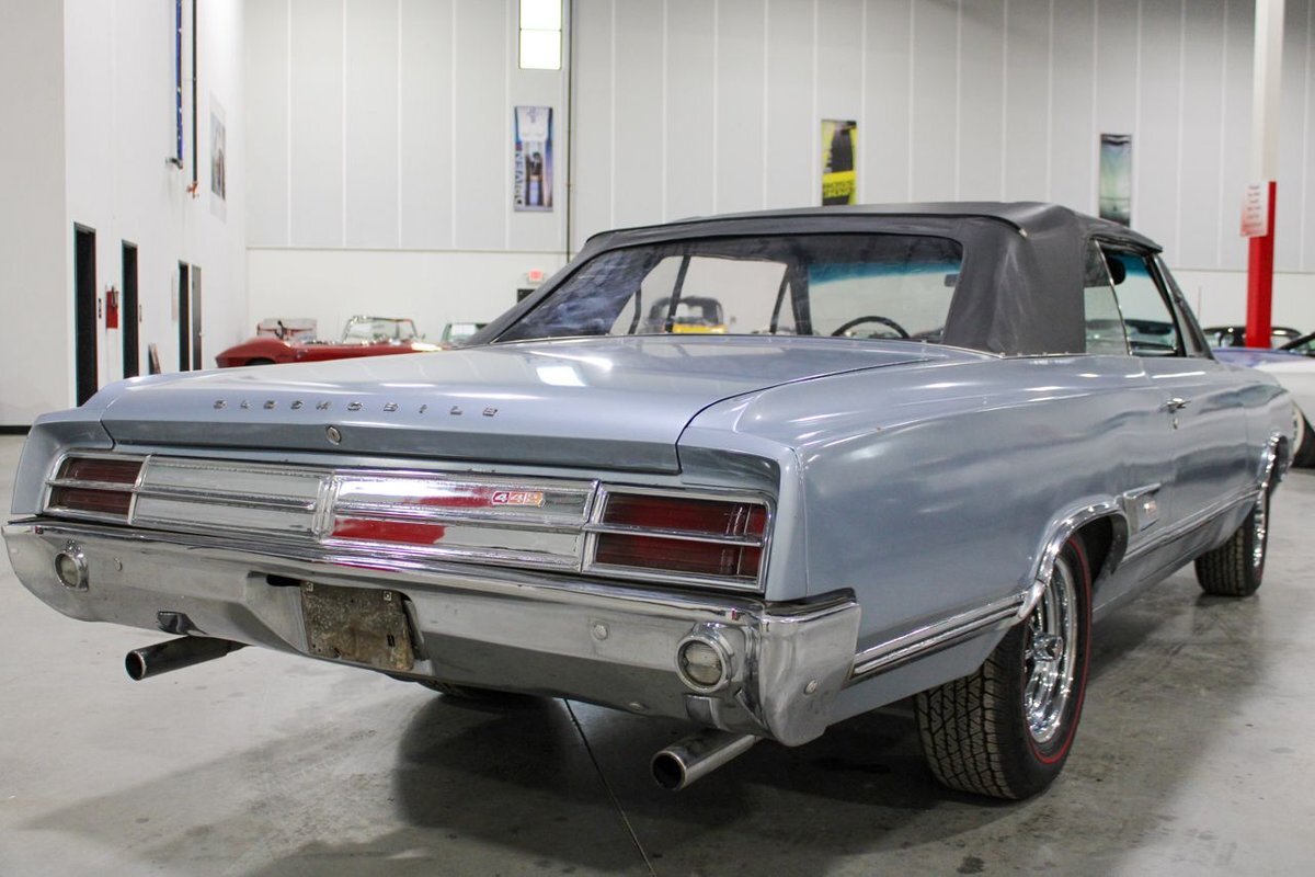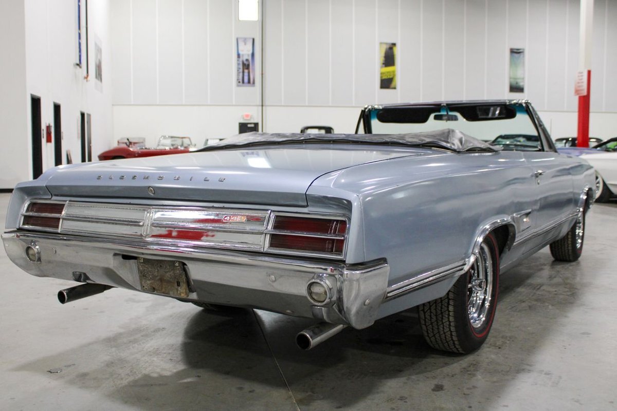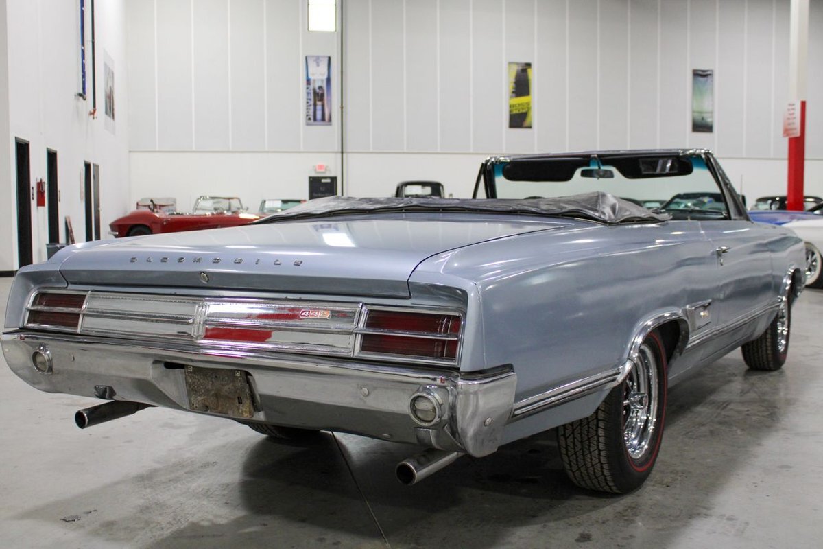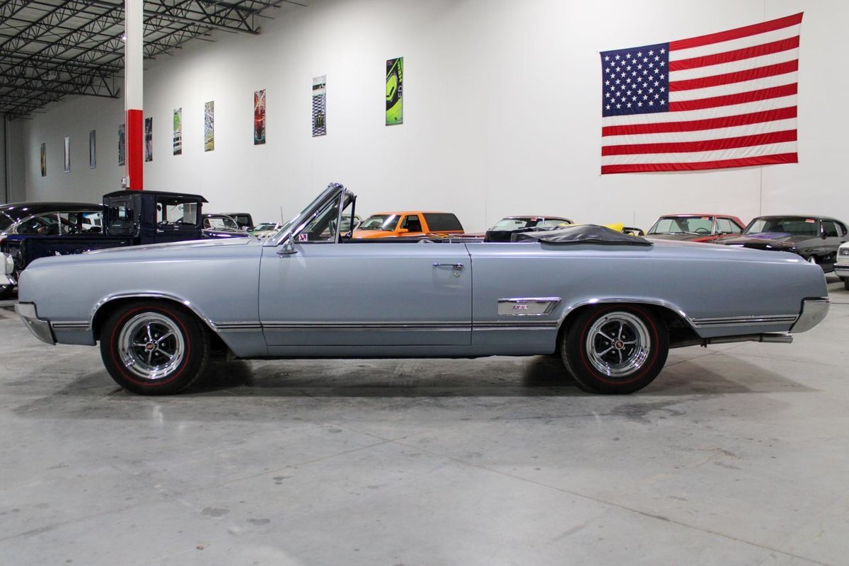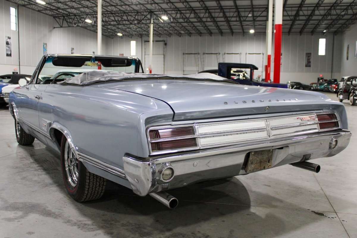 Welcome to our showroom! Feast your eyes on the stunning 1965 Oldsmobile Cutlass 442 Convertible in Sheffield Mist Poly. This beauty isn't just a car – it's a blast from the past that'll make you feel like a king on the road. With its sleek design and eye-catching color, it's bound to make heads turn wherever you go.