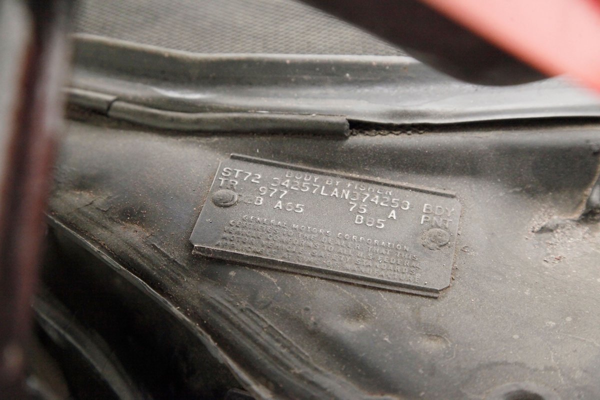 A pop of the hood which has new insulation on the underside and you will be in numbers matching 350ci V8 Rocket engine gold painted heaven! There is a 4-barrel Rochester carb atop and a numbers matching TH350 automatic transmission on back. And lest we forget it has a 10-bolt rear with a 2.73 gear ratio. "The power of intelligent engineering."