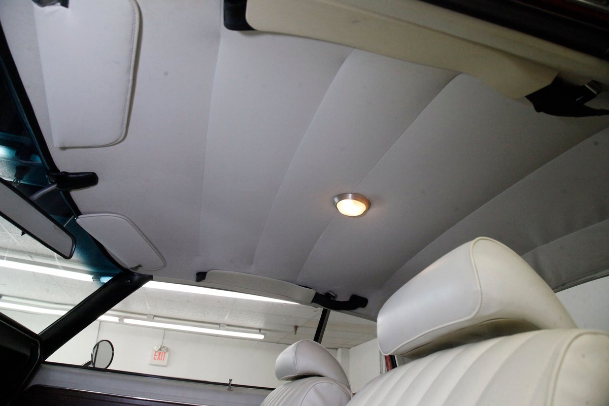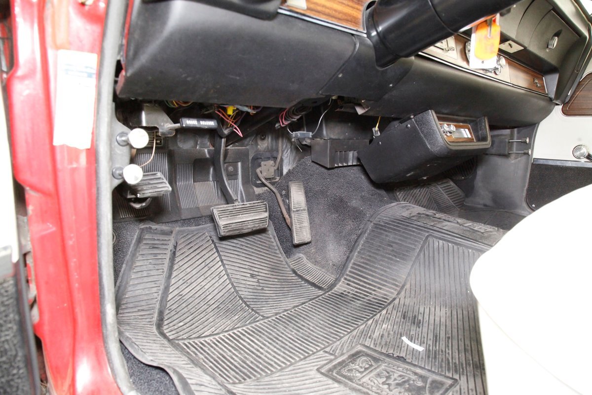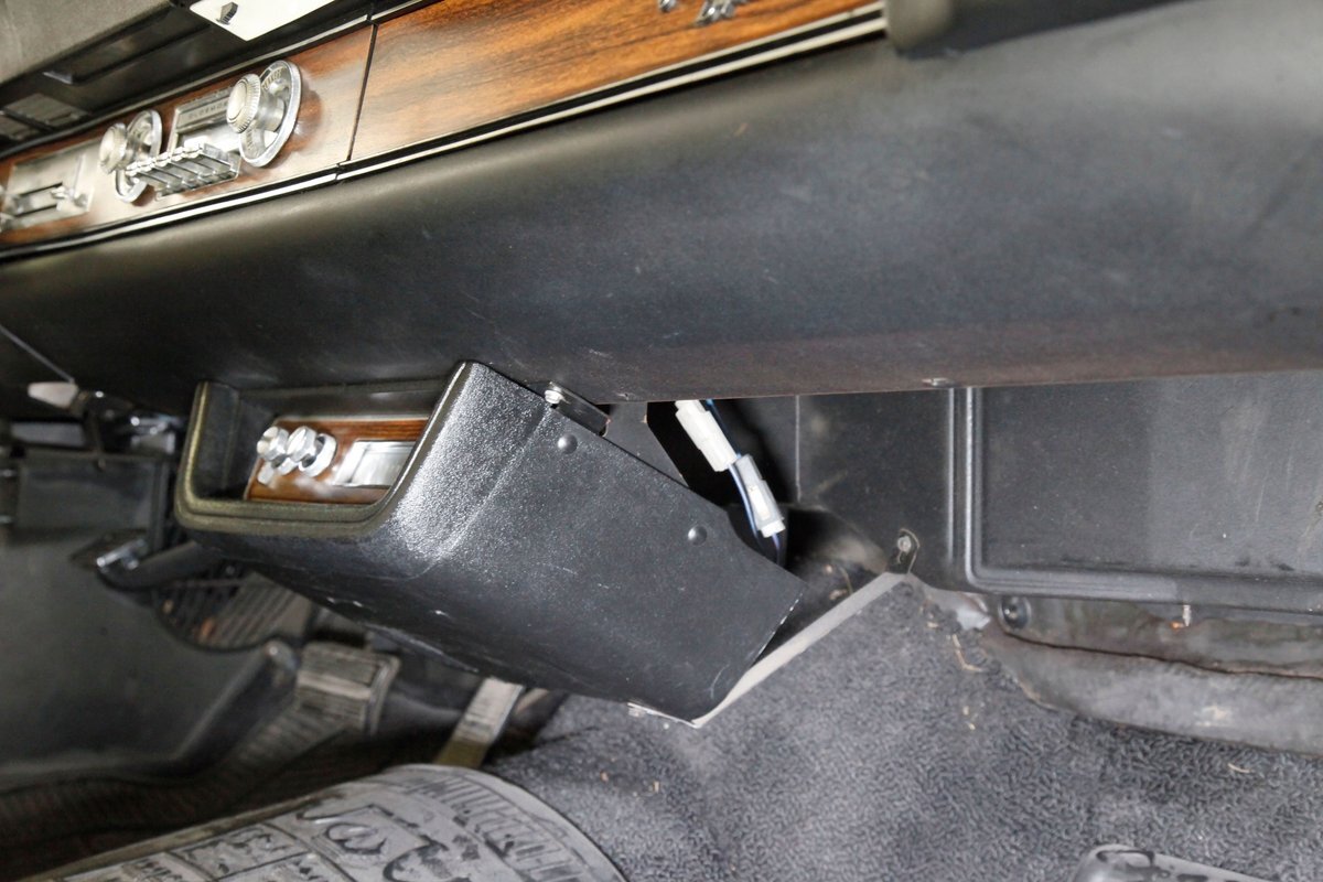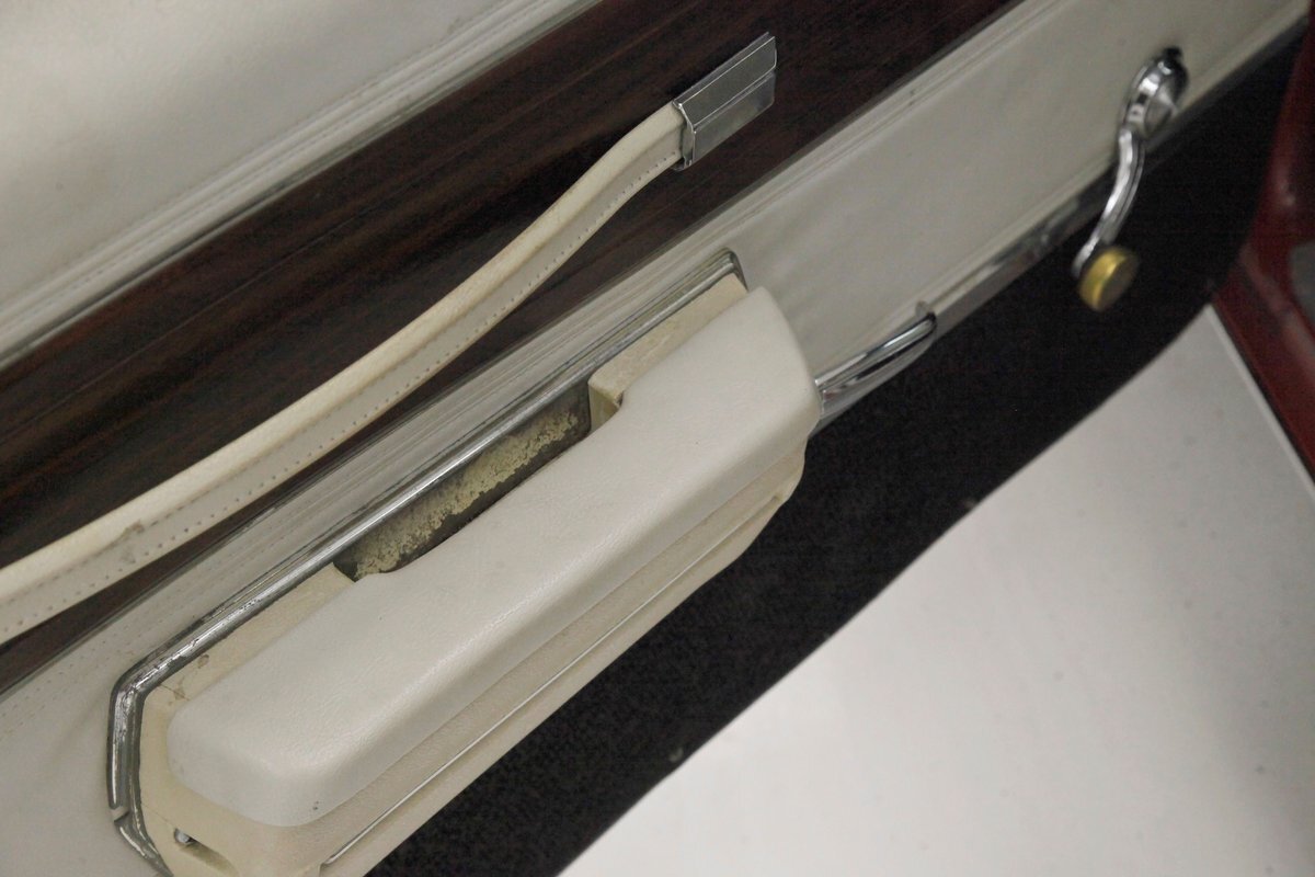 Opening the large well balanced doors we shake hands with a wonderful door panel on either side these have white vinyl surrounding an island of wood applique which houses the leather door pull and just below are white armrests which have the door actuator. Offsetting the white is a strip of black carpeting just below. Slipping inside we get behind the original wheel which fronts a very clean and original dash. This presents to us in black and is loaded with plenty of wood applique for the gauge cluster. Fronting this dash is a wonderfully clean split back bench front seat which is tuck and roll white vinyl and has a central fold up and down armrest. The back has an equally beautiful and clean rear bench, and these all float in a sea of black flawless carpeting. A shout out to the trunk with its wonderful plaid mat, vinyl spare tire cover and speckle finished sides. Sit back and turn on the factory AM radio with an 8-track player and breathe in the 1972 design you are now surrounded by! "Nothing to watch but the road.."