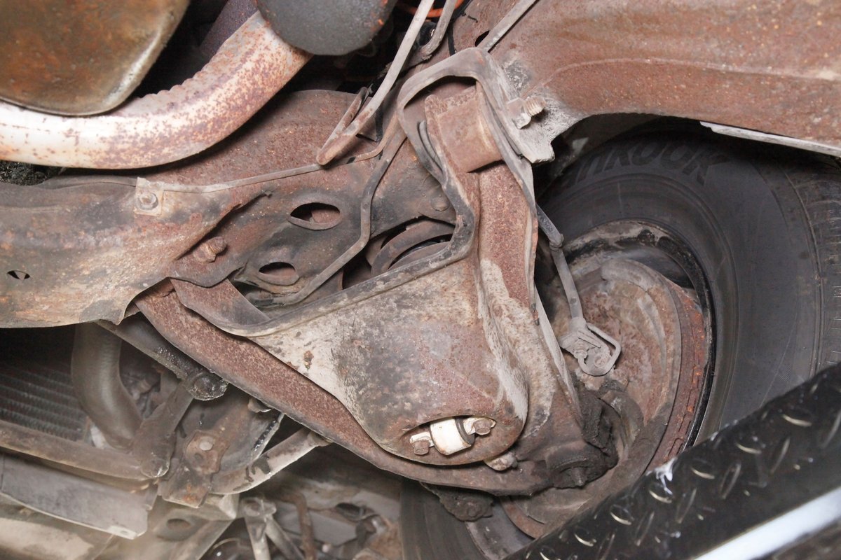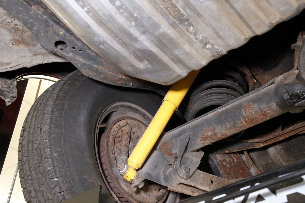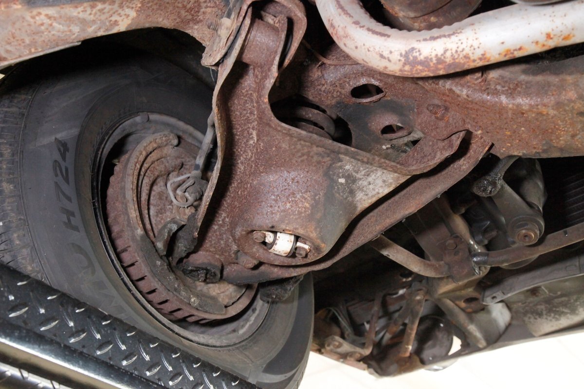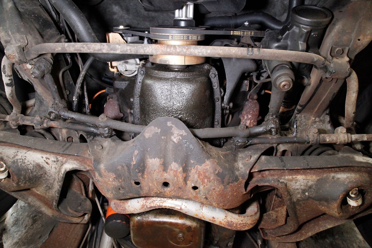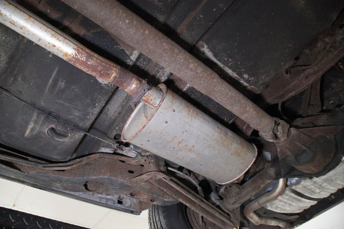 Nice and straight with some undercoating and bits of surface rust on the usual suspects, but the frame and flooring is strong and sturdy. Power drum brakes are seen all around and providing the quality Oldsmobile ride is an independent coil sprung front suspension and a 4 link and coil spring arrangement in the rear. Handling the exhale is a single exhaust system that remains solid as its snakes its way rearward from the Rocket mill.
