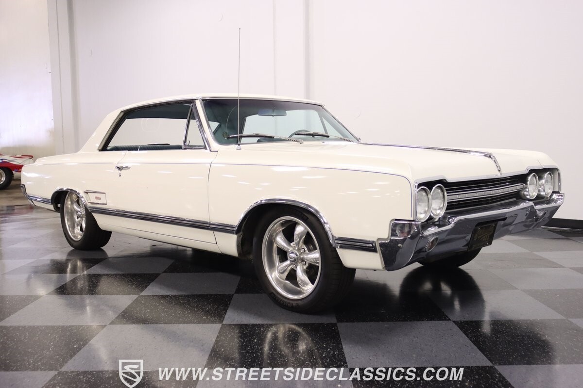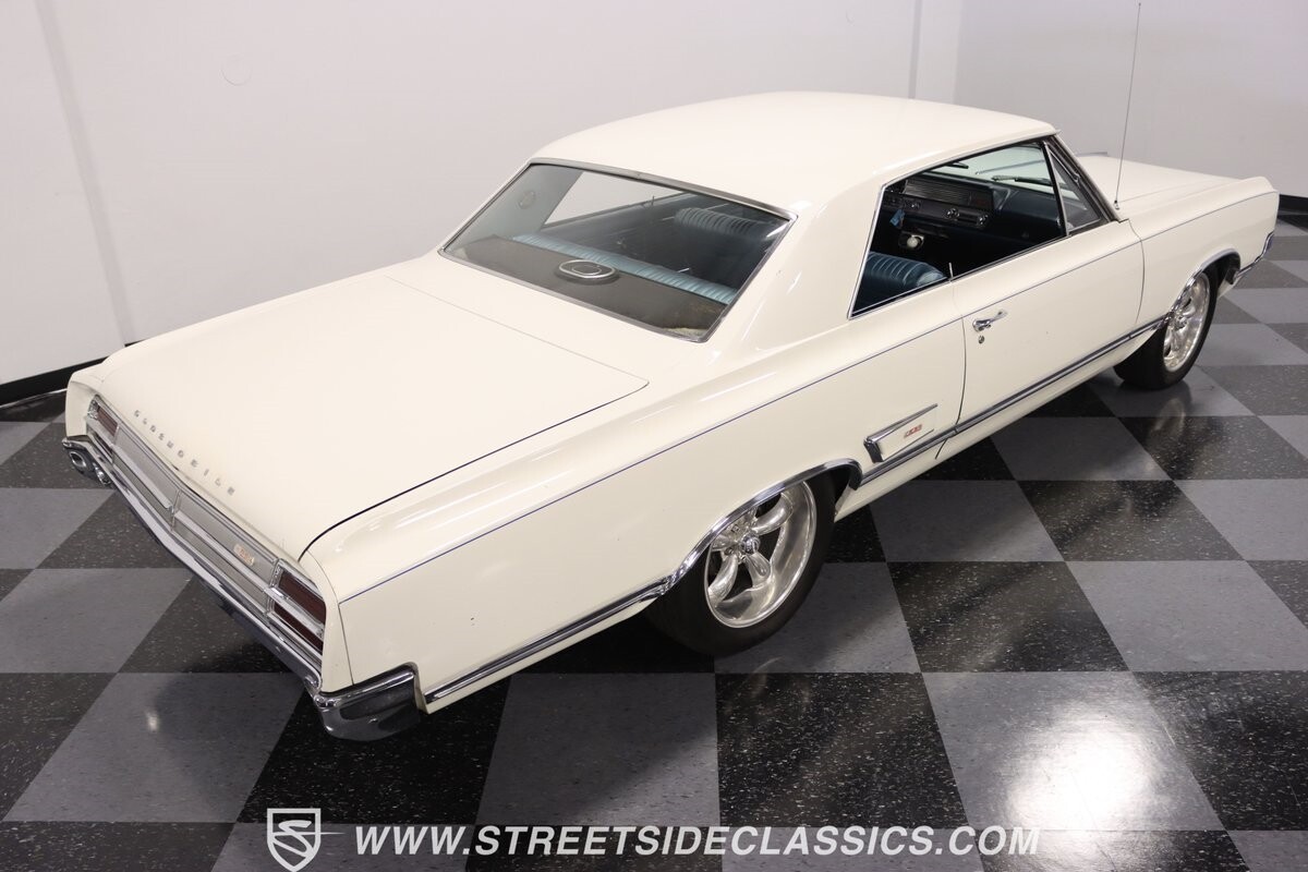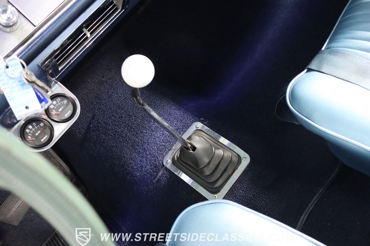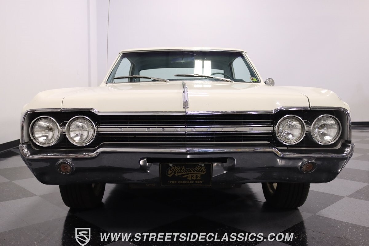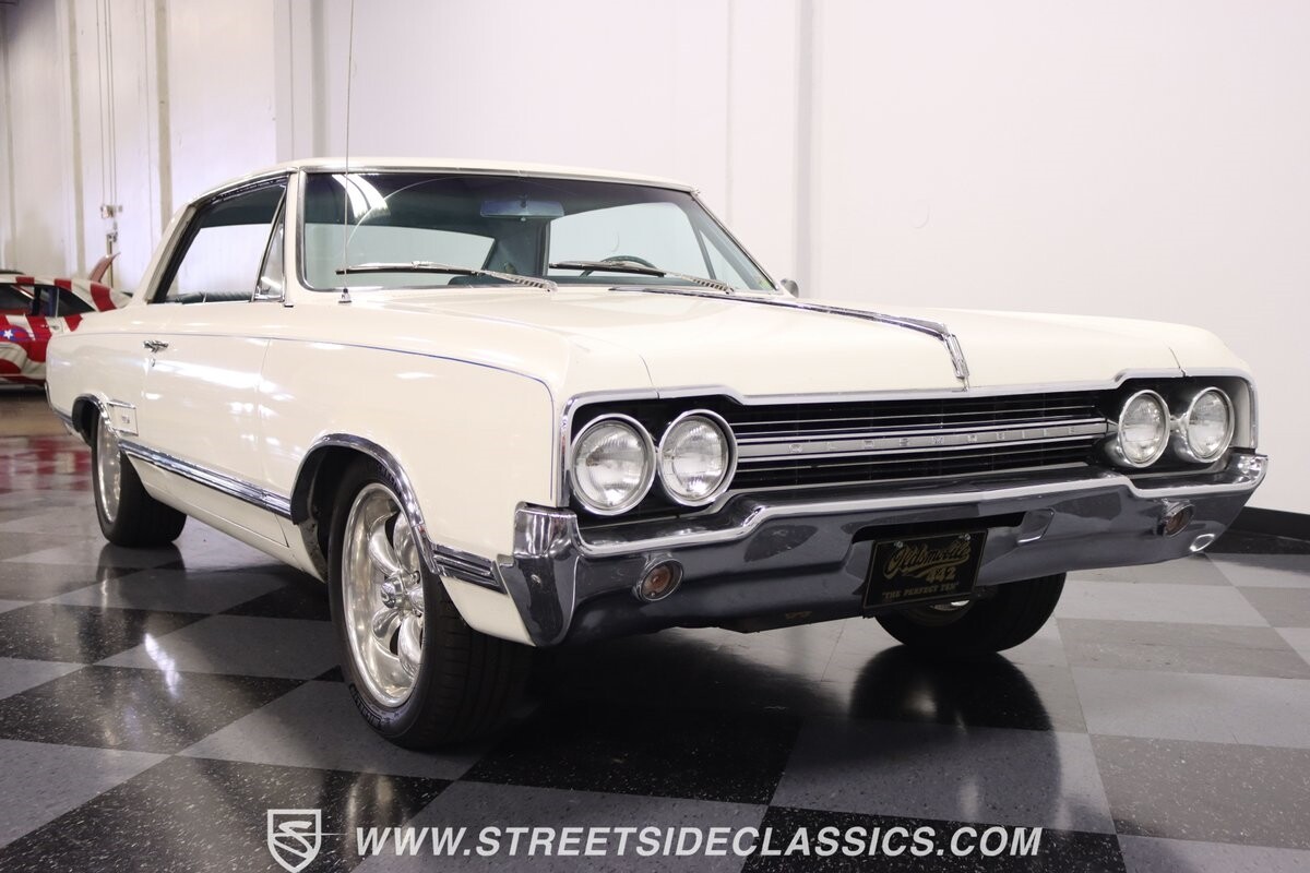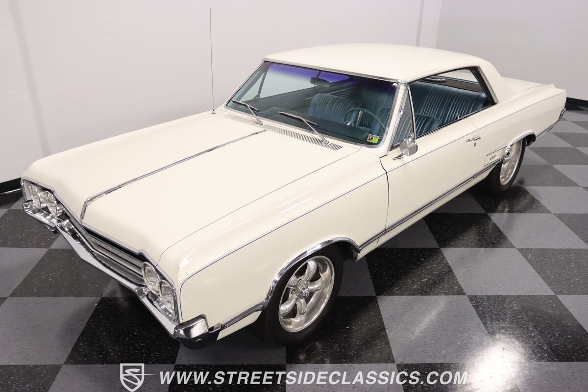 Before Linda Vaughn became synonymous with her iconic appearances on the rear of the '72 Hurst Olds, there was the predecessor that set the stage – the 1965 Oldsmobile Cutlass 442. This Oldsmobile is a superb example of the 442's prowess, boasting the original Provincial White paint and blue vinyl interior maintaining its authenticity and historical integrity. The interior features original blue vinyl bucket seats and a Hurst floor shifter. The believed original interior adds to its authenticity, showcasing the car's well-maintained condition and believed actual mileage of 58,392 miles.