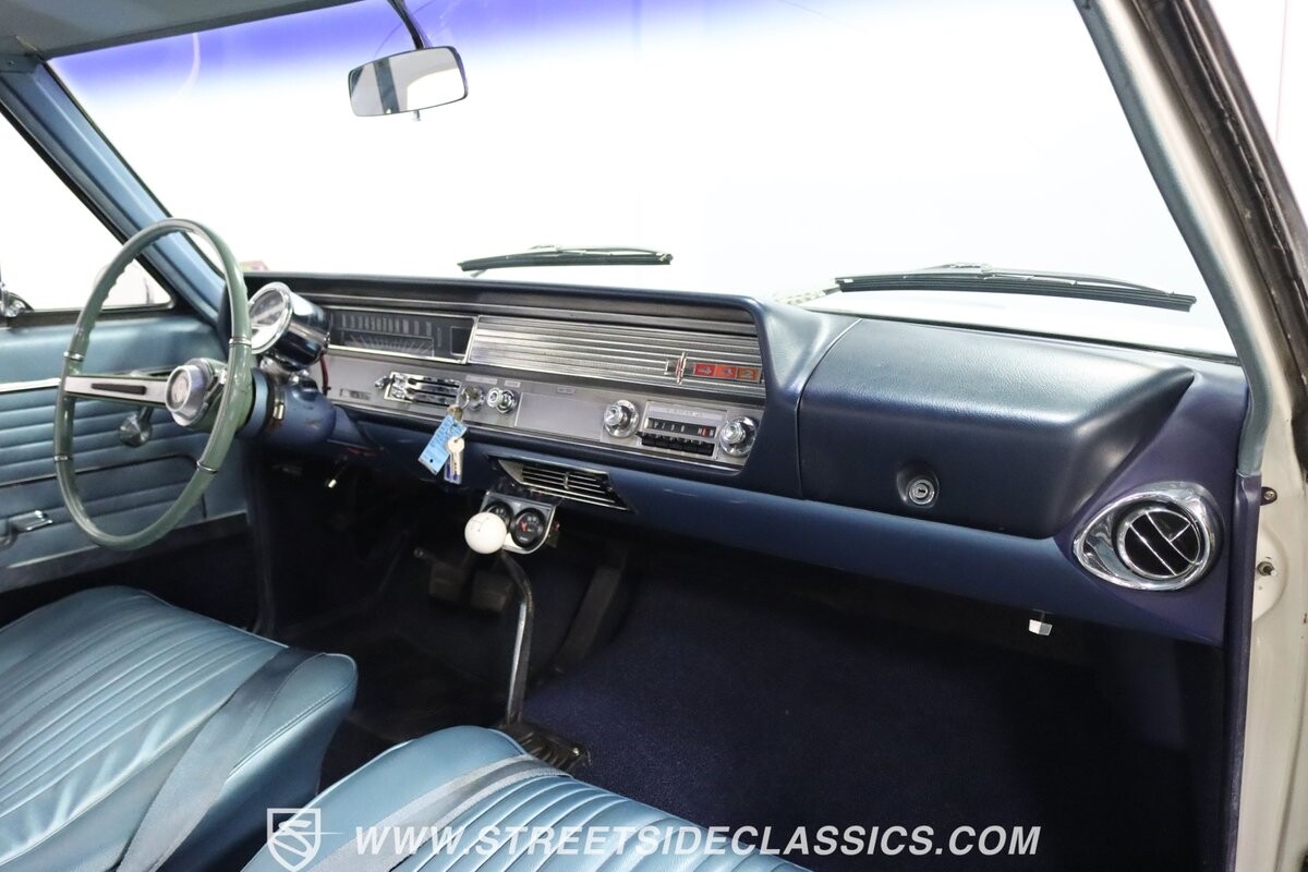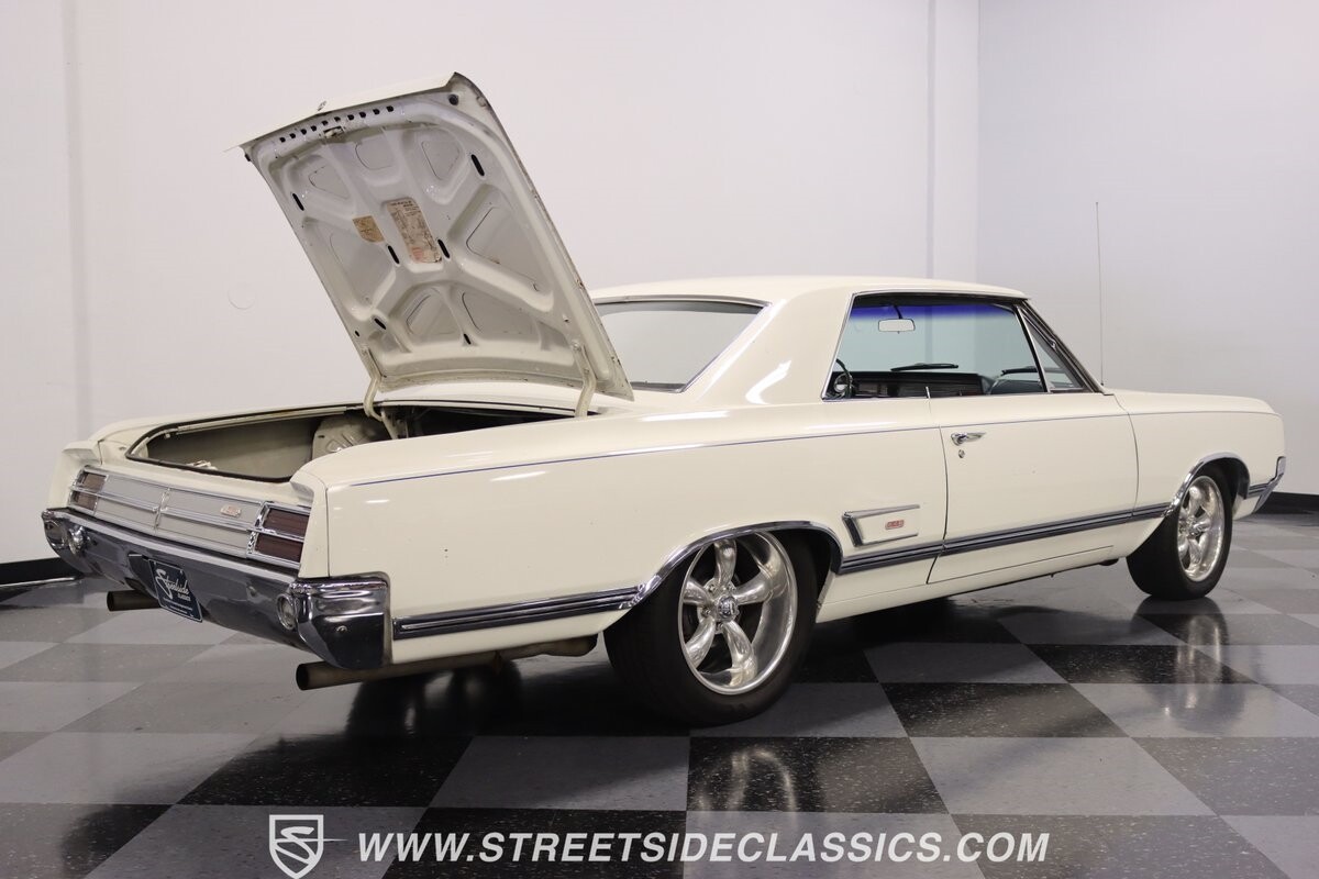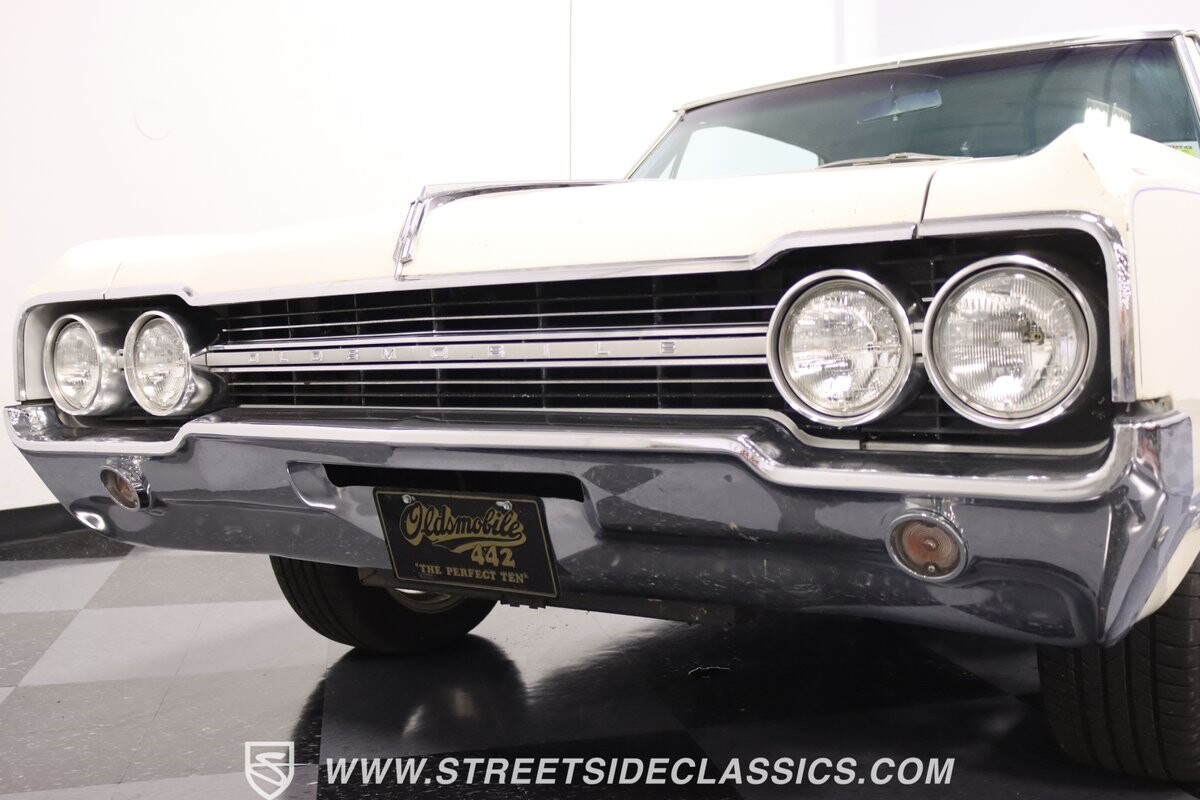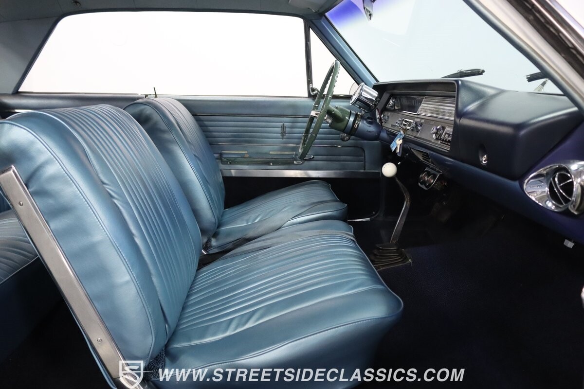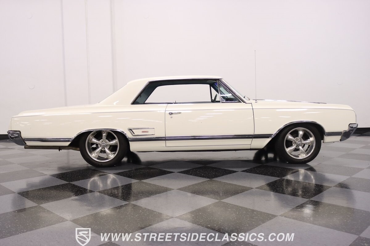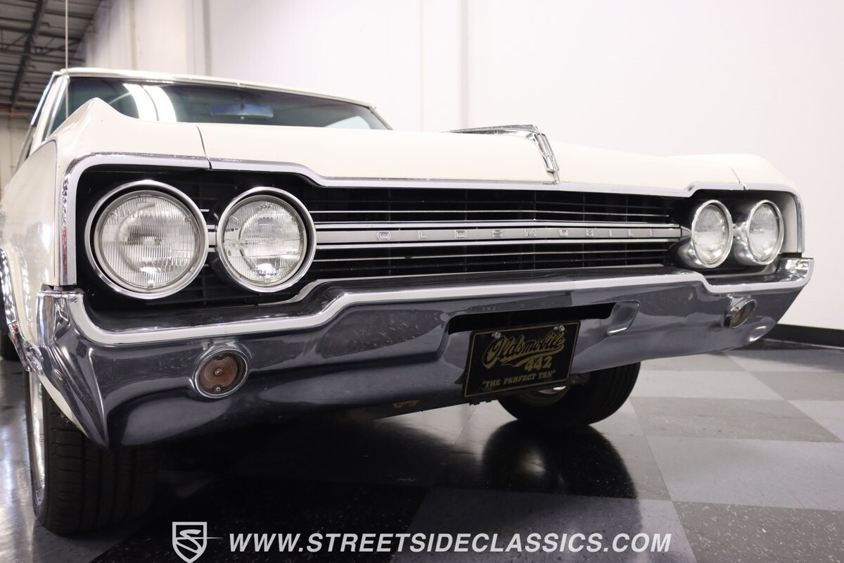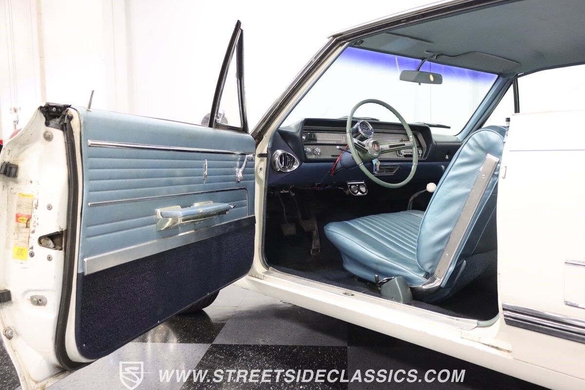 Before Linda Vaughn became synonymous with her iconic appearances on the rear of the '72 Hurst Olds, there was the predecessor that set the stage – the 1965 Oldsmobile Cutlass 442. This Oldsmobile is a superb example of the 442's prowess, boasting the original Provincial White paint and blue vinyl interior maintaining its authenticity and historical integrity. The interior features original blue vinyl bucket seats and a Hurst floor shifter. The believed original interior adds to its authenticity, showcasing the car's well-maintained condition and believed actual mileage of 58,392 miles.