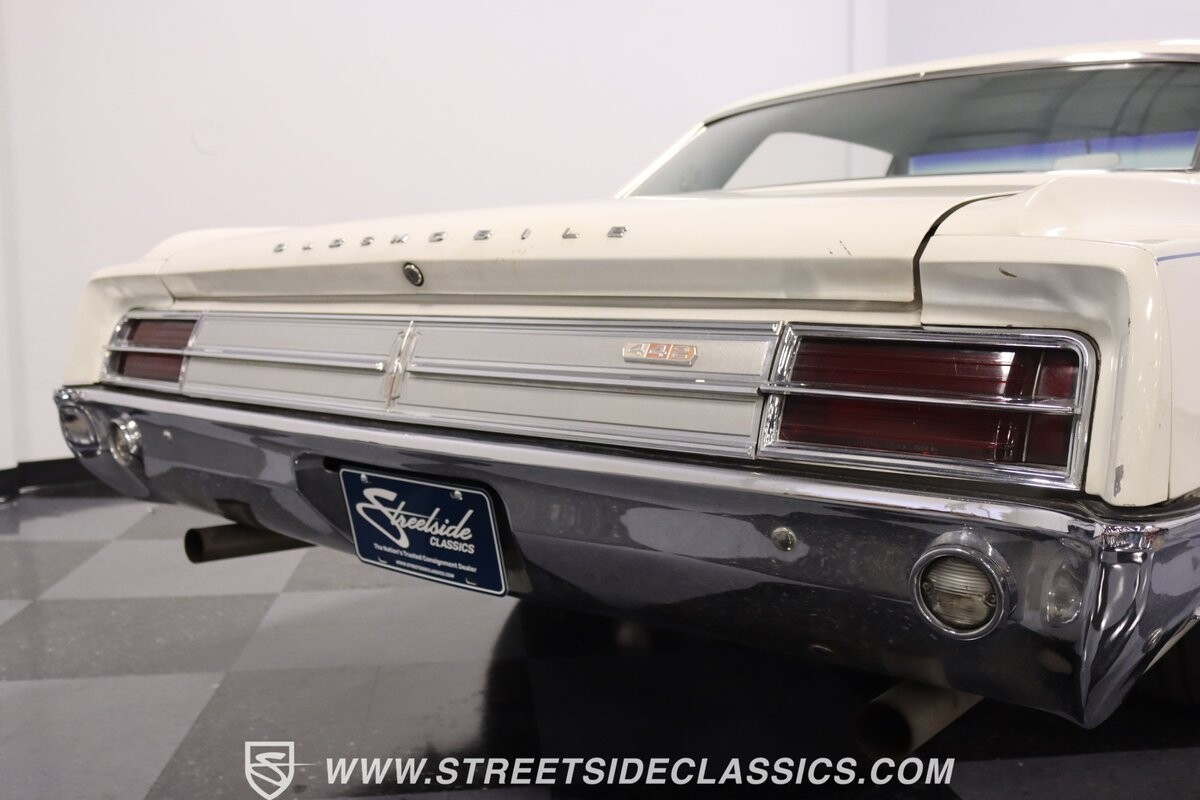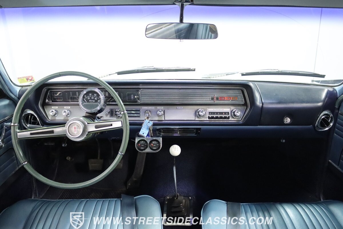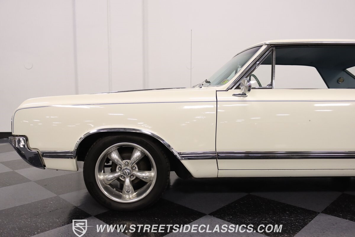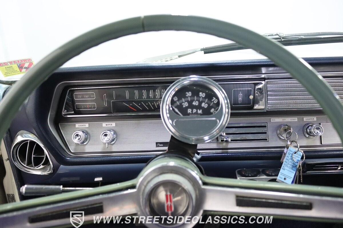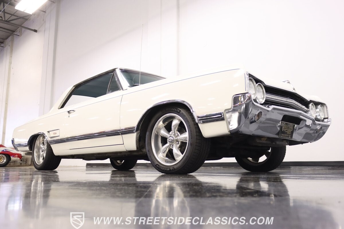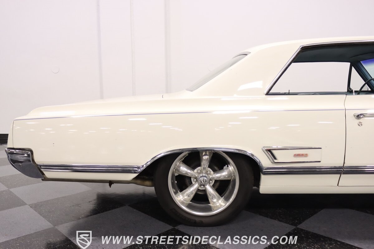 Before Linda Vaughn became synonymous with her iconic appearances on the rear of the '72 Hurst Olds, there was the predecessor that set the stage – the 1965 Oldsmobile Cutlass 442. This Oldsmobile is a superb example of the 442's prowess, boasting the original Provincial White paint and blue vinyl interior maintaining its authenticity and historical integrity. The interior features original blue vinyl bucket seats and a Hurst floor shifter. The believed original interior adds to its authenticity, showcasing the car's well-maintained condition and believed actual mileage of 58,392 miles.