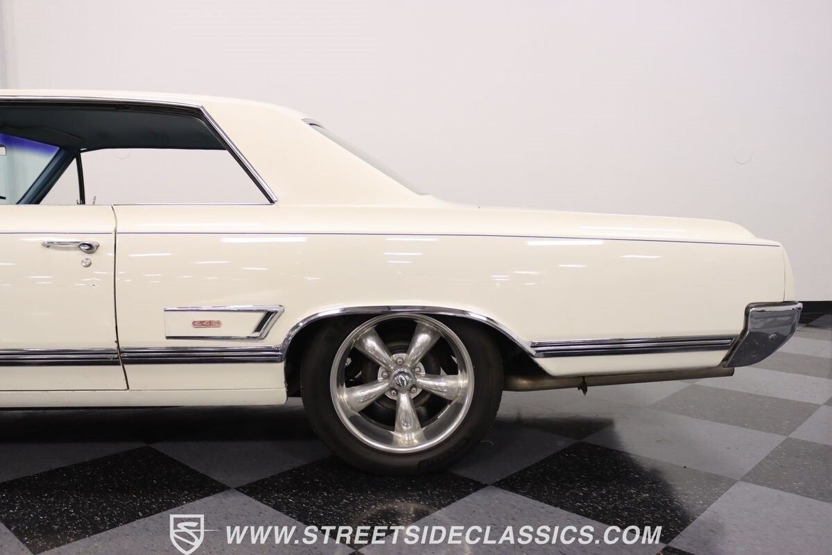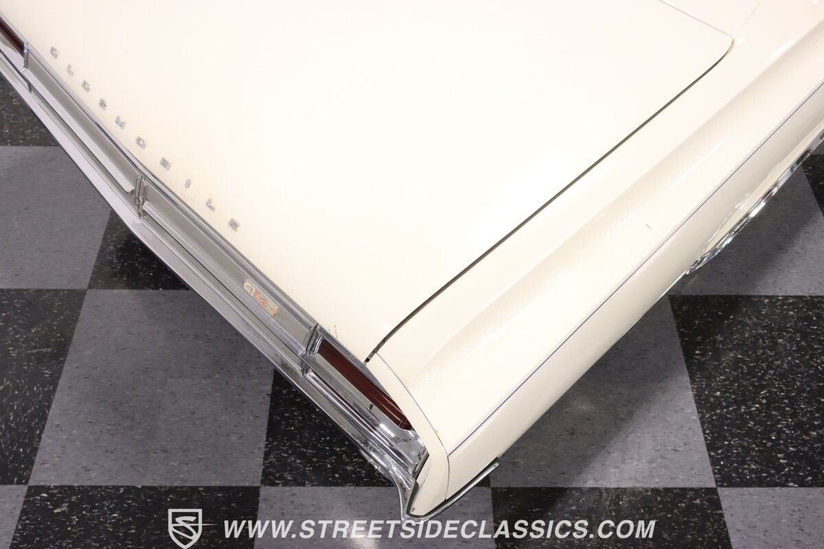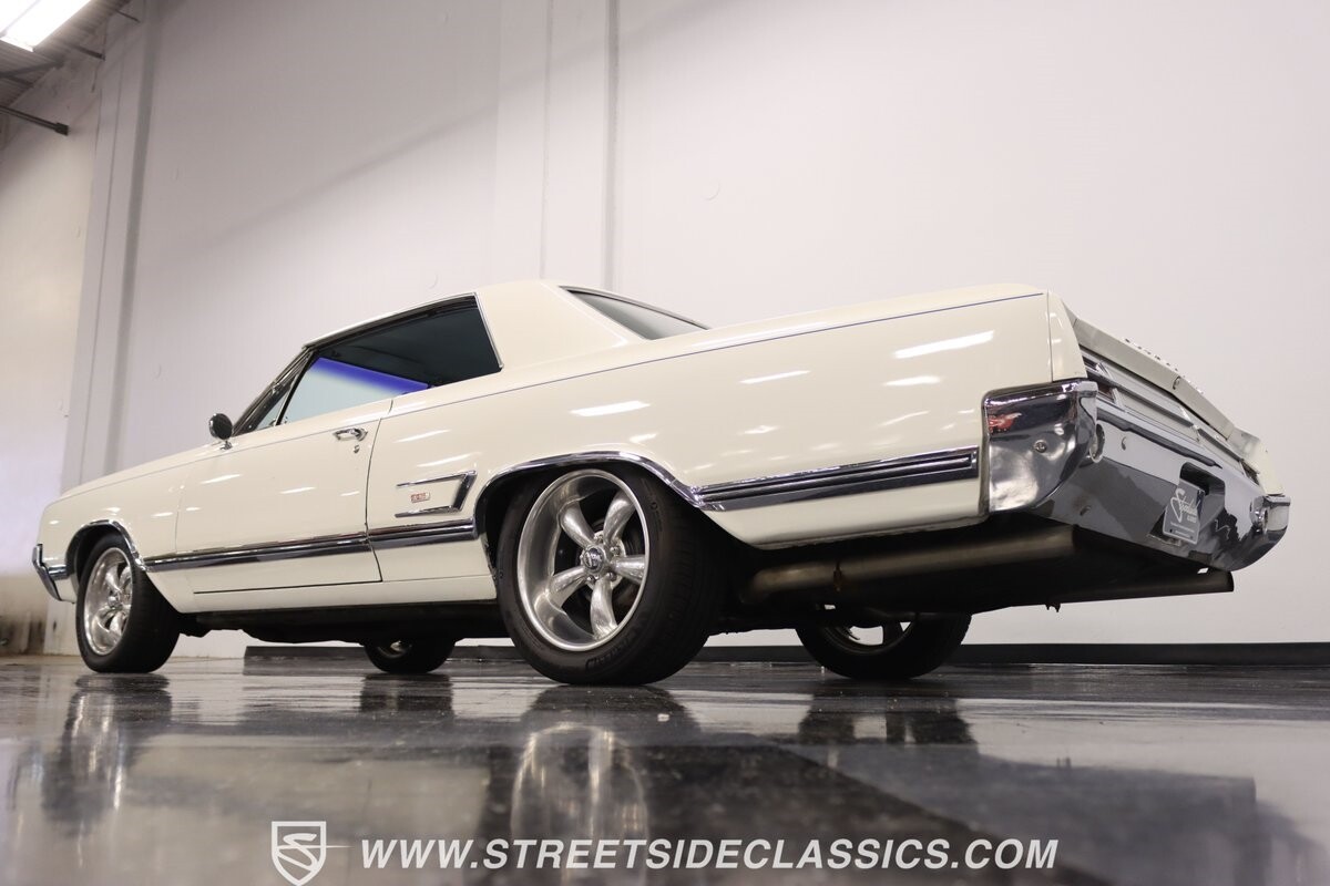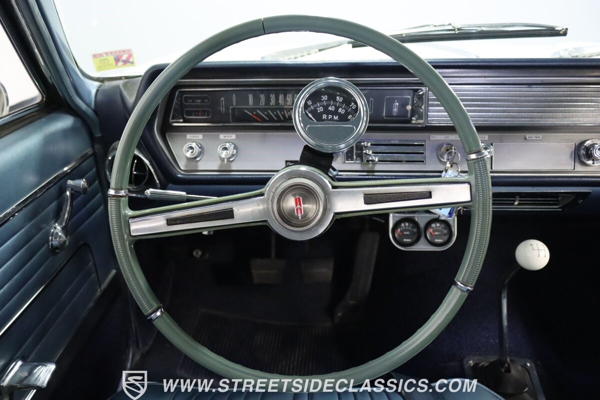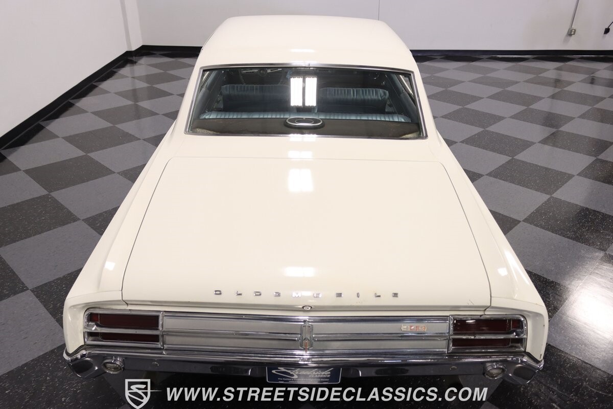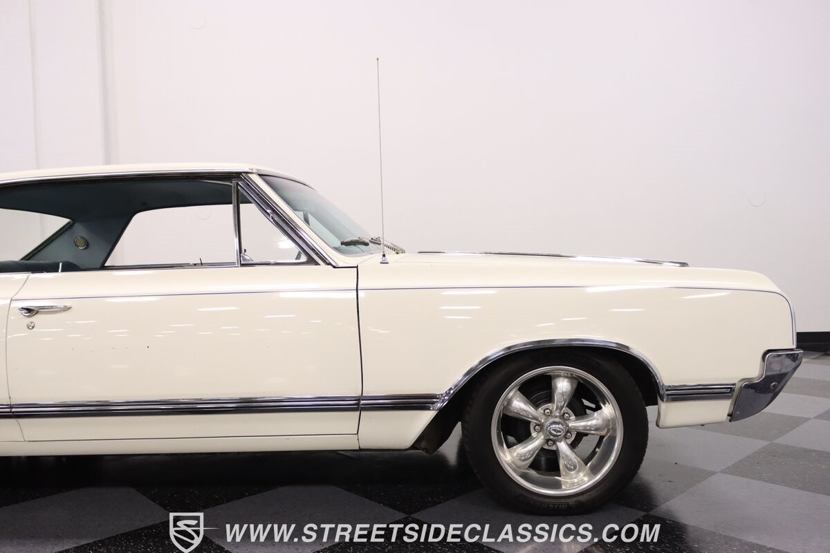 Before Linda Vaughn became synonymous with her iconic appearances on the rear of the '72 Hurst Olds, there was the predecessor that set the stage – the 1965 Oldsmobile Cutlass 442. This Oldsmobile is a superb example of the 442's prowess, boasting the original Provincial White paint and blue vinyl interior maintaining its authenticity and historical integrity. The interior features original blue vinyl bucket seats and a Hurst floor shifter. The believed original interior adds to its authenticity, showcasing the car's well-maintained condition and believed actual mileage of 58,392 miles.