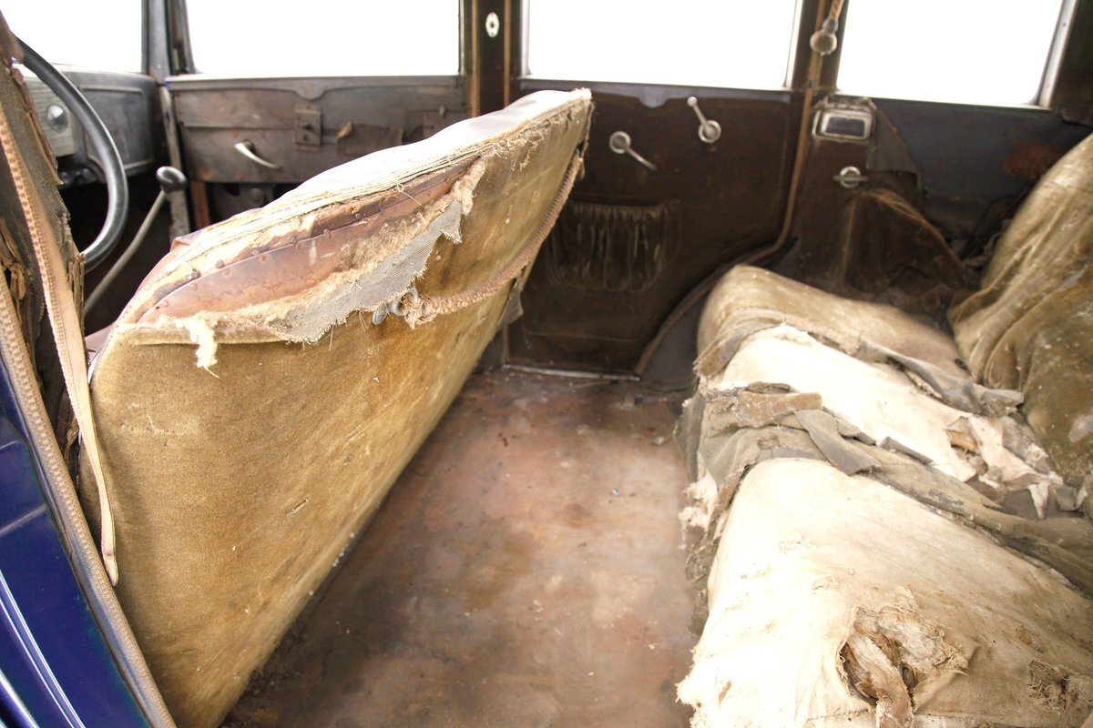 Available now from our consignment halls, a former member of a prestigious private barn find collection, a 4 door version of the touring sedan. She shows fairly nicely with slight rust on some seams and a few dents and dings. The interior is pure 1930's with mohair and overstuffed seating. The engine is unrestored but is all there. Overall fair condition awaiting some TLC.