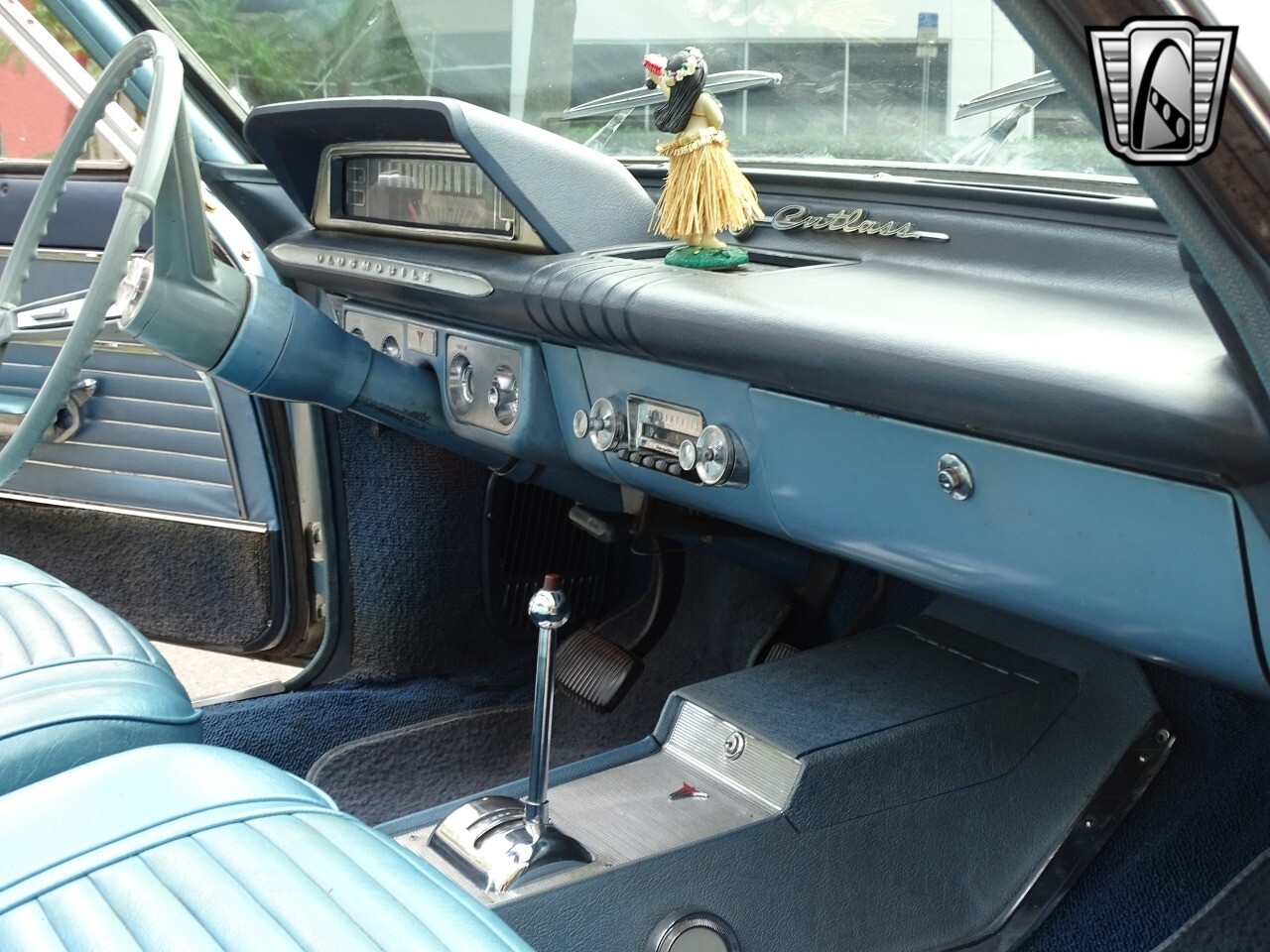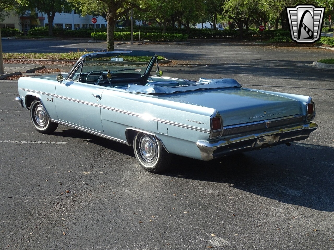 Gateway Classic Cars of Orlando is proud to present this charming 1963 Oldsmobile F-85 Cutlass Convertible. Oldsmobile had won a reputation for itself at General Motors by leading the way in engineering breakthroughs, such as Hydra-Matric automatic transmission, first seen on the 1940 models, and the modern high compression Rocket V-8 engine that debuted in 1949. Debuting for 1961 the F-85 Cutlass was marketed as one of GM's upscale "senior" compacts. Related to the Buick Special and Pontiac Tempest, it was built on a highly innovative for it's day unibody frame. This 63 convertible is quite a looker dressed in a stunning shade of blue with white roof. As you walk around the vehicle you'll notice nice details like the front end bright work and intact trim pieces. Take a seat inside and your'e greeted to a spacious and well appointed cabin. Eye catching blue vinyl really makes the interior pop and the gauges are set up well for driving. Under the hood is Oldsmobile's all-aluminum, 215 cubic inch "Rockette" V-8. Factory rated at a hearty 185hp and spinning with a compression ratio of 10.25:1 this was one advanced engine for the time. Backed by Oldsmobile's 3-speed hydromantic transmission imagine how this car can get up and go! According to the owner this vehicle received a new top in 2014, new carpet in 2021 and an alternator in 2022. If you're looking for a well taken care of Oldsmobile this is the one you want to own! Options include AM radio, power top, spare tire, hub caps, power steering, seat belts, vinyl interior and radial white wall tires..