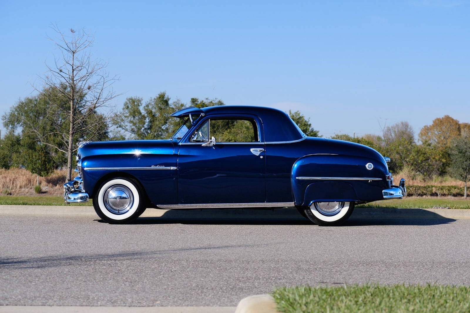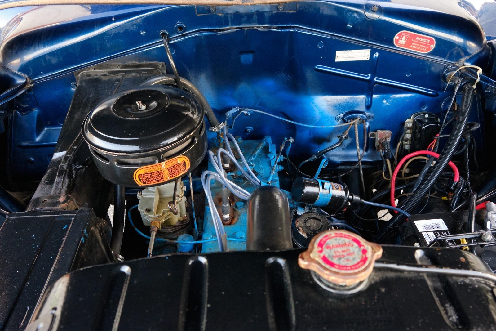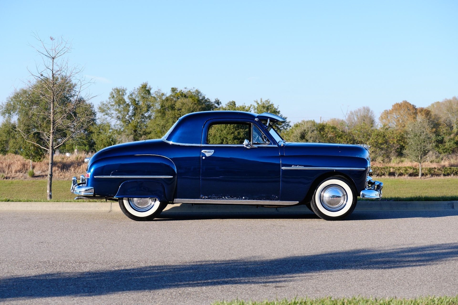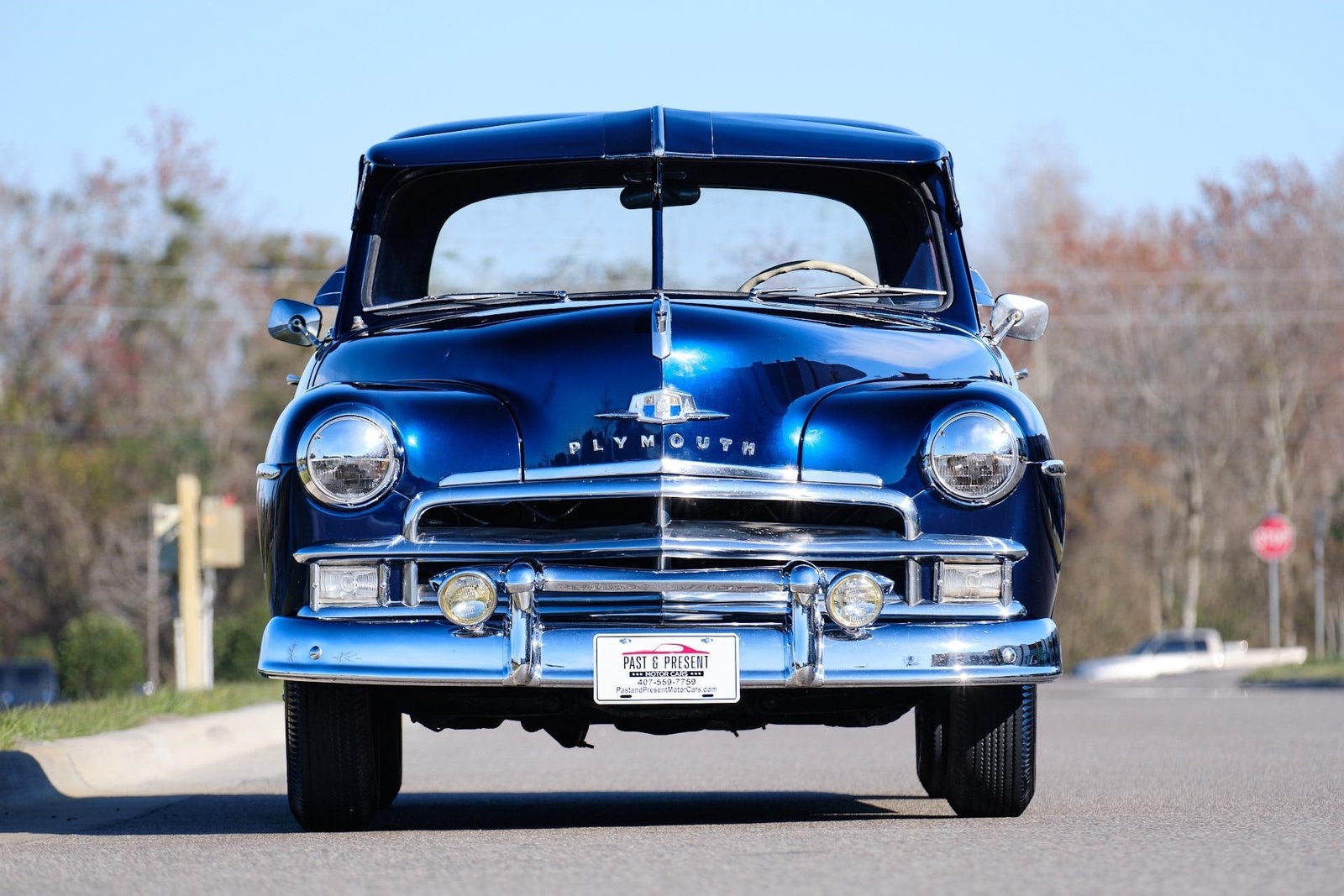1950 Plymouth Business Coupe, The Plymouth P20 platform was introduced for the 1950 model year. The business coupe was a trim level, powered by an Inline 6 engine L-Head. Displacement: 217.8 cu in. 3.6 L. Power: 97 HP @ 3600 RPM. Bore: 3.3 inch. Stroke: 4.4 in Compression: 7.0:1 Main Bearings: 4 Cylinder Block: Cast-iron, Factory carburetor was a Carter BB-D6H1 1-barrel carburetor. Very original engine & parts including oil bath air cleaner. 3 speed manual transmission. Paint and body - older paint job which is actually 1949 New Brunswick Blue code 606 with a handful of metallic thrown in to give her a nice glow. Very good condition wide mouth 3 horizontal piece chrome grill with running lights tastefully placed. Straight lines, great gaps, Correct trim pieces and emblems. Split front windshield, dual wipers. Exterior Sun visor across the top of the front windshield, is not only functional, but creates an iconic antique look. Fender skirts, nice stainless steel rocker panels, both front and rear bumpers have chrome bumper guards. Interior - absolutely stunning real wood grain gauge cluster and dash. Burgundy and Gray two-tone seats and door panels. Carpeting and headliner are in very good condition. All the interior knobs crank handles, etc. are in good condition. Beautiful large three spoke Ebony, steering wheel with woodgrain surround around the horn button with the Plymouth logo. Factory original chrome push button AM radio. Factory original clock. Functional placement of the interior controls plus a very plush luxury looking interior. Steel rims are painted to match the color of the car. Beautiful chrome, beauty ring. “Moon” hub caps. Wide white wall radial tires. The spare is a matching wheel and tire to the four wheels on the car. No driving around with a strange looking doughnut spare for a flat repair. While we do our best to provide the highest quality muscle cars with an honest and reliable description and realize the importance of transparency when selling vehicles. That being said, we have not built, modified, changed or personally owned this vehicle. Whether this vehicle is consigned or owned by Past & Present Motor Cars we do not know the vehicles complete history since new. We want to be clear and try to answer any questions our customers might have prior to purchasing. Additionally, we not only welcome but we encourage 3rd party independent inspections. Please inquire prior to purchase to make sure the advertised vehicle has not already been sold. We list our vehicles on multiple websites and a vehicle can sell at any time. If a customer chooses to purchase sight unseen (many of our customers choose this option) the customer accepts the vehicle AS IS and WHERE IS and understands we cannot address concerns after purchase. For this reason, it's important all concerns are addressed prior to purchase. We make every effort to present accurate and reliable information, but use of this information is voluntary, and should only be deemed reliable after an independent review of its accuracy, completeness, and timeliness. It is the sole responsibility of the customer to verify the existence of options, accessories and the vehicle condition before time of sale. Financing is Available with low rates and Vehicle Shipping is available from our Showroom to your Garage. A Classic Car Warranty is Available for Purchase from a 3rd Party. Please speak to our Sales Associate or Company Representative for more information. Our team is working and available anytime by Phone or Text for your convenience at407-559-7759. Thank you for your interest!