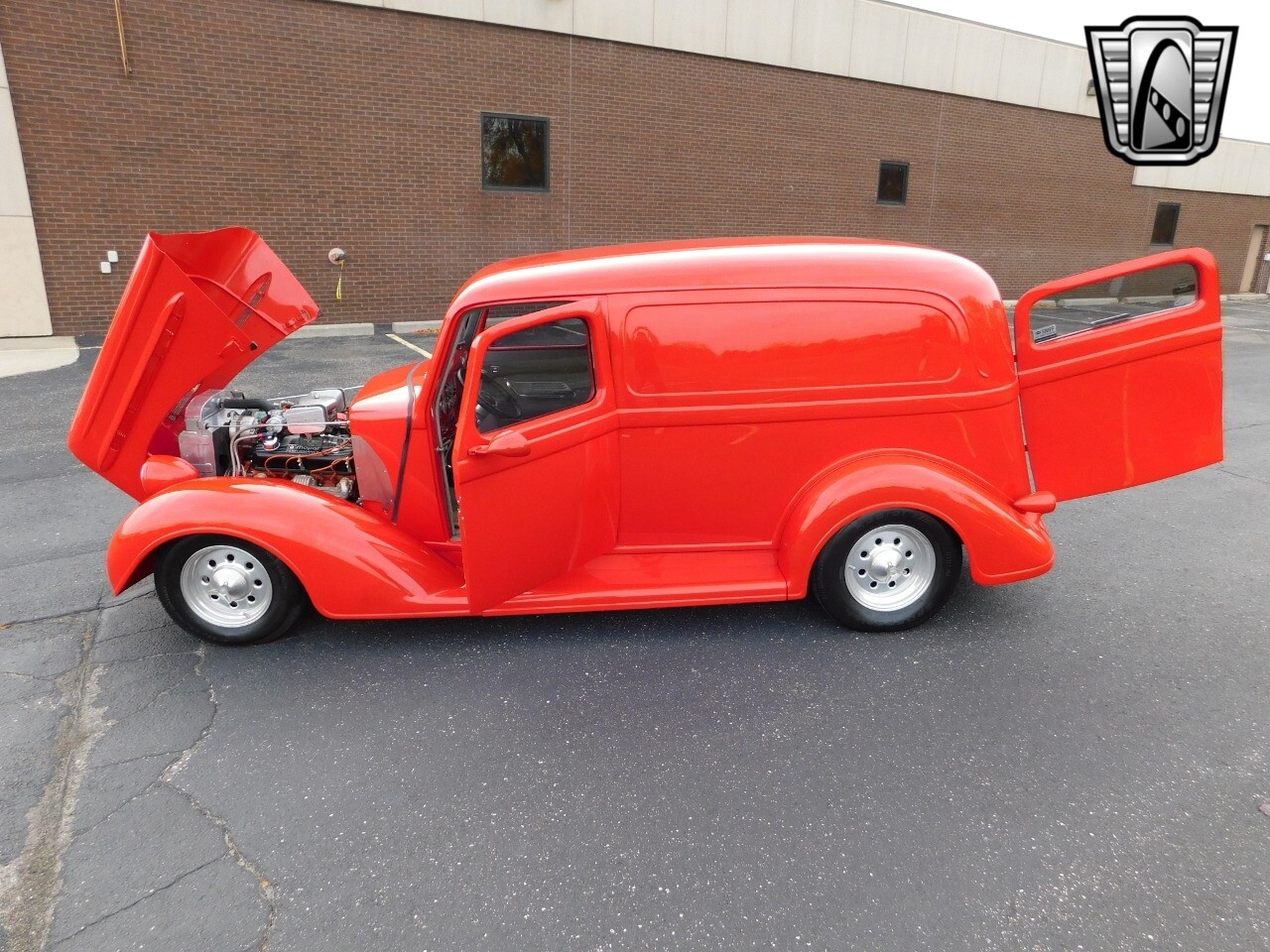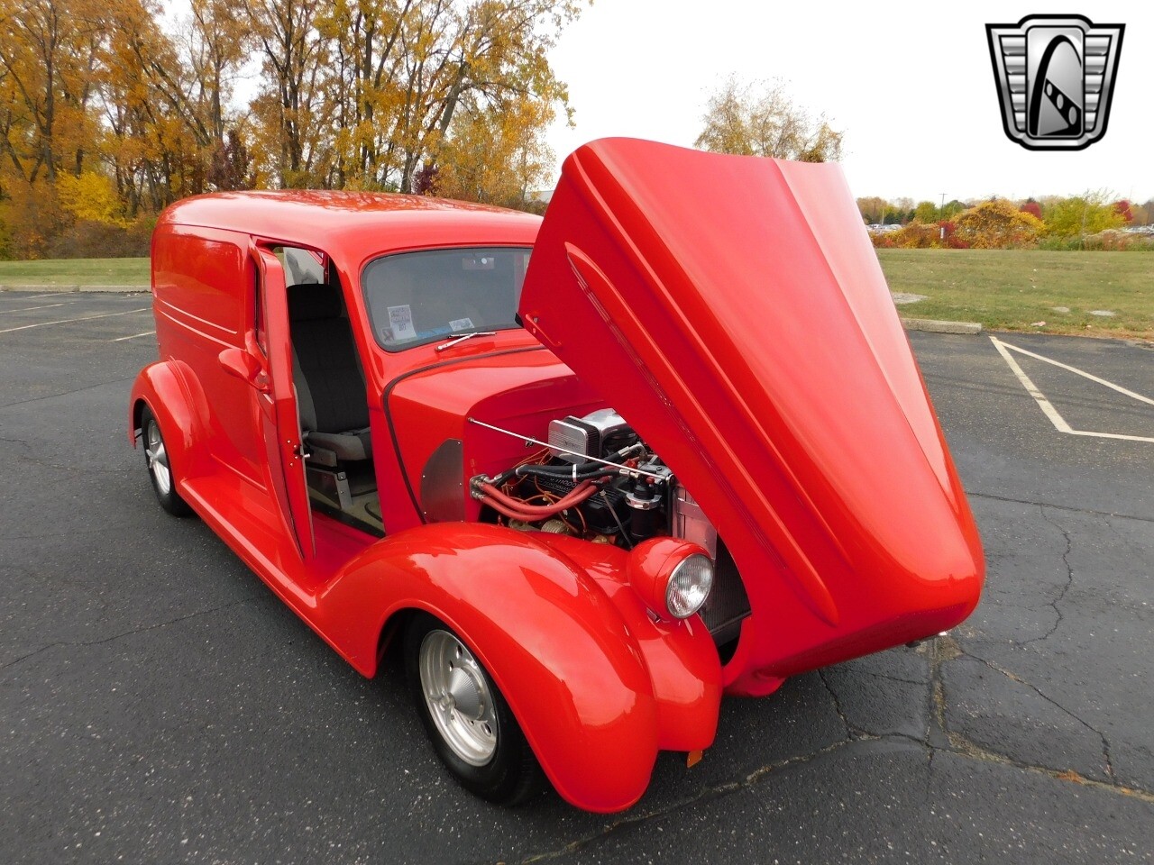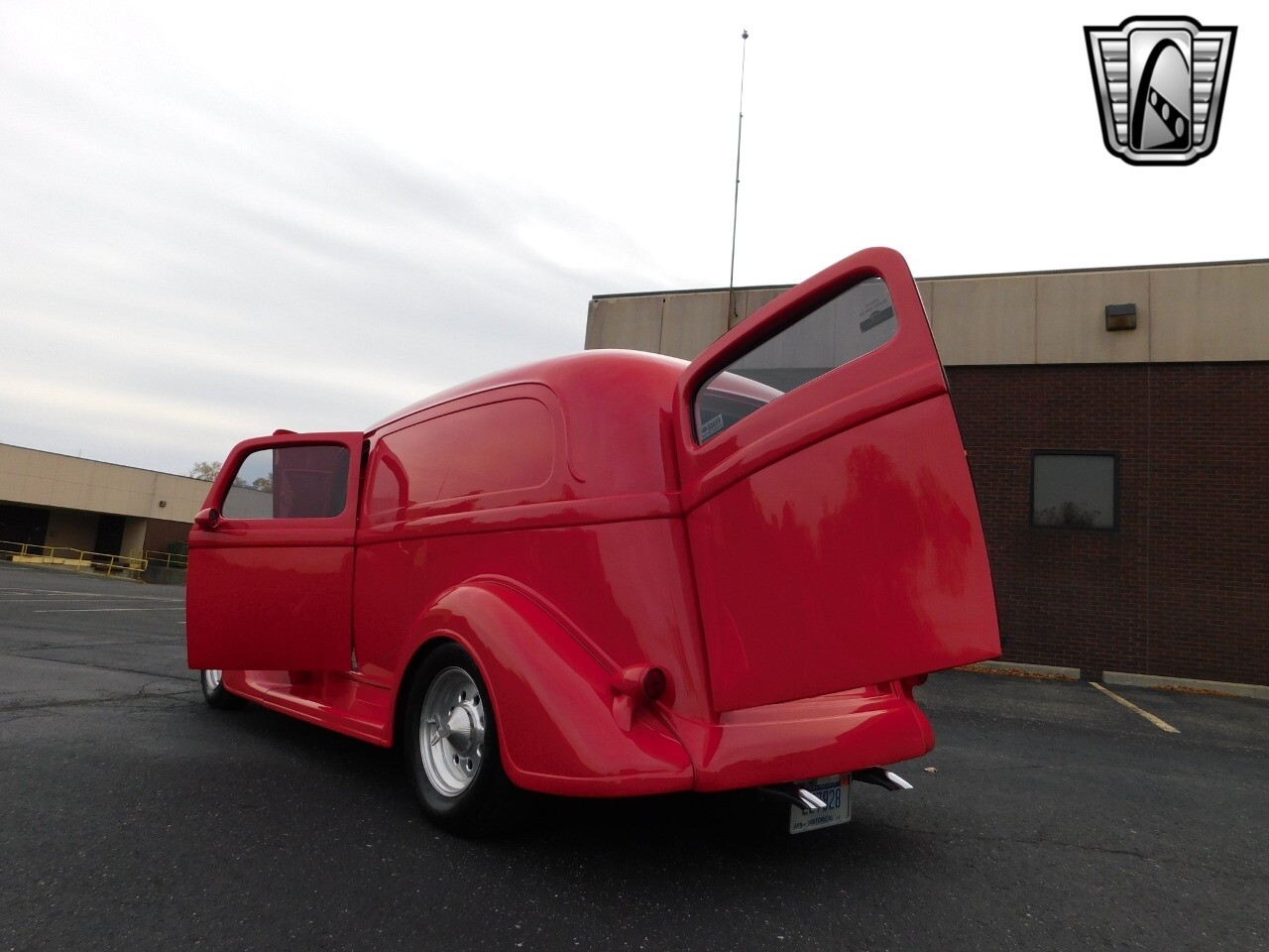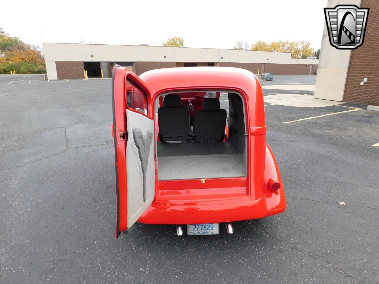 Gateway classic cars of Detroit is proud to present this 1938 Plymouth Sedan Delivery. This 2 door van styled Plymouth is very unique, as you can see at first glance. Under the hood you will find a 340ci engine, that is mated to an automatic transmission with a 8 and 3/4 rear end with a 3.55 gear. [ omitted ]. When sitting inside, you're greeted with a beautiful painted dashboard full of gauges. The aftermarket Sony radio is located on the overhead center console, leaving the dash clean and classy. Options include: A/C, AM/FM/CD player, power brakes, power steering, power locks, power windows, tilt wheel, and radial tires with beautiful custom knock-off hubs.