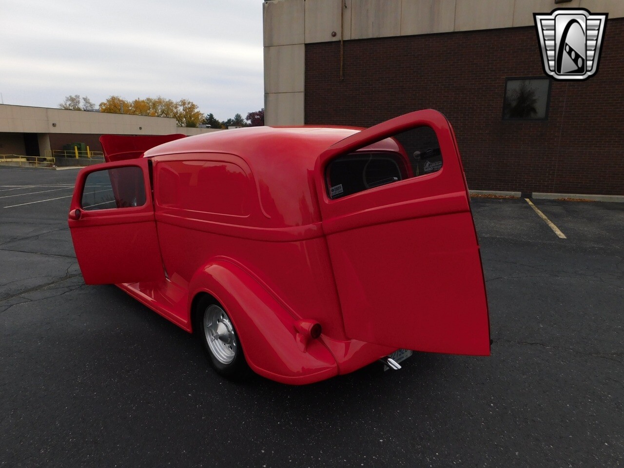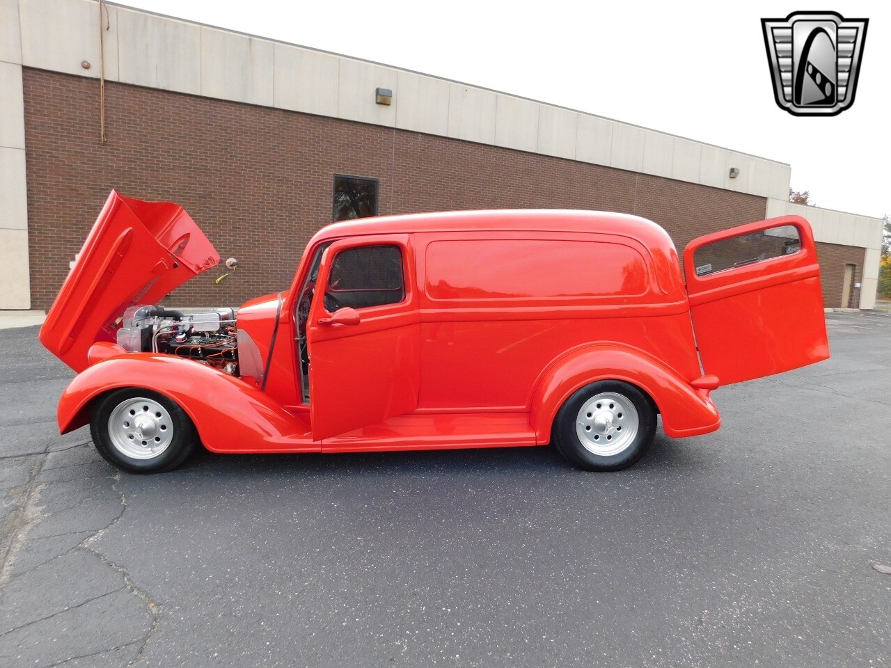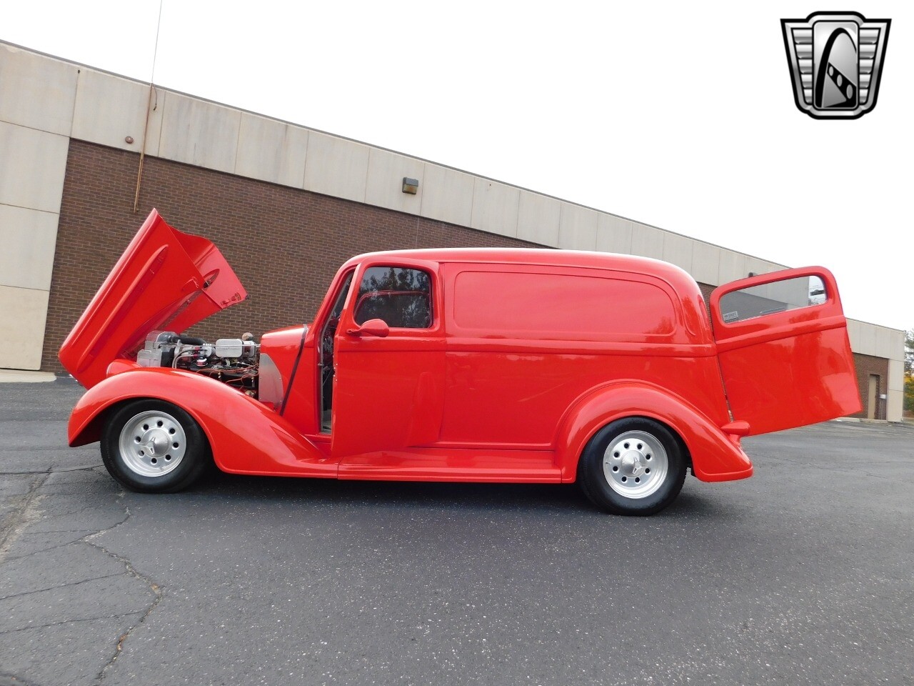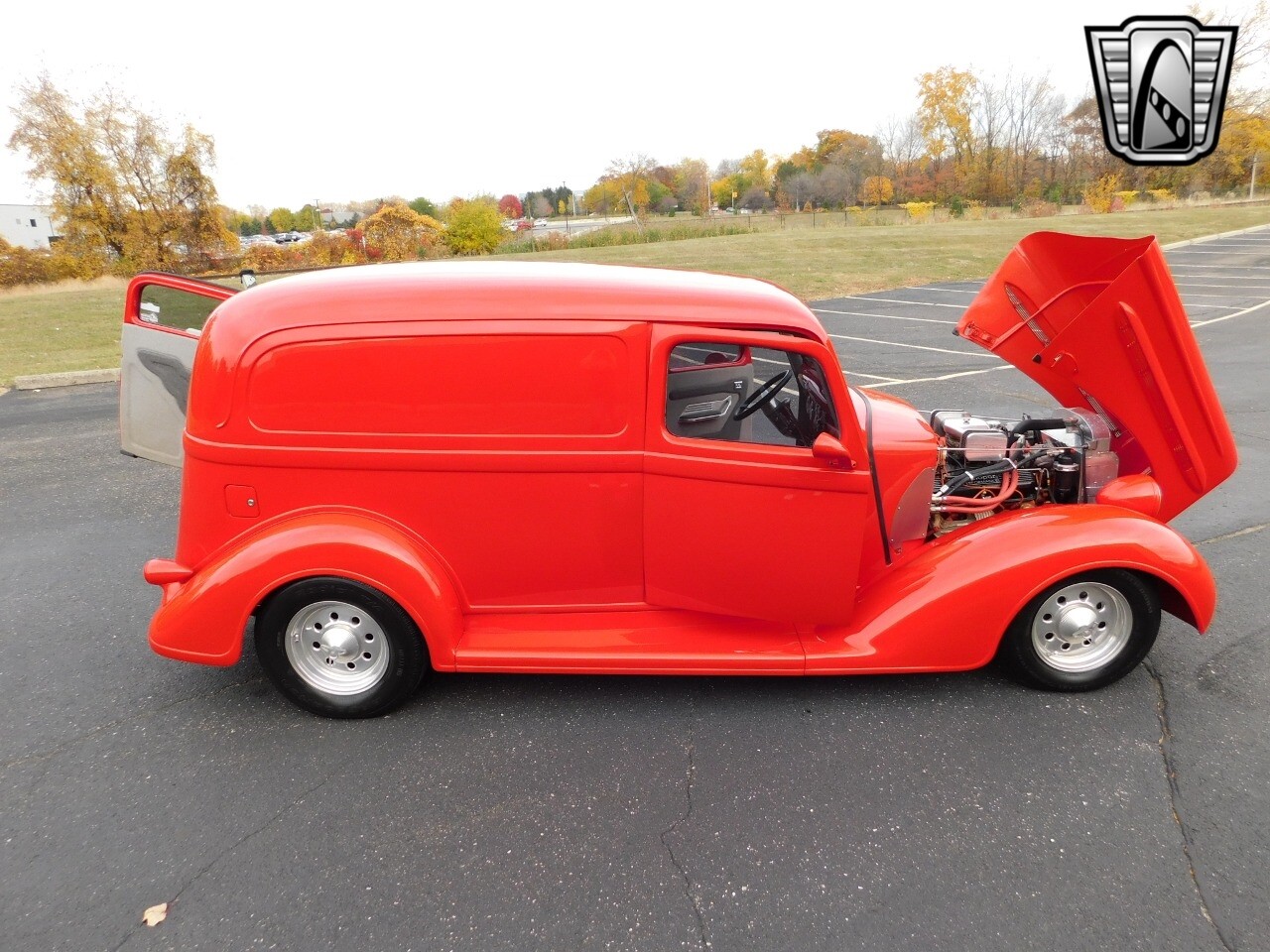 Gateway classic cars of Detroit is proud to present this 1938 Plymouth Sedan Delivery. This 2 door van styled Plymouth is very unique, as you can see at first glance. Under the hood you will find a 340ci engine, that is mated to an automatic transmission with a 8 and 3/4 rear end with a 3.55 gear. [ omitted ]. When sitting inside, you're greeted with a beautiful painted dashboard full of gauges. The aftermarket Sony radio is located on the overhead center console, leaving the dash clean and classy. Options include: A/C, AM/FM/CD player, power brakes, power steering, power locks, power windows, tilt wheel, and radial tires with beautiful custom knock-off hubs.