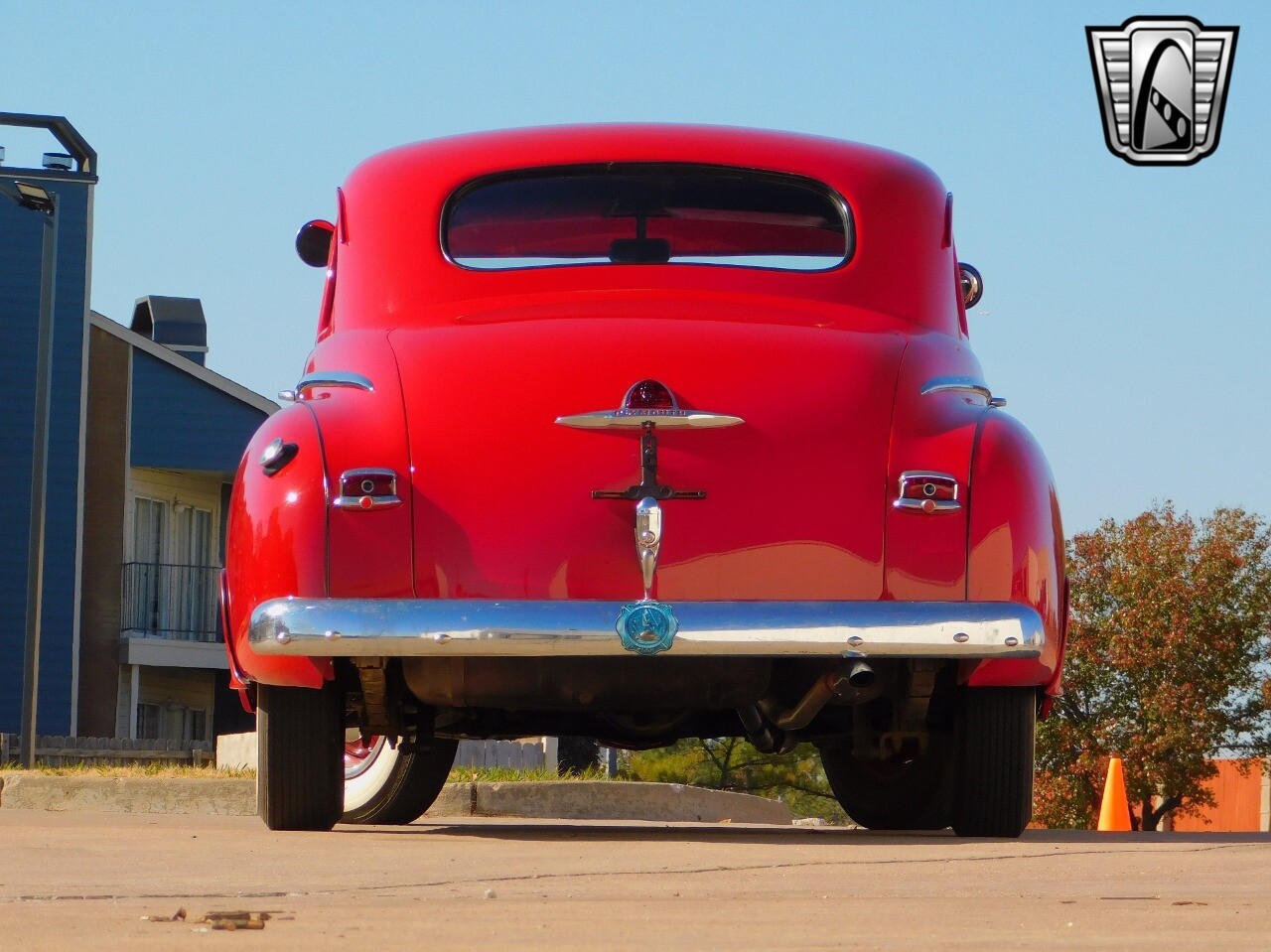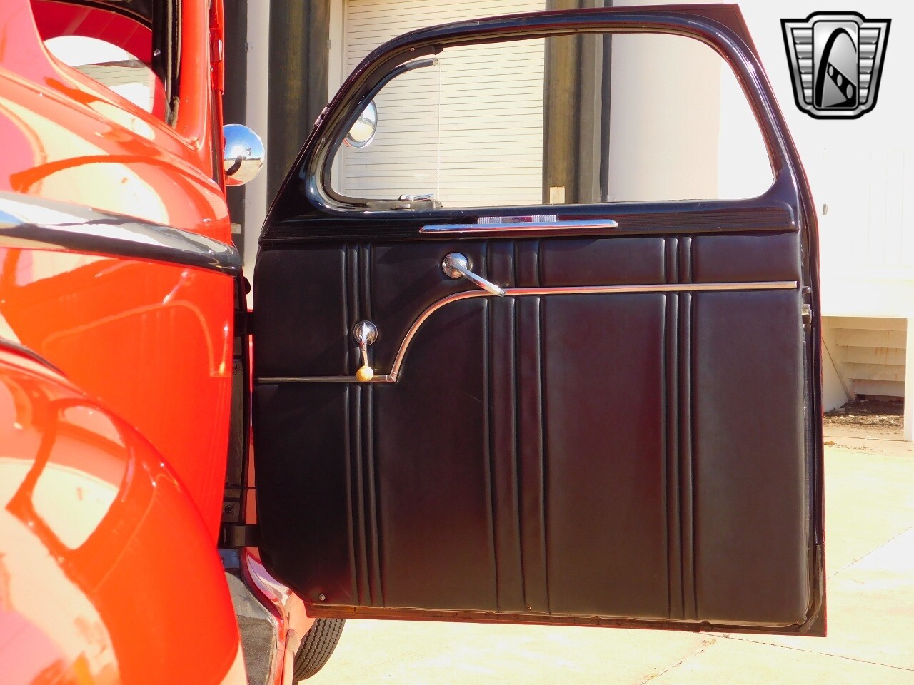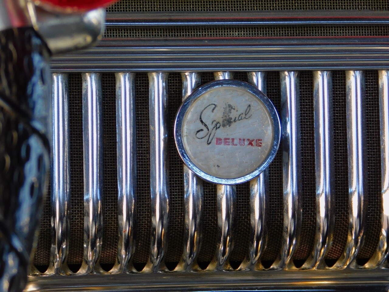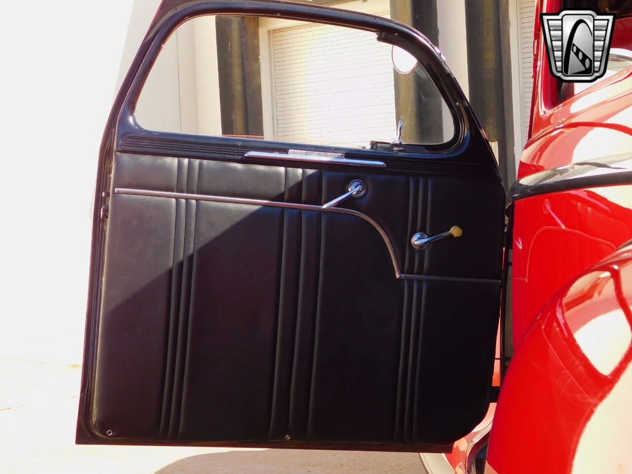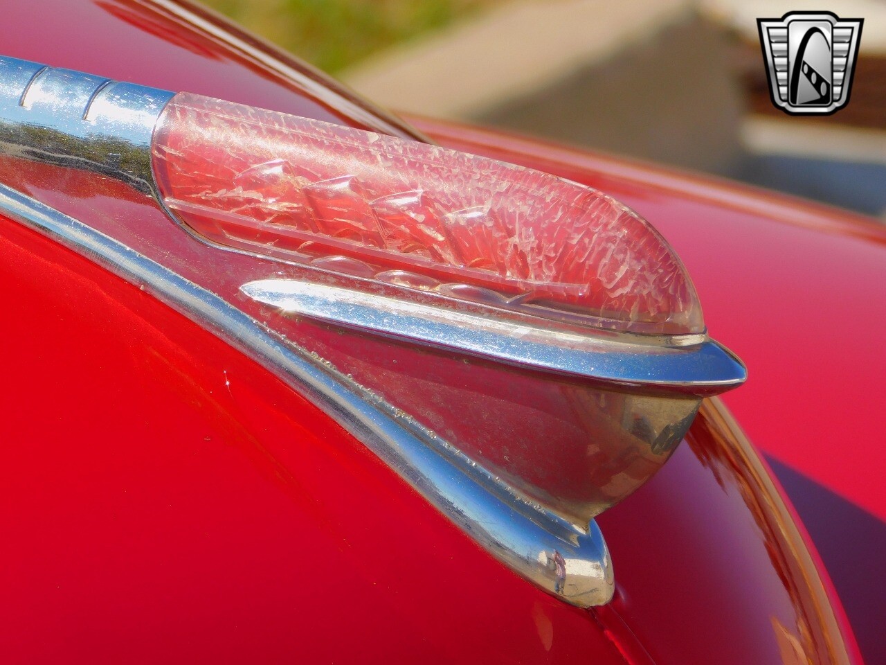 This car is prime example of the after war time Plymouths, painted in a nice bright red with nice details all around. We start in the front with chromed grill, bumper headlight rings and culminates up the prominent hood feature. Side chrome trim pieces abound and finishes with the rear chrome bumper. The major features of the outside include the adjustable color matched sun visor the extra A piler lights and customized side rear view mirrors.