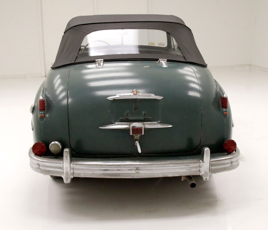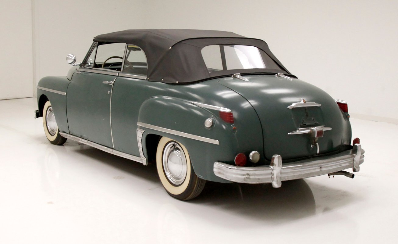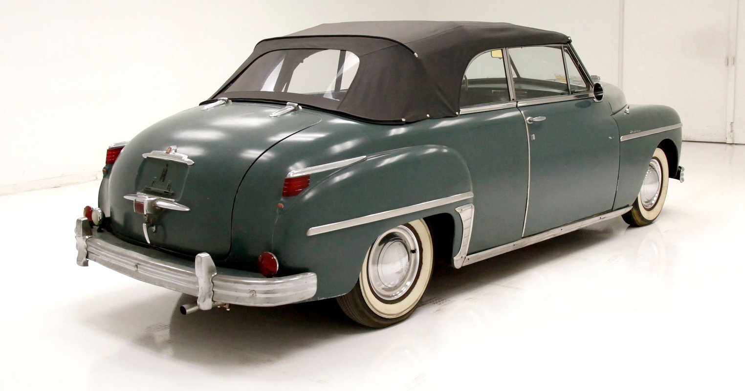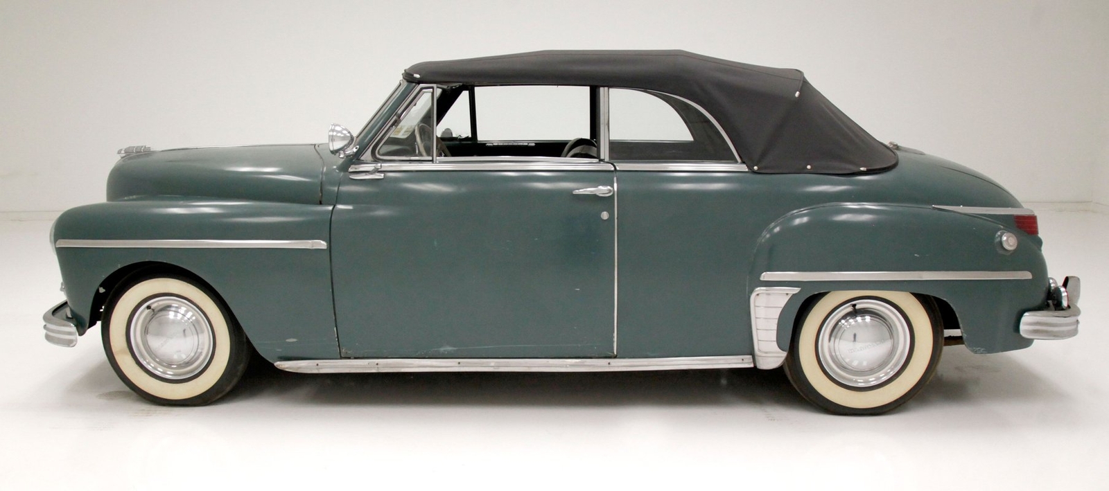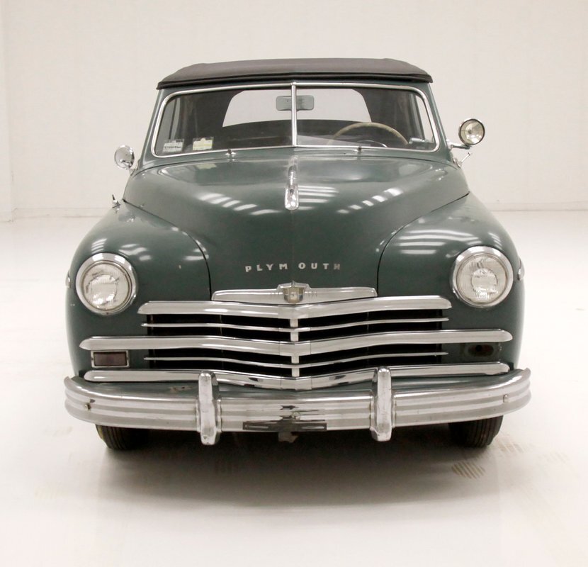 When you say 40's cars you think of post war pent up spending, but if you look at the pre Jet Age, before those fine finned beauties, you'll see enough has changed in our cars nearly 70 years on that these machines manage to feel vintage–they transport you to another era. We also need to look at the word ''Deluxe'' which was used by virtually every car manufacturer at one point or another. This car oozes ''Deluxe'' in many ways, like its design, embellishments, interior chrome, and curved lines. All affordable, and a real piece of vintage iron, in need of some TLC coming from long term indoor storage and now in our overstuffed Hallowed Halls. Now that's Deluxe in the flesh, a 1949 Plymouth P18 Special Deluxe convertible.