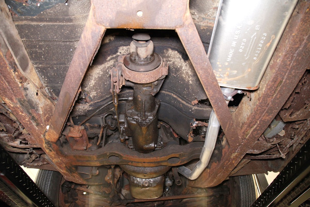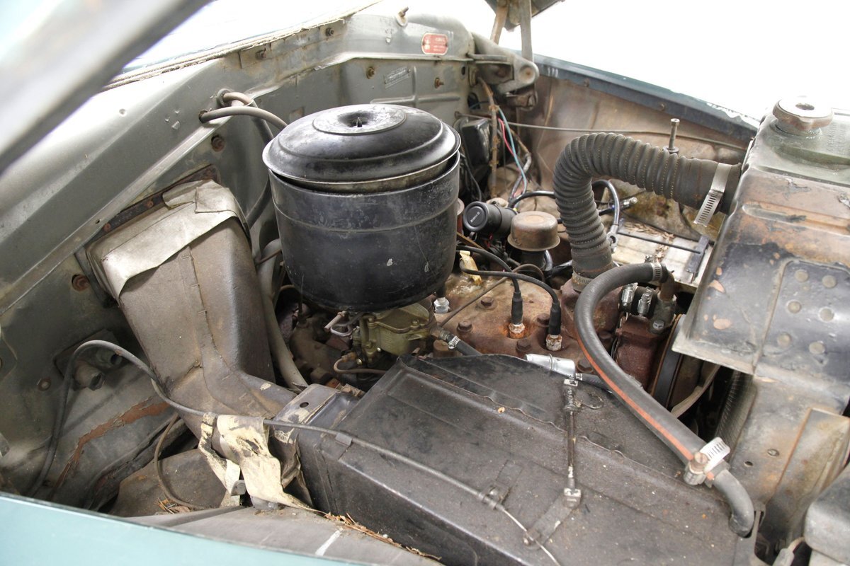Among all the other niceties this car offers up, is an unrestored appearing engine bay with a 218ci L-head inline 6-cylinder engine. Patina abounds on the black with a black painted oil bath air cleaning system above a 1-barrel carburetor and intake. On the back is a 3-speed manual transmission and a 3.90 geared rear axle turns the tires.