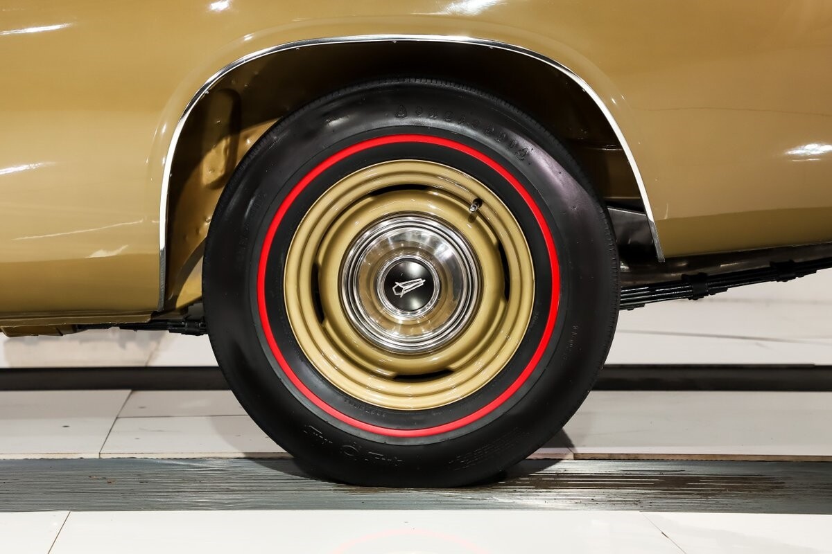 EXTERIOR: Great looking fastback roofline. Outstanding fit and finishes. Absolutely laser straight, no rust or damage. The gaps are precise, doors shut like new. Repainted it's original Ember Gold color. It's better than new, show quality glass finish. The Formula S has the chrome inserts on the hood, pop up gas cap and emblems on the fenders. All the chrome is mint, stainless is polished. Grills and tail panel are mint. Weather strips and seals were replaced. New windshield. Painted to match rims with poverty caps and new reproduction redline tires.