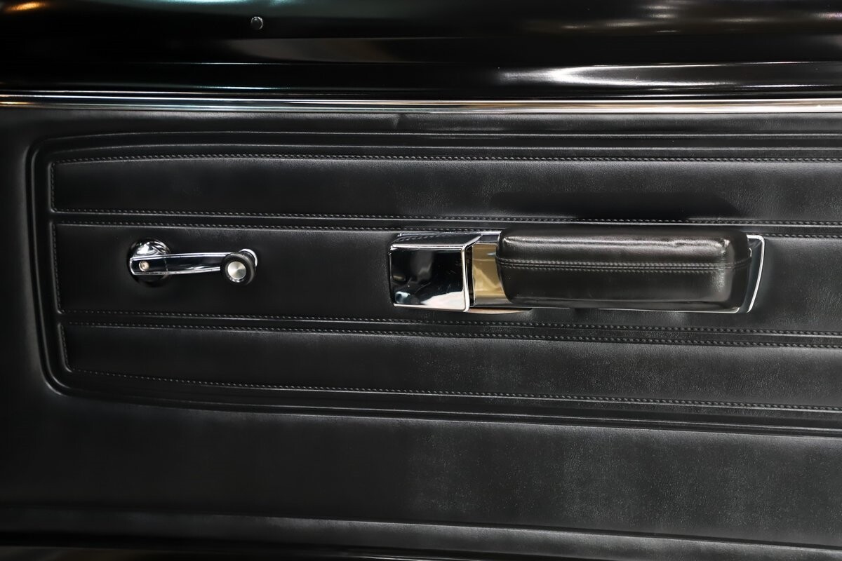INTERIOR: It's like new. Premium Legendary upholstery and door panels. The dash area is mint: knobs, trim, gauges, dash pads etc. It's aradio delete but hasa modern stereo below the dash. Very nice original console between the bucket seats. The rear seat folds flat, a 2+2! The deluxe wheel is restored like new. Interior lights work.