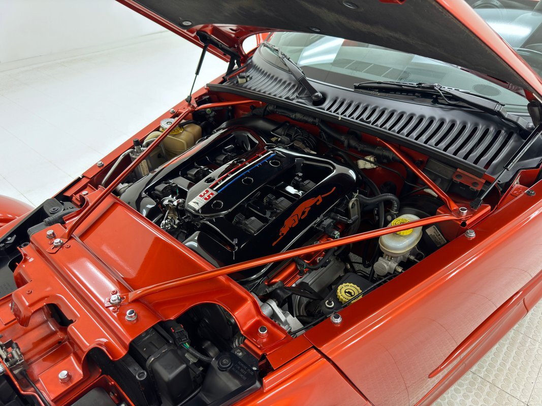 A 3.5 liter V6 engine resides under the tapered hood and is rated at 253 horsepower. Our engine bay shows some custom painting on the valve covers, radiator support, intake plenum, engine bay braces, and suspension springs. It makes the otherwise standard engine show worthy! The engine is fuel injected and tied to a 4-speed automatic transmission with AutoStick, located at the back of the car. Power disc brakes occupy the front and rear.