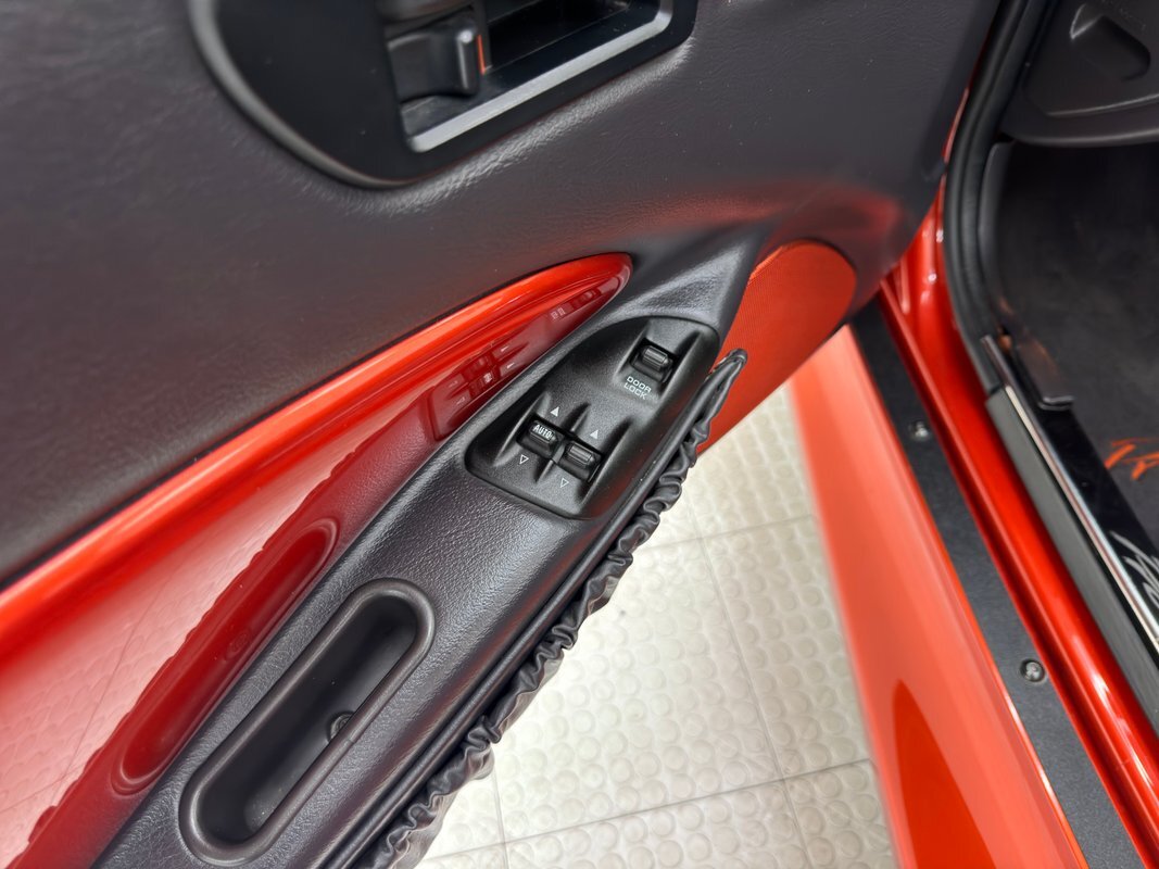 A total of 3,142 Prowlers were sold in 2001 and of them, nearly 1/3 were painted Prowler Orange Metallic Pearlcoat. So to differentiate his car, this owner added a TGF aftermarket grille and side panels. The front bumpers have been deleted and a custom LED turn signals have been added. Chrome front suspension dresses things up a bit and looks great with the reflective backing of the headlights and chrome wheels which have staggered dimensions with 17-inch in front and 20-inch in back. Wide rear tires, flared fenders, and straight dual exhaust tips enhance the incredibly wide tail end of the car that never ceases to impress. Painted brake calipers, to match the body, are a nice touch and the canvas black top complements the black rock guard on the back fenders. Imperfections include some curb rash on the wheels and a small hole in the soft top.
