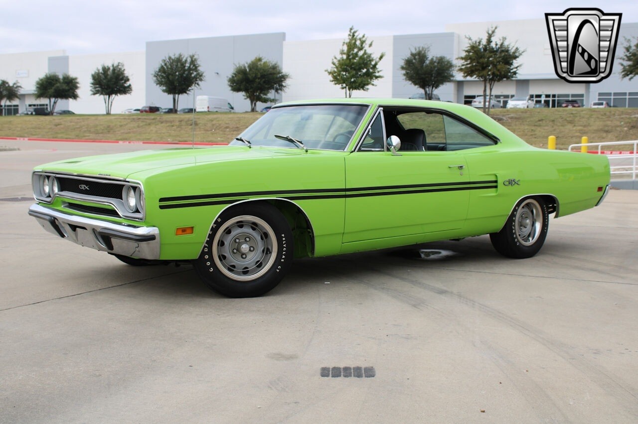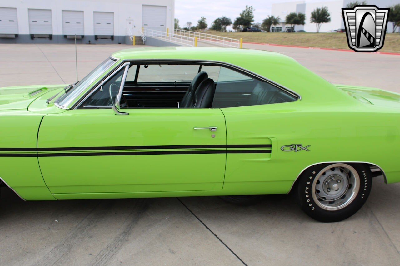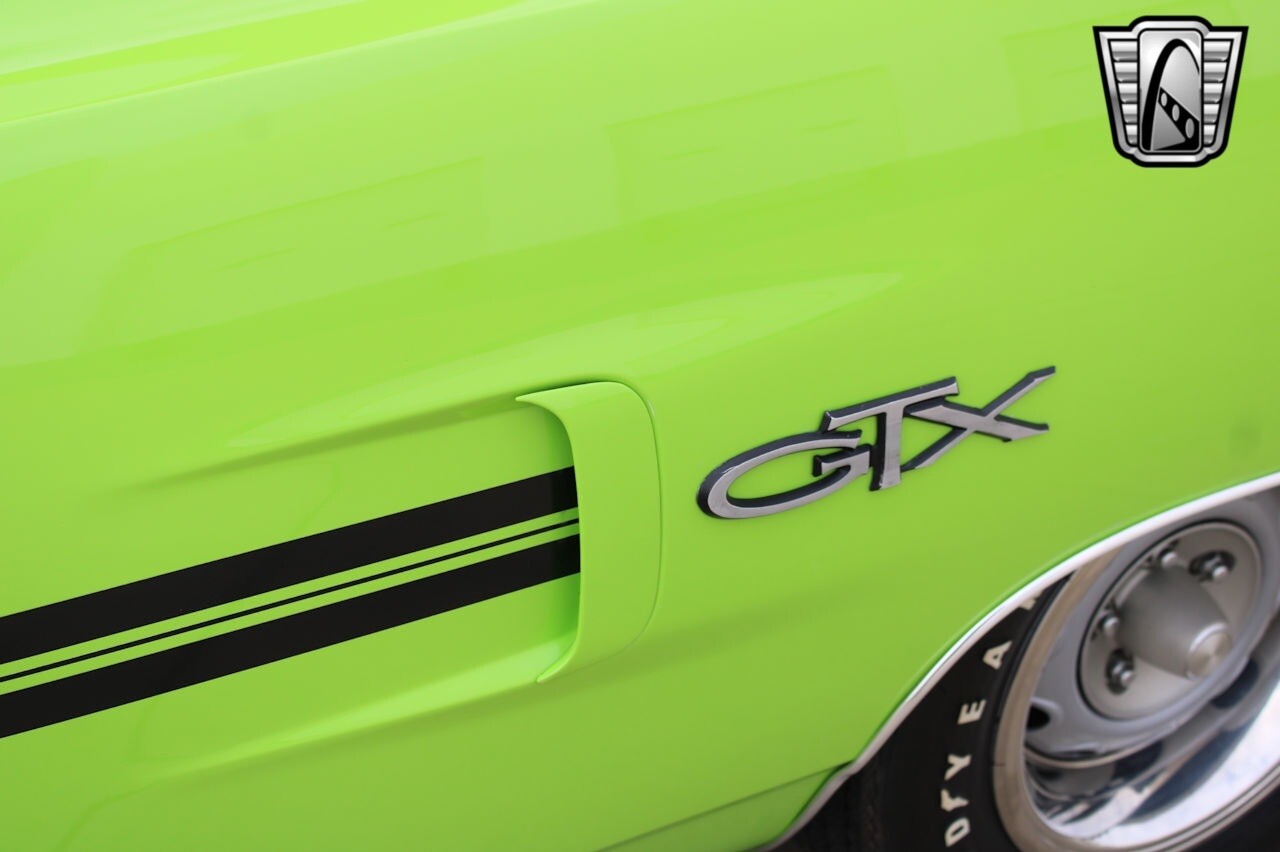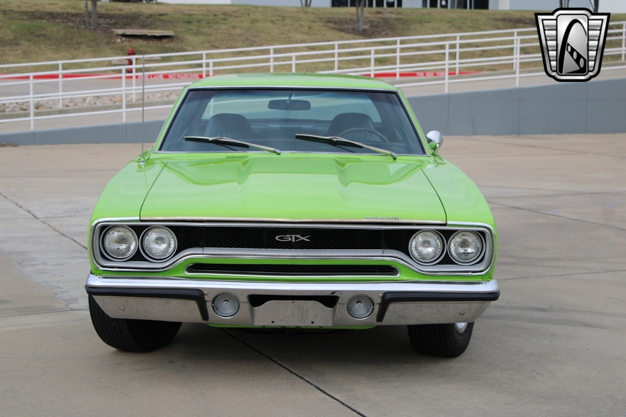 This Plymouth GTX stuns in its Limelight Green finish and sports a matching numbers 440 CID V8. It's equipped with a Torqueflite automatic transmission and underwent a thorough restoration by restorer Bob Romig / Schnitker Body Repair Inc. Sherman Texas. The car came out of Arkansas, to Schnitker Body in Sherman, where it received a Comprehensive OEM Rotisserie Restored by Bob for his client. Outside, the paint is smooth and of very good quality, looking pretty much factory stock. It was taken down to the bare metal, Inside, you'll find a fresh, neat, and tidy interior looking like new. Matching numbers 440 CID Magnum big block V-8 engine, Rebuilt by Arlington Machine Shop. 727 Torqueflite automatic transmission. [ omitted ]. [ omitted ]. Our Dallas Showroom is located at 1250 Mustang Drive Suite 500. Hours: Monday through Saturday, 9 AM to 5 PM CST, please reach out to set an appointment.