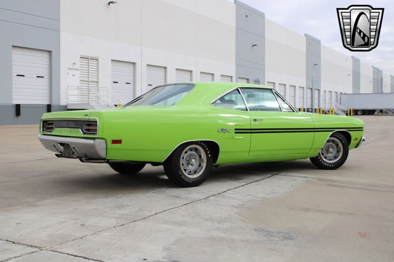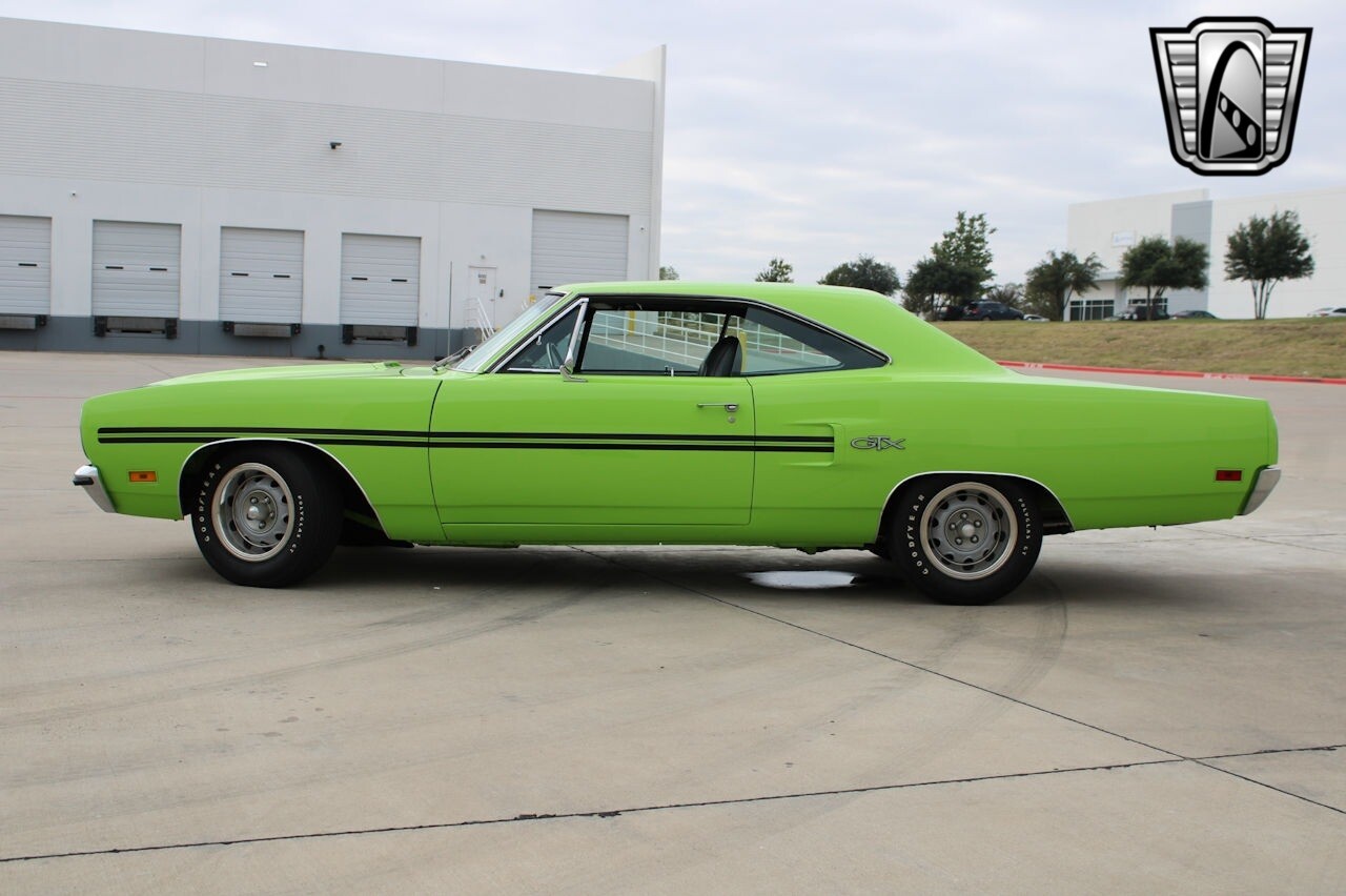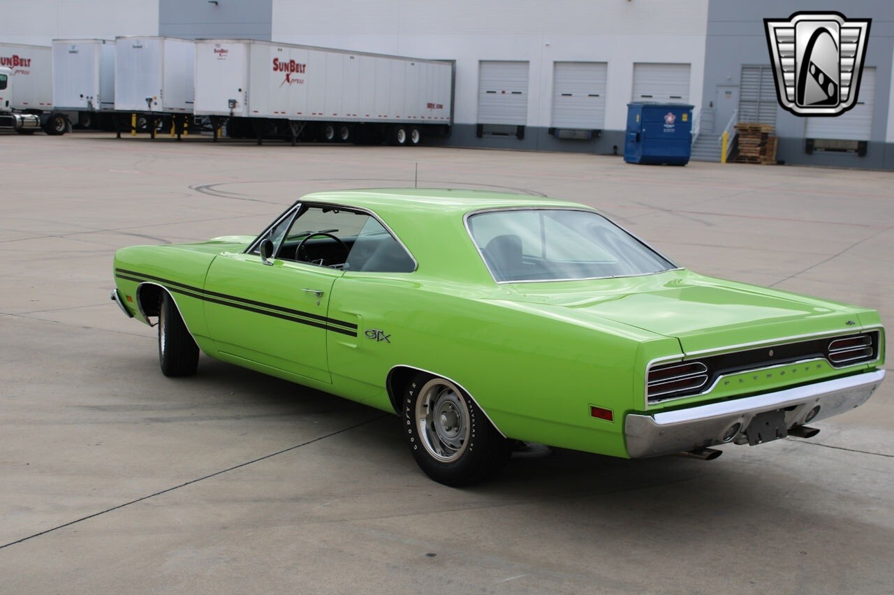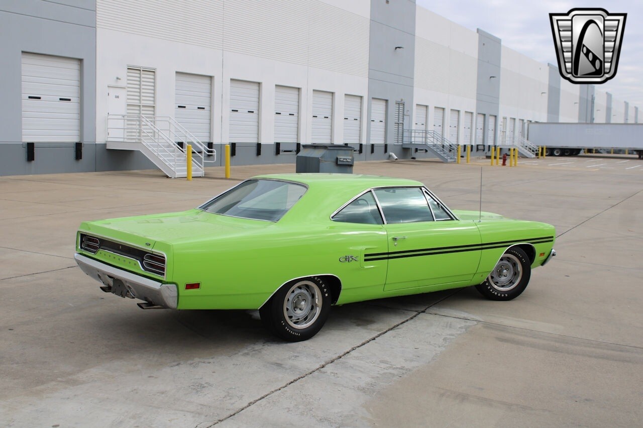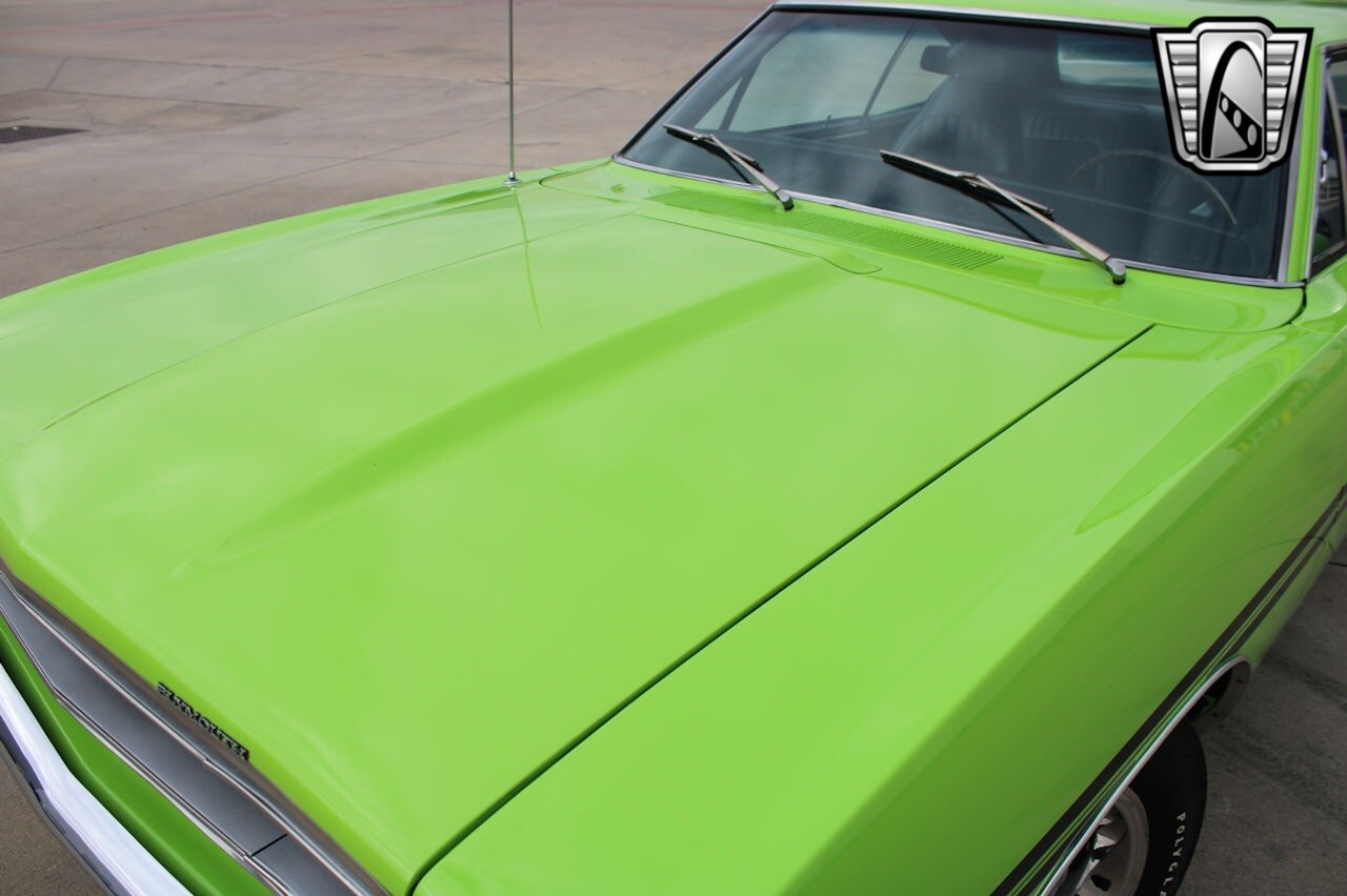 This Plymouth GTX stuns in its Limelight Green finish and sports a matching numbers 440 CID V8. It's equipped with a Torqueflite automatic transmission and underwent a thorough restoration by restorer Bob Romig / Schnitker Body Repair Inc. Sherman Texas. The car came out of Arkansas, to Schnitker Body in Sherman, where it received a Comprehensive OEM Rotisserie Restored by Bob for his client. Outside, the paint is smooth and of very good quality, looking pretty much factory stock. It was taken down to the bare metal, Inside, you'll find a fresh, neat, and tidy interior looking like new. Matching numbers 440 CID Magnum big block V-8 engine, Rebuilt by Arlington Machine Shop. 727 Torqueflite automatic transmission. [ omitted ]. [ omitted ]. Our Dallas Showroom is located at 1250 Mustang Drive Suite 500. Hours: Monday through Saturday, 9 AM to 5 PM CST, please reach out to set an appointment.