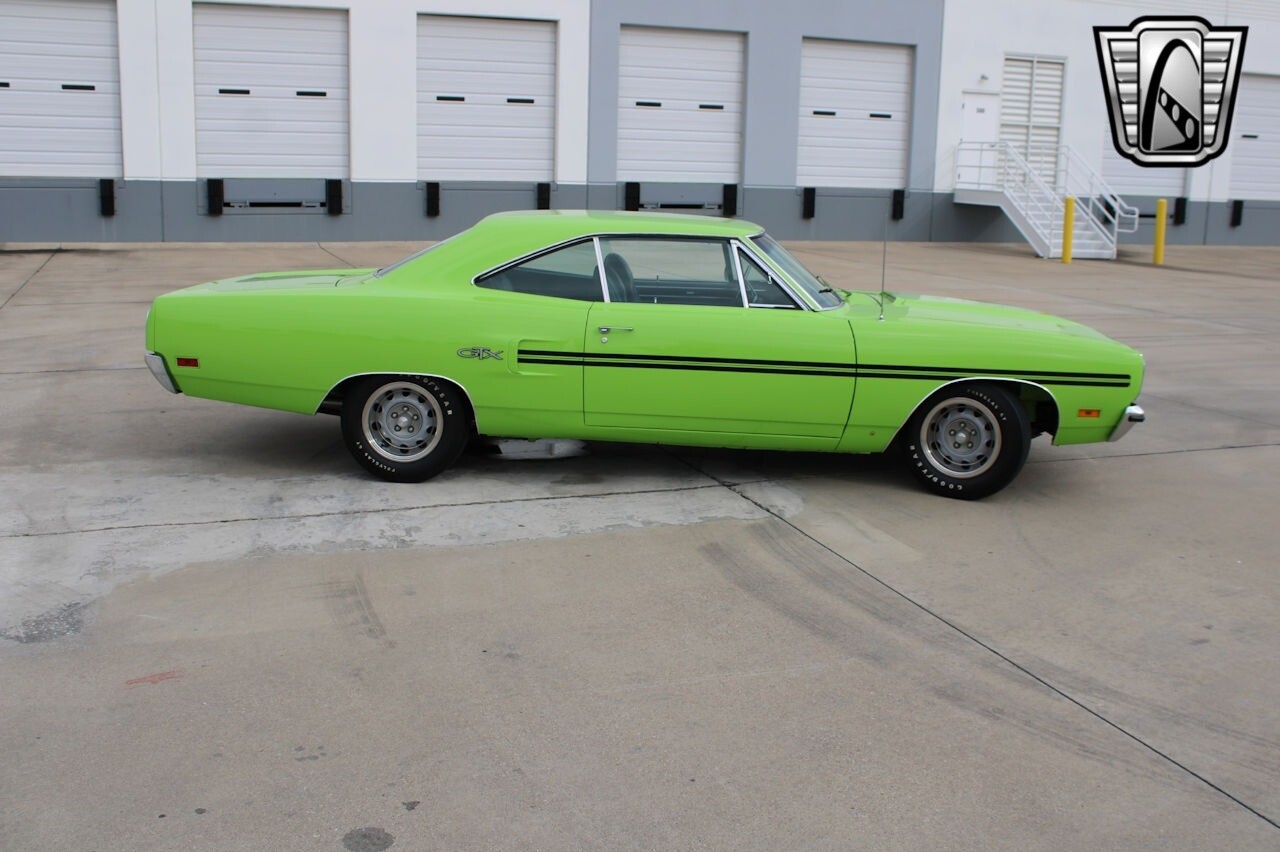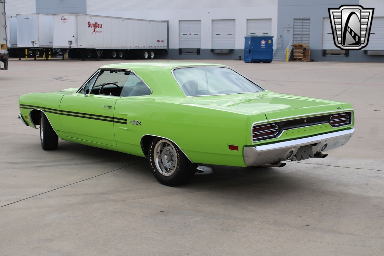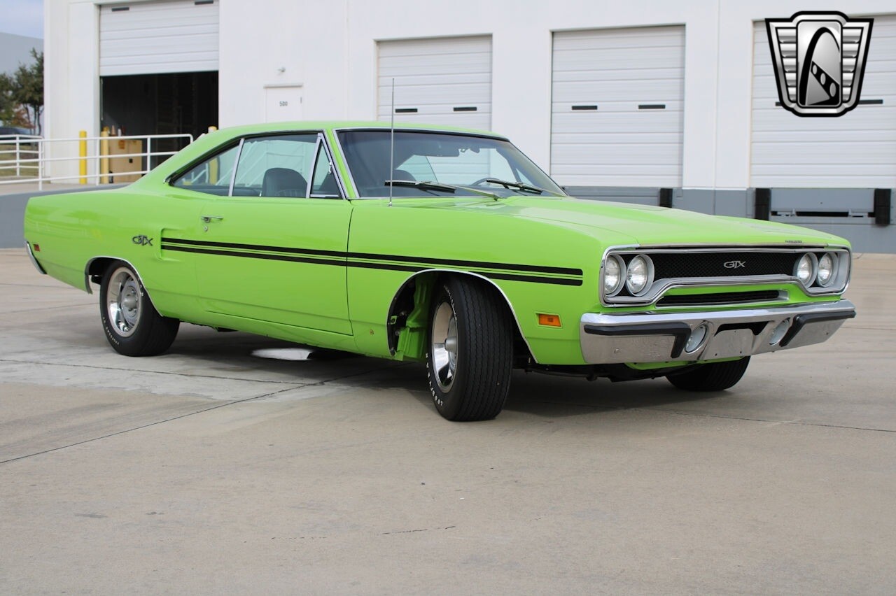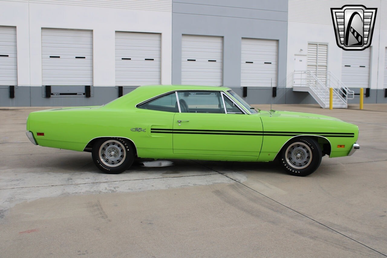 This Plymouth GTX stuns in its Limelight Green finish and sports a matching numbers 440 CID V8. It's equipped with a Torqueflite automatic transmission and underwent a thorough restoration by restorer Bob Romig / Schnitker Body Repair Inc. Sherman Texas. The car came out of Arkansas, to Schnitker Body in Sherman, where it received a Comprehensive OEM Rotisserie Restored by Bob for his client. Outside, the paint is smooth and of very good quality, looking pretty much factory stock. It was taken down to the bare metal, Inside, you'll find a fresh, neat, and tidy interior looking like new. Matching numbers 440 CID Magnum big block V-8 engine, Rebuilt by Arlington Machine Shop. 727 Torqueflite automatic transmission. [ omitted ]. [ omitted ]. Our Dallas Showroom is located at 1250 Mustang Drive Suite 500. Hours: Monday through Saturday, 9 AM to 5 PM CST, please reach out to set an appointment.