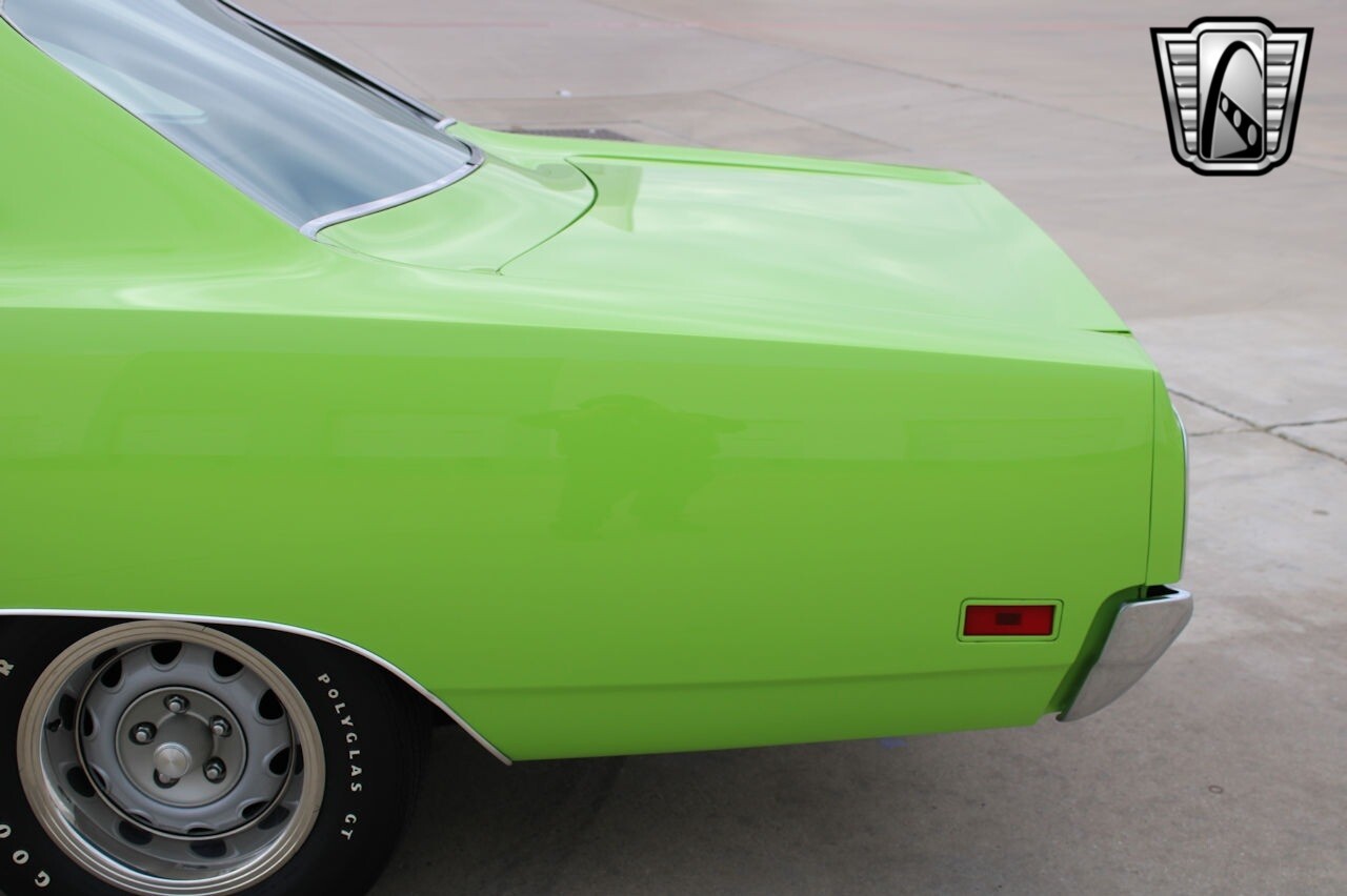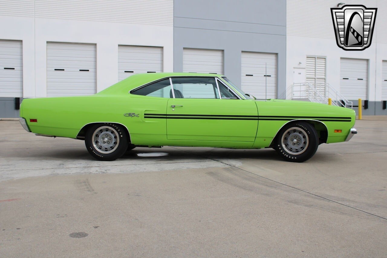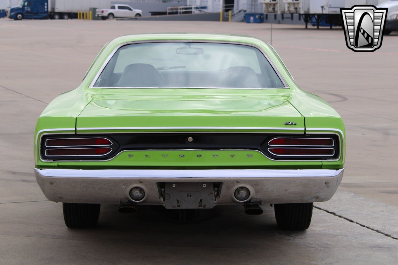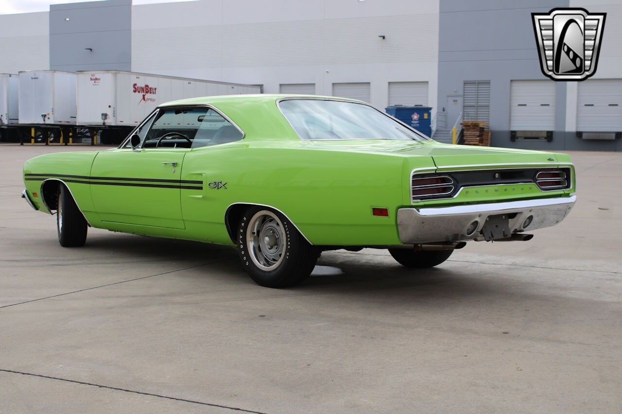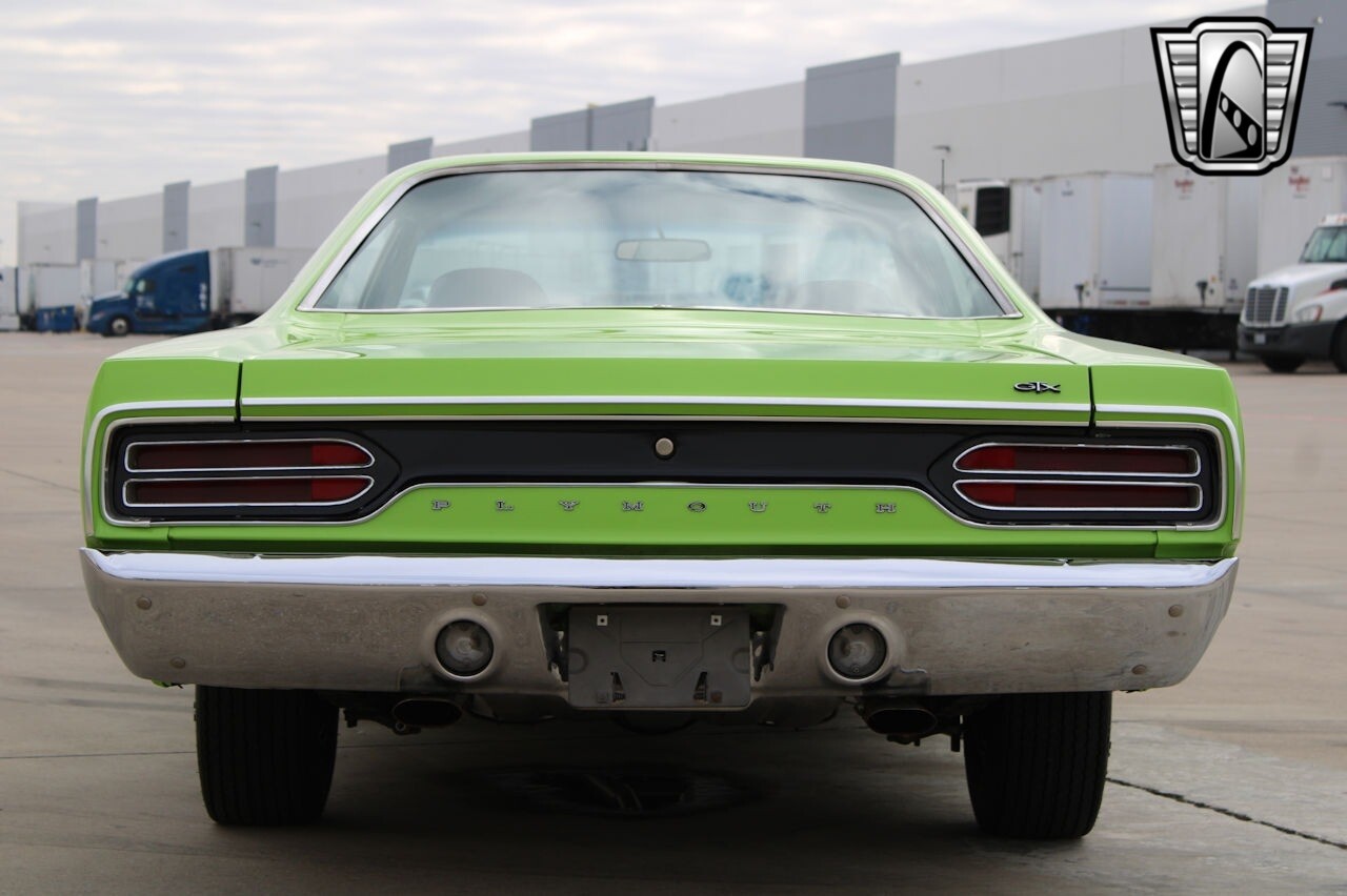 This Plymouth GTX stuns in its Limelight Green finish and sports a matching numbers 440 CID V8. It's equipped with a Torqueflite automatic transmission and underwent a thorough restoration by restorer Bob Romig / Schnitker Body Repair Inc. Sherman Texas. The car came out of Arkansas, to Schnitker Body in Sherman, where it received a Comprehensive OEM Rotisserie Restored by Bob for his client. Outside, the paint is smooth and of very good quality, looking pretty much factory stock. It was taken down to the bare metal, Inside, you'll find a fresh, neat, and tidy interior looking like new. Matching numbers 440 CID Magnum big block V-8 engine, Rebuilt by Arlington Machine Shop. 727 Torqueflite automatic transmission. [ omitted ]. [ omitted ]. Our Dallas Showroom is located at 1250 Mustang Drive Suite 500. Hours: Monday through Saturday, 9 AM to 5 PM CST, please reach out to set an appointment.