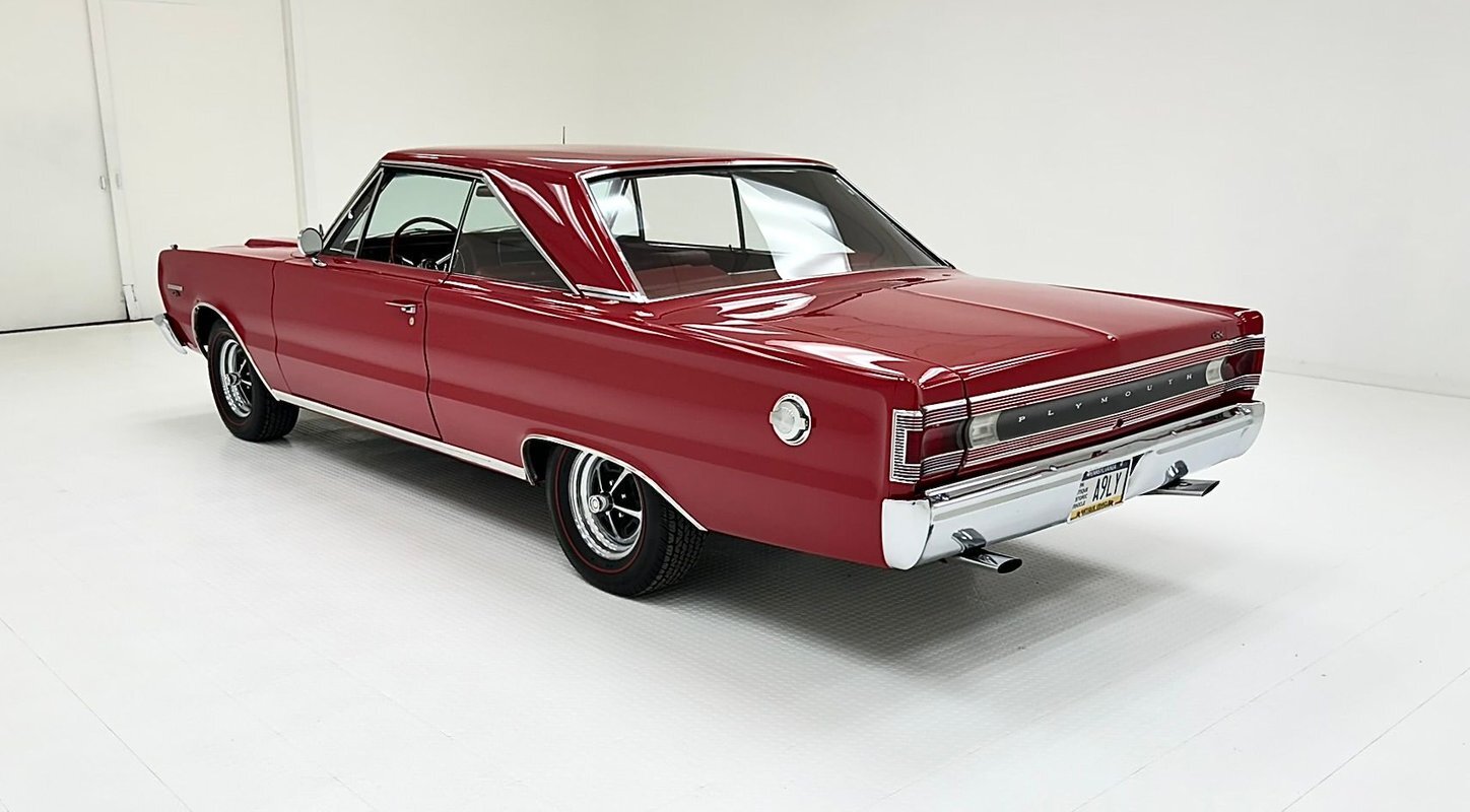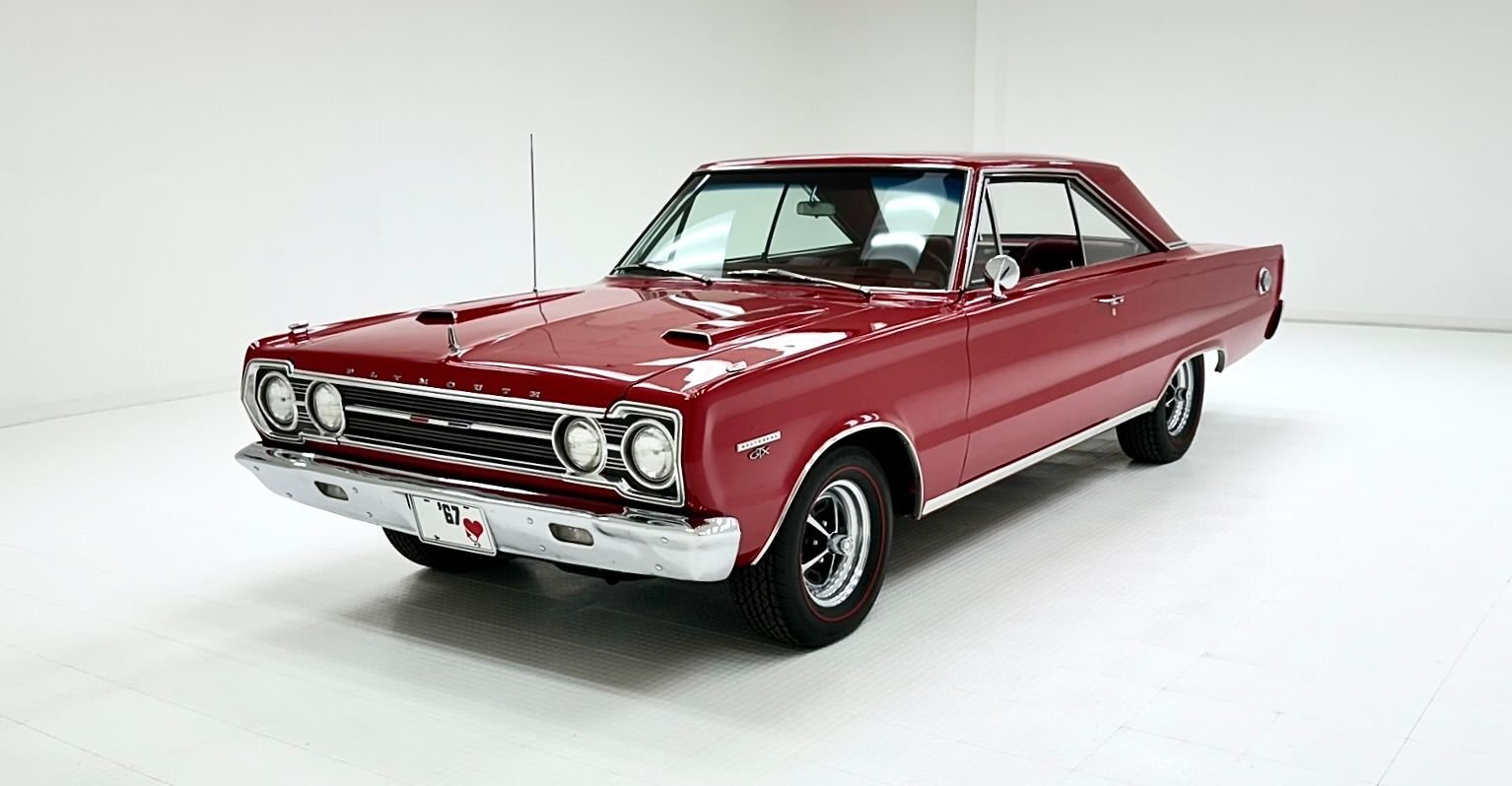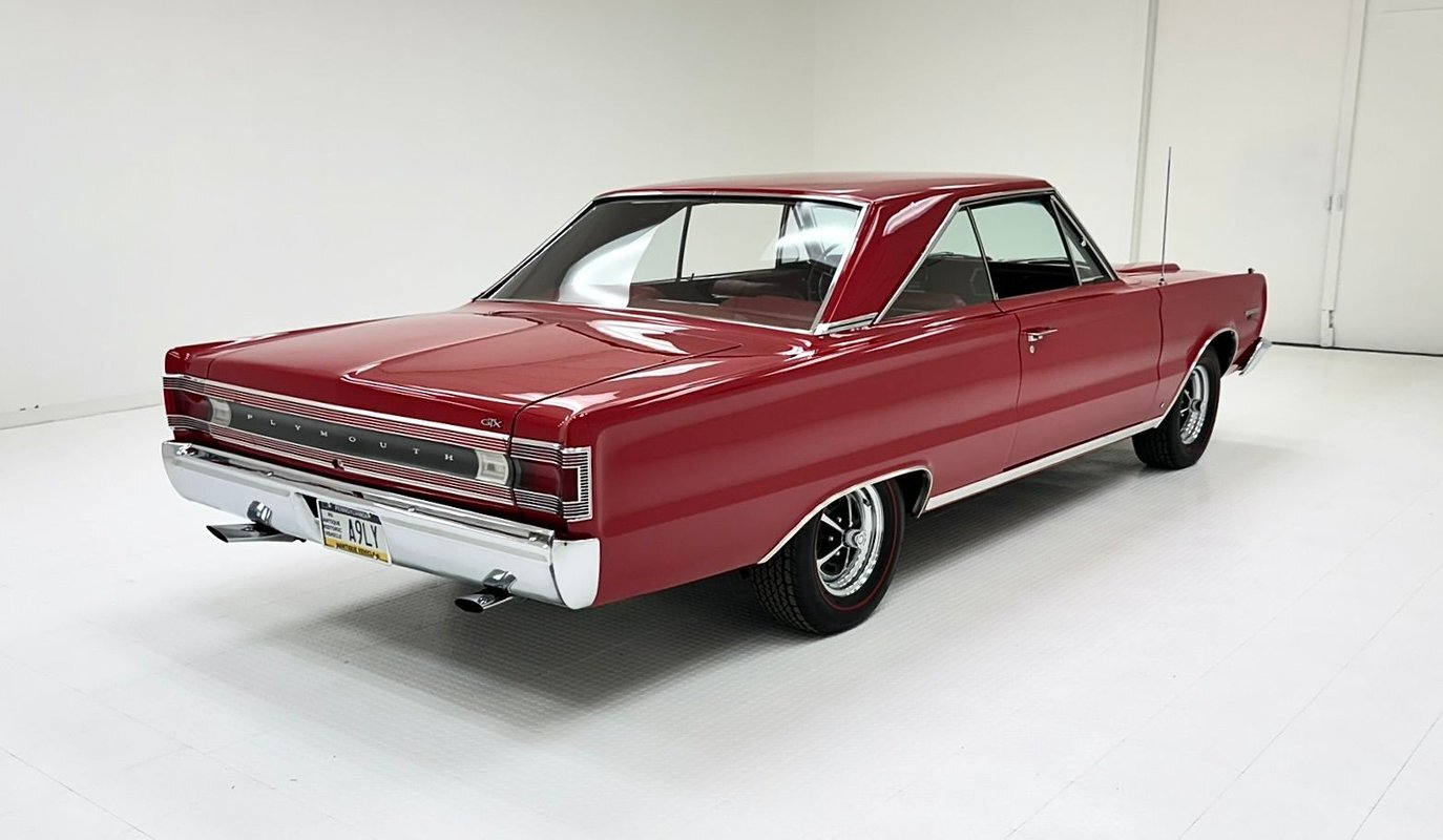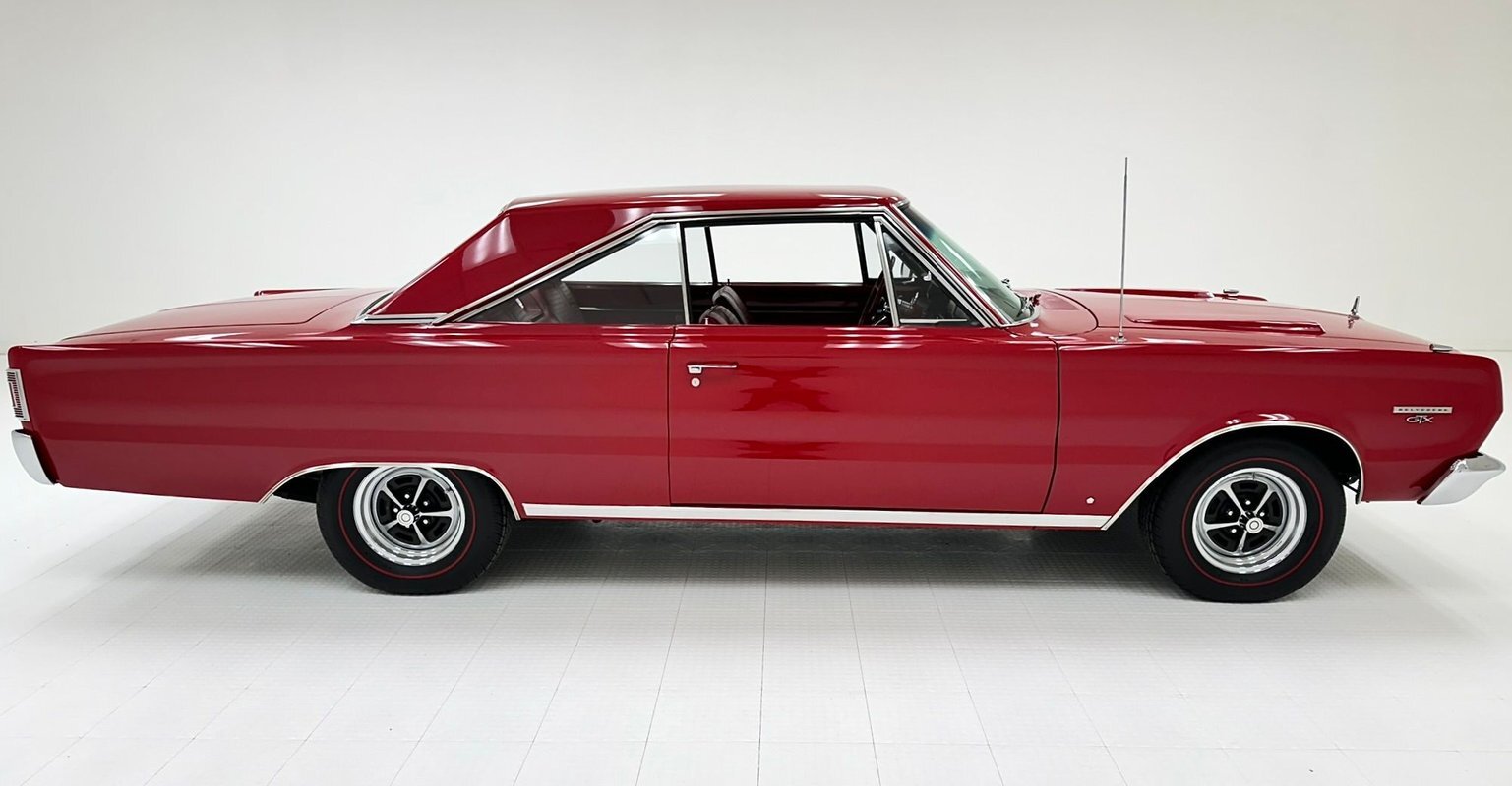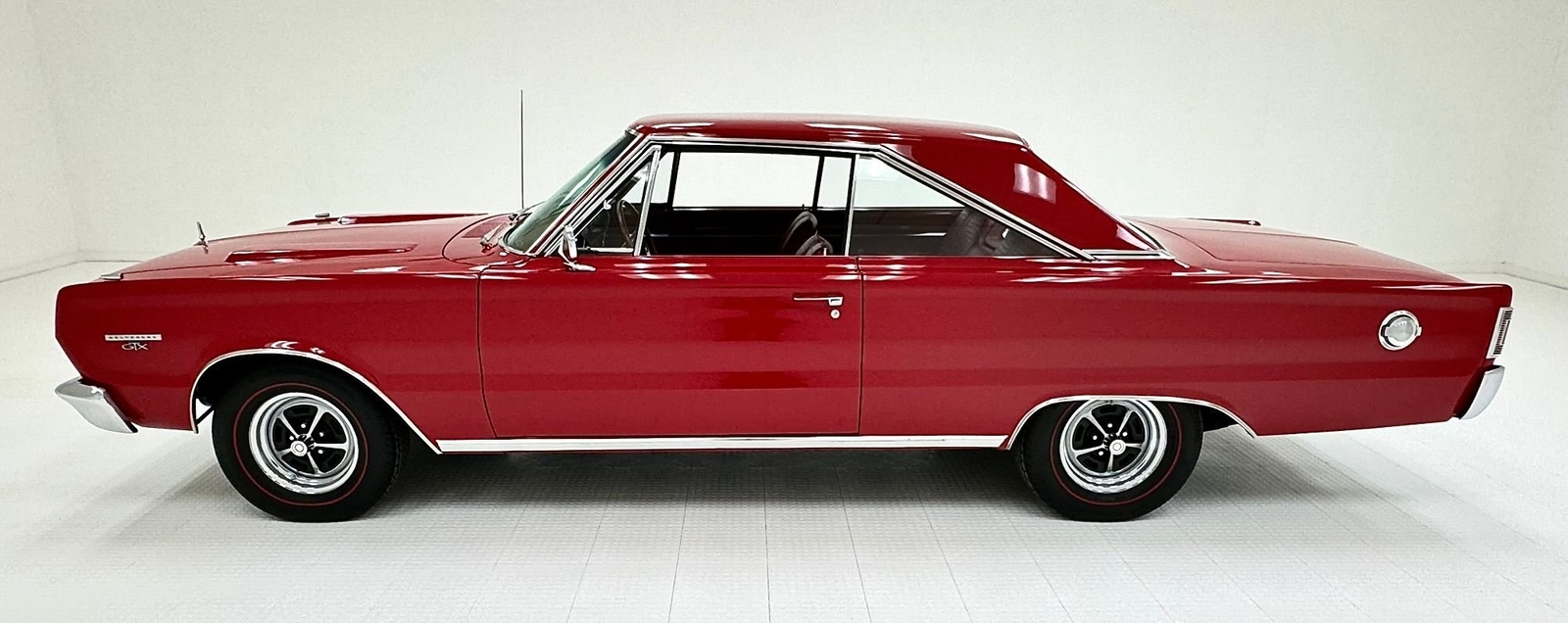 For consignment, one of 11,277 hard top GTX's produced in '67 with a 440, and one of only 2,486 with a four-speed manual, however the drivetrain is not the factory original to the car, it is a true 440ci 4-speed X. These cars were not tucked away as collectible classics of course, they were often used as daily drivers. With all that wear and tear, who knows how many are left? While ours has a period-correct engine replacement, it's still an amazing example of Mopar's foray into the muscle car realm which up until 2024, was still going strong.