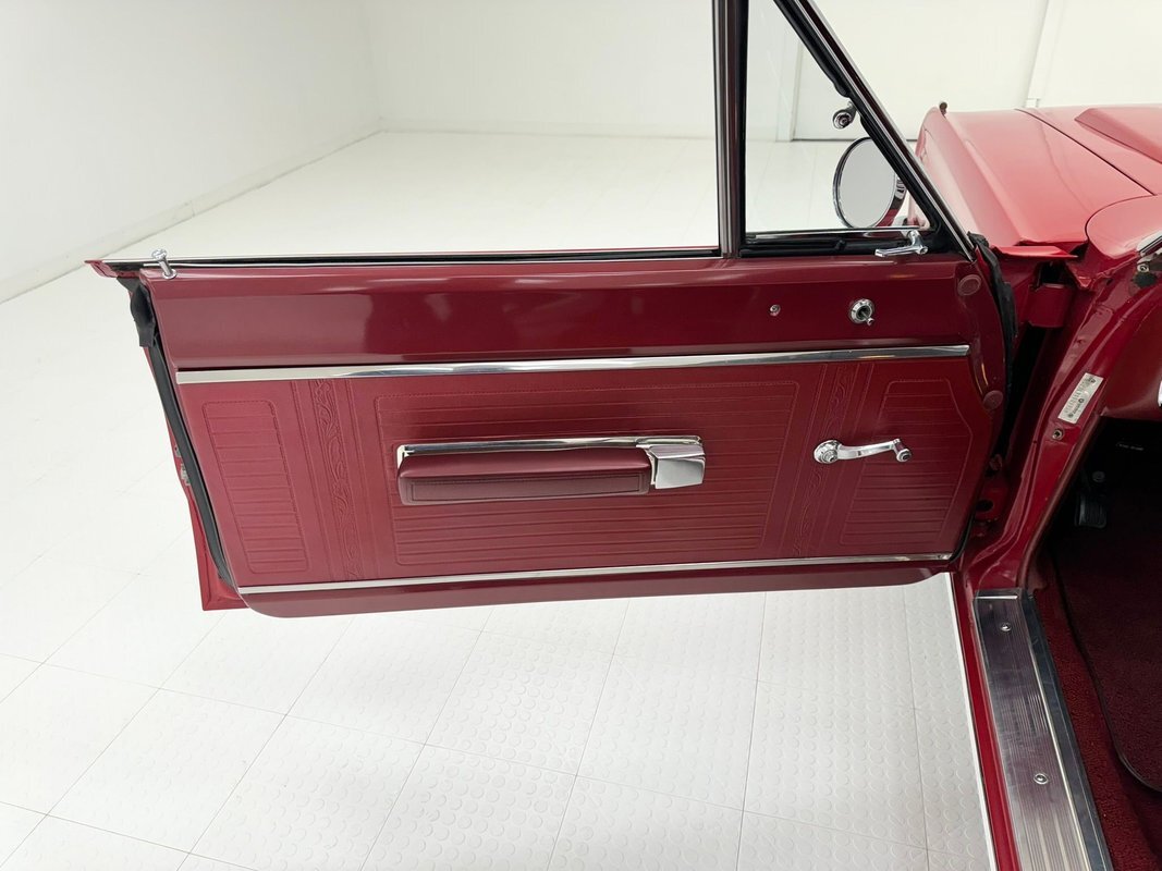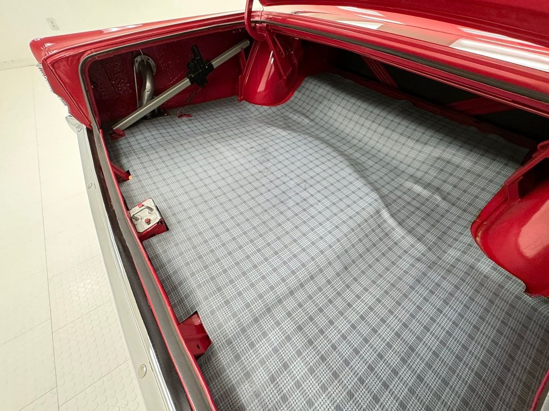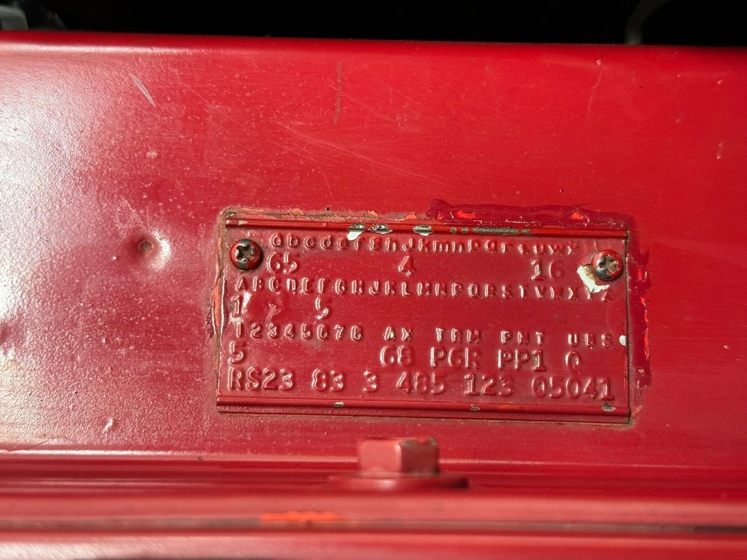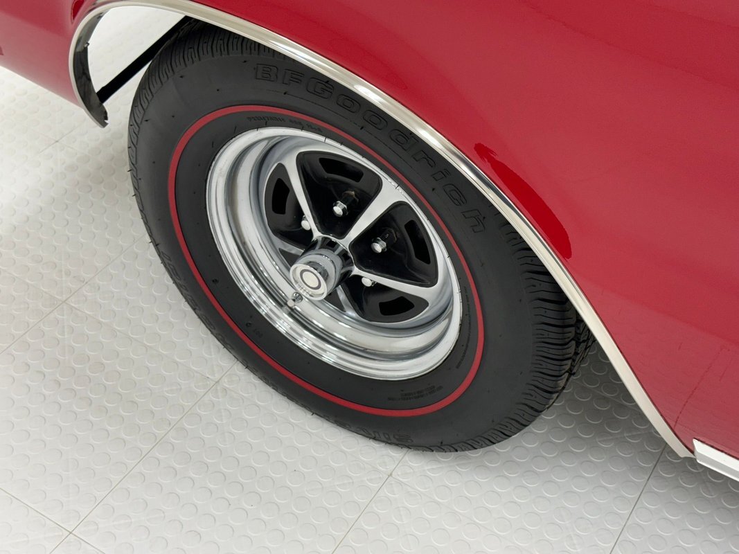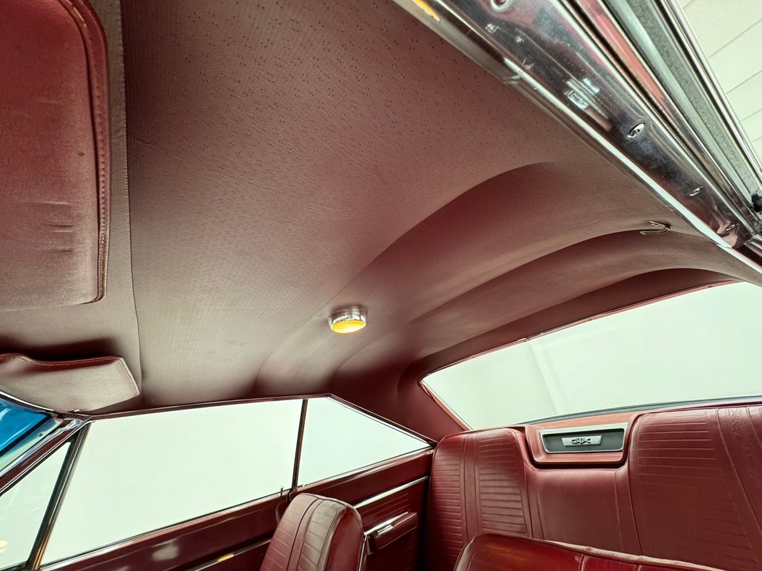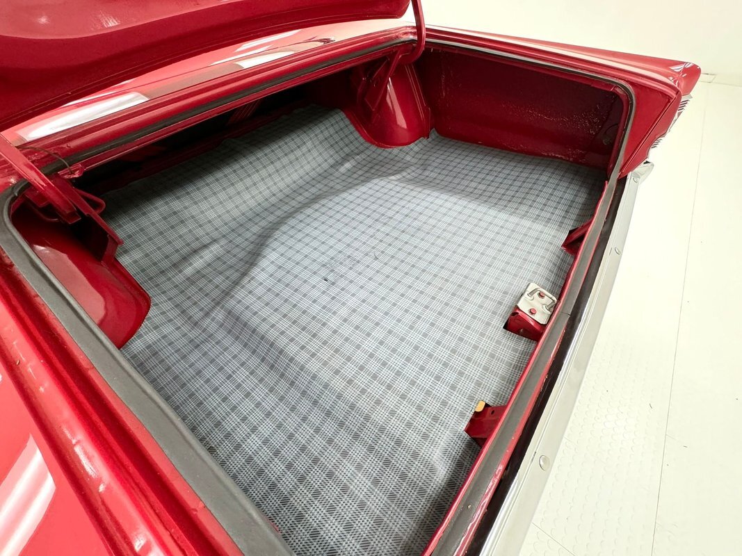 Minty mint door panels with painted top rails leading to red vinyl inserts stamped within patterns greet us with the opening of the doors. The armrest and door actuator are on the same plane while the window crank and mirror "pivot rod" are well within reach. The red premium bucket seats are here presenting very nicely with patterned vinyl. The rear bench has a fantastic center dip that reveals a GTX emblem, for those times when you look in your rear-view mirror at the competition and are affirmed in your choice of vehicle. The red plastic steering wheel has a horn ring with views of the column-mounted tachometer. The rest of the dash is standard and original, and one cannot help notice the 150 mph speedometer! An AM radio is embedded in the dash, this was long before head units came into play and the radio was just part of the car. The metal and plastic center console is an impeccable ode to the 60's and the only place showing any wear with a few scratches in the plating. The shifter is the joystick that makes this beast go! The low pile red carpet and stitched headliner, both perfect! The trunk is immaculate and has the plaid mat so common in this time period. The trunk lid retains original decals. Chef's kiss for that!