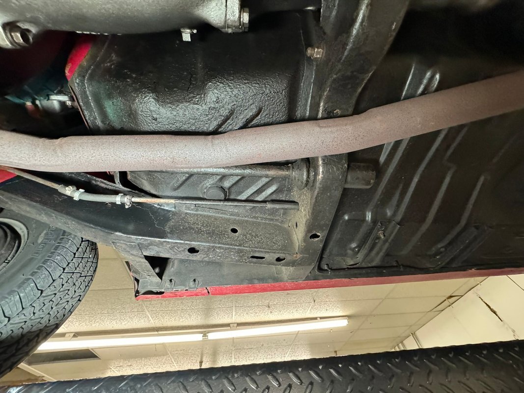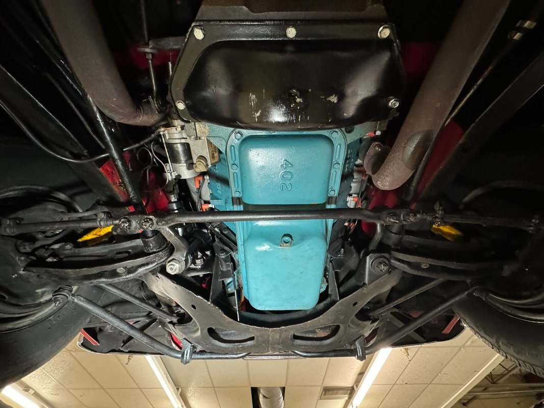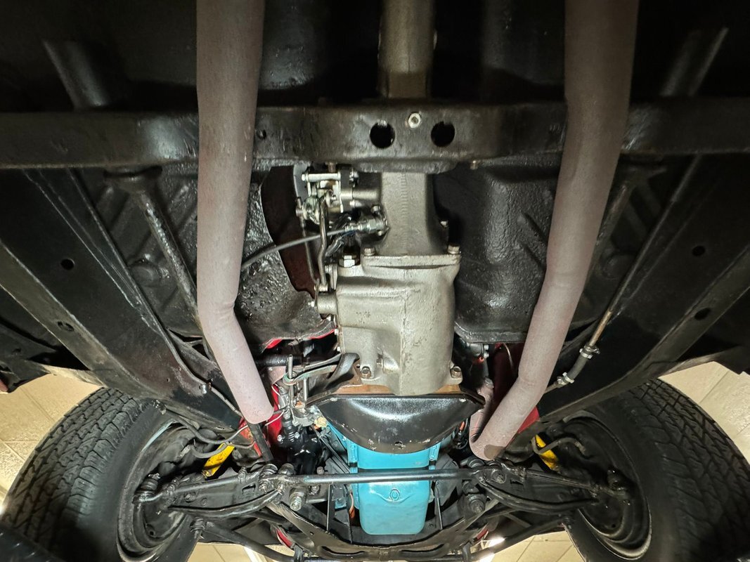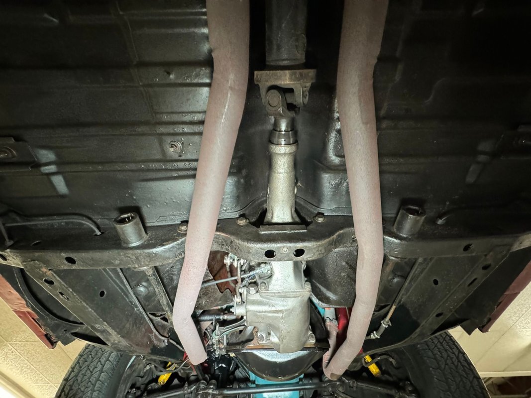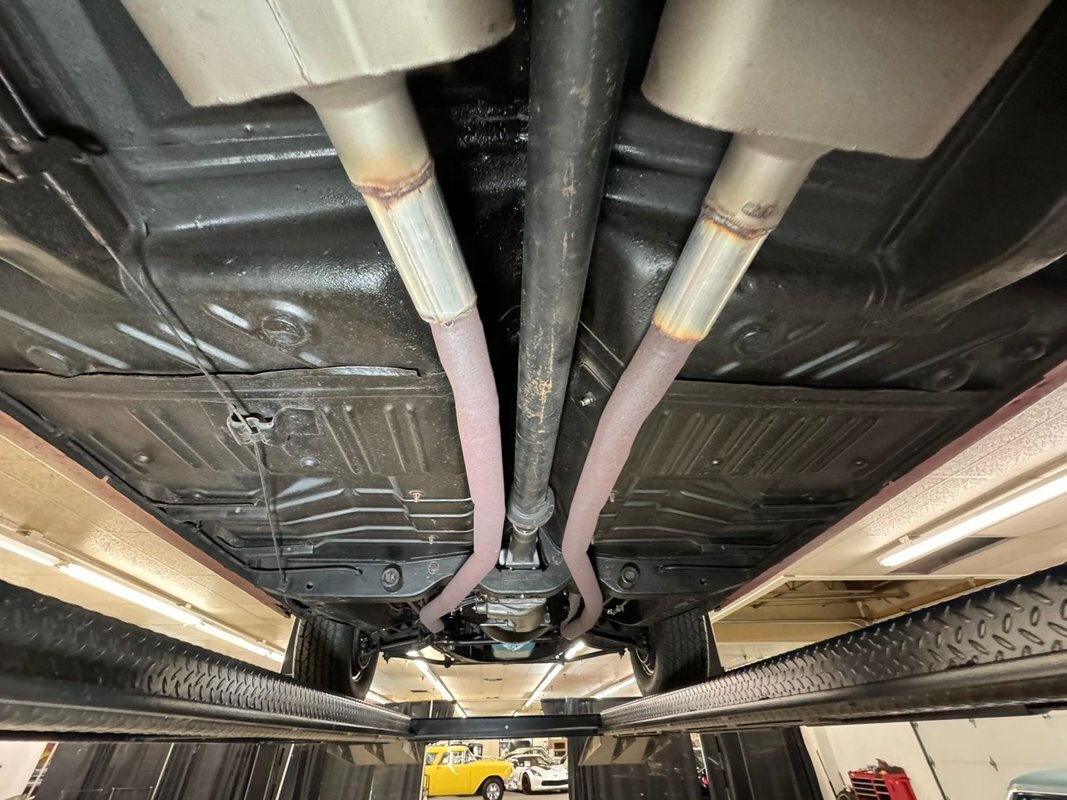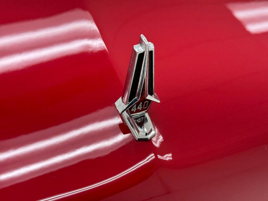 A period correct 440ci V8 is absolutely gleaming in the engine bay. It is topped with a single 4-barrel carburetor and power is transferred via a period correct New Process A833 4-speed manual transmission with a McLeod clutch heading back to a Dana 60 rear with 3.54 gearing and Suregrip. The engine bay illustrates the period's simplicity which made things easy to maintain and easy to clean. Unassisted drum brakes surely work overtime to reign in the 440 but are up to the task.