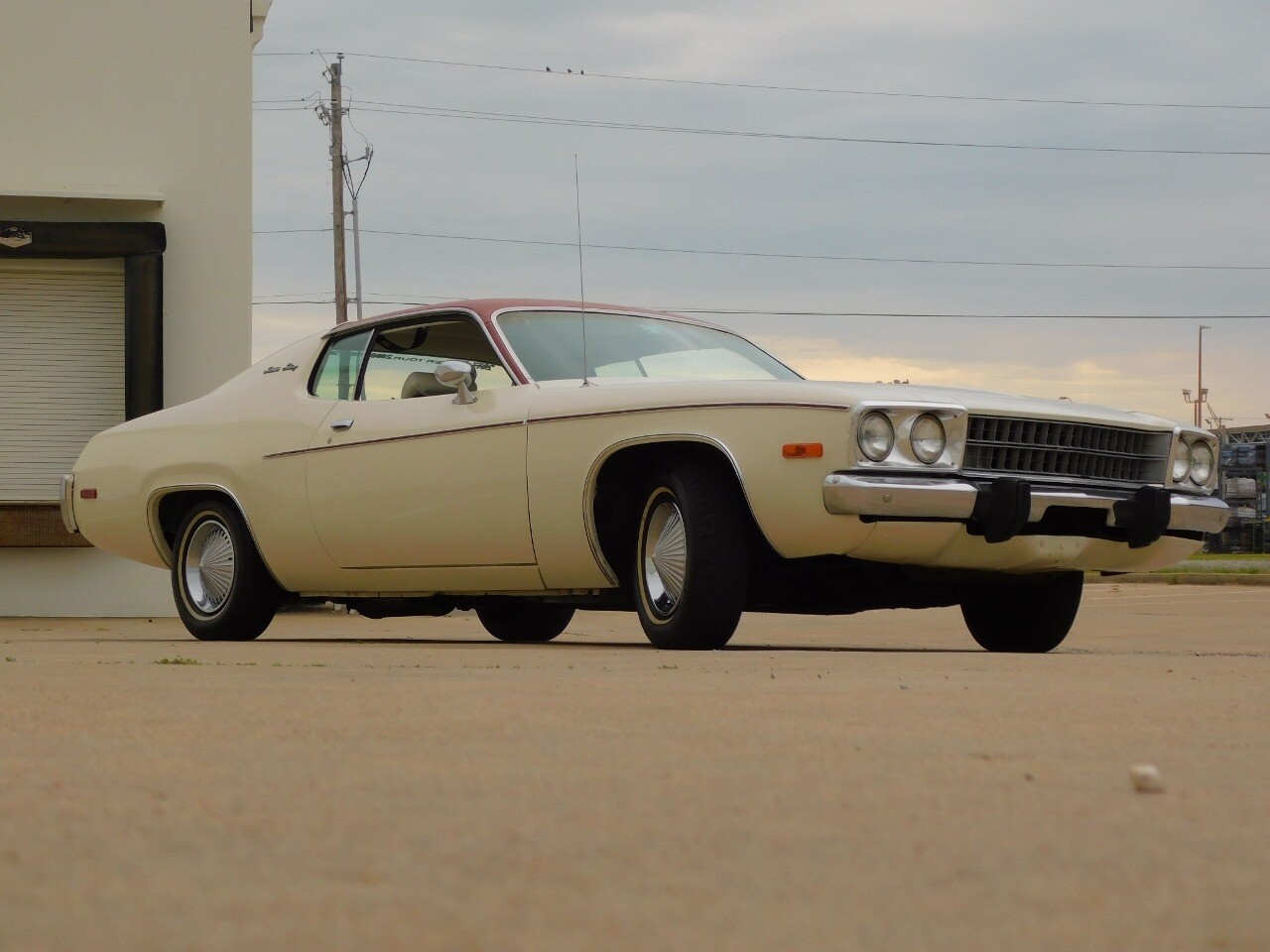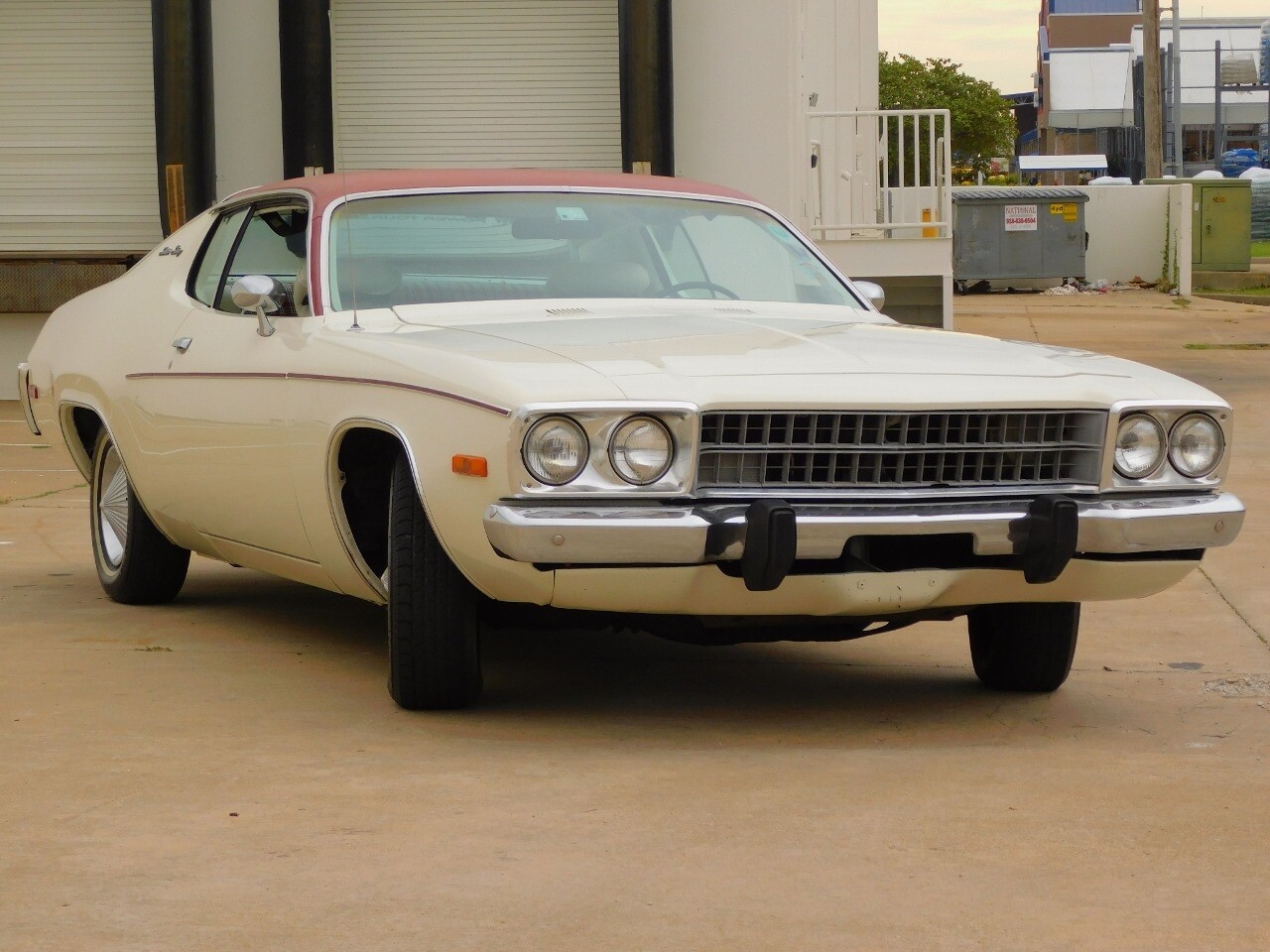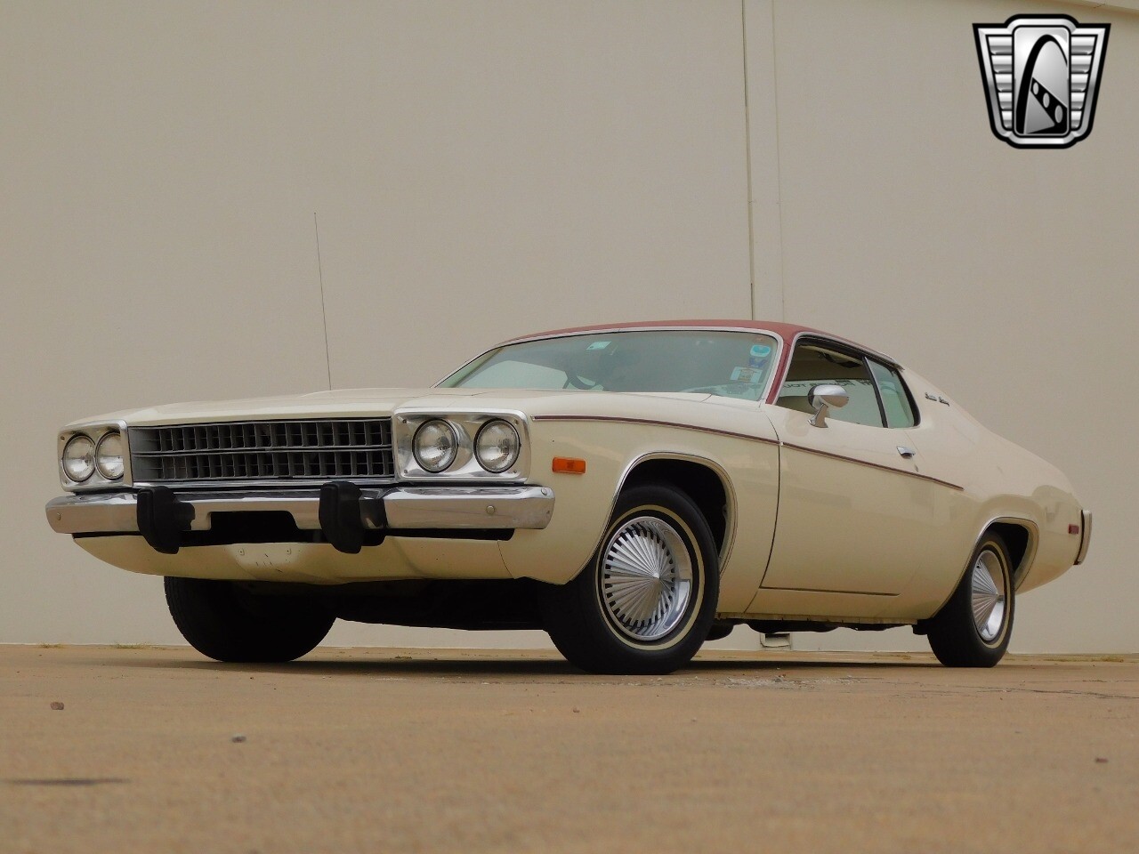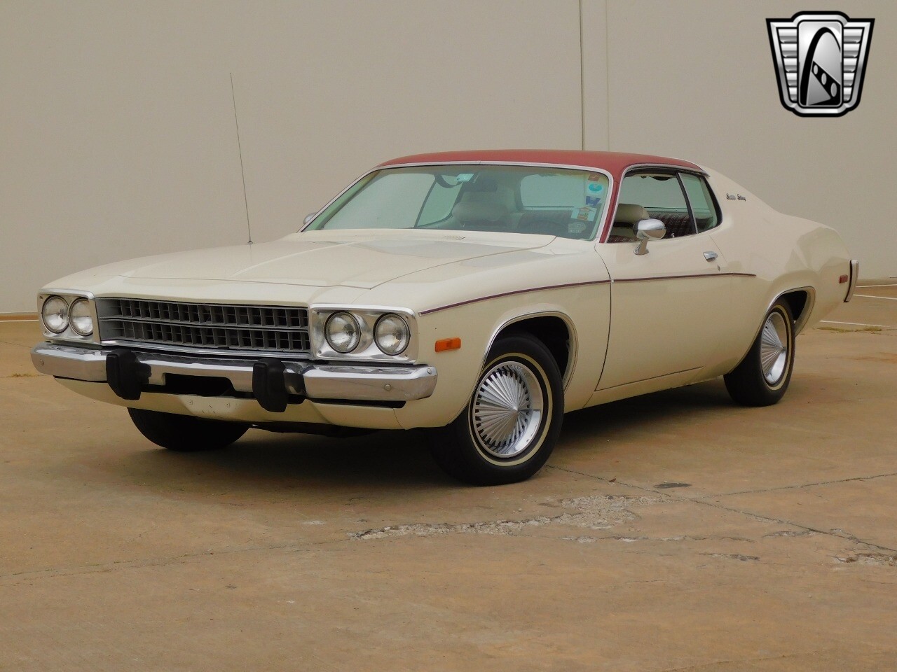 This vehicle is a standout with its nice white exterior paint, with maroon vinyl top and sweet original style hubcaps.