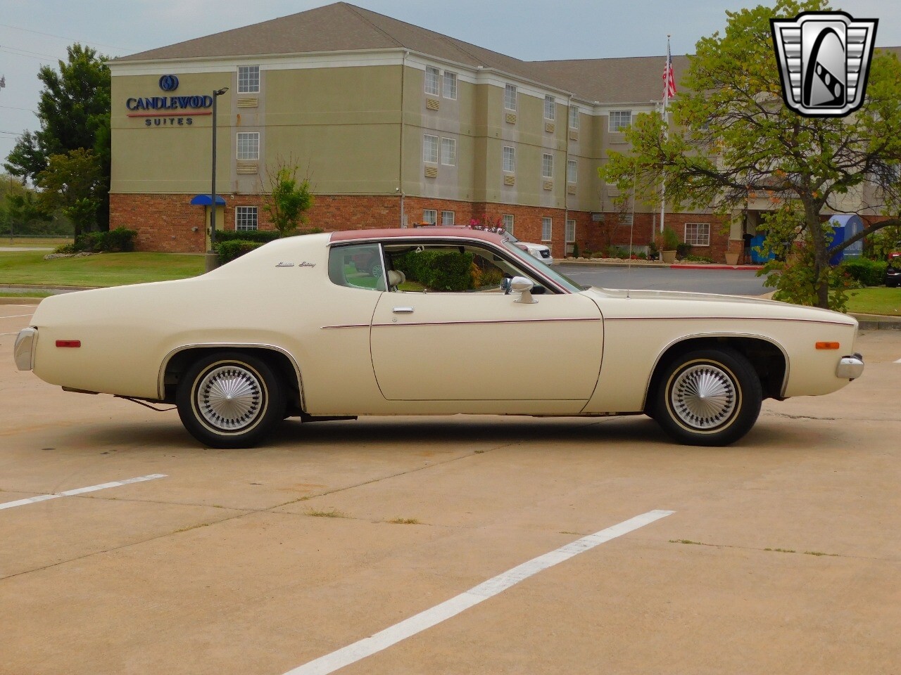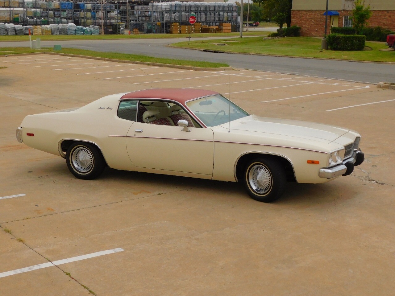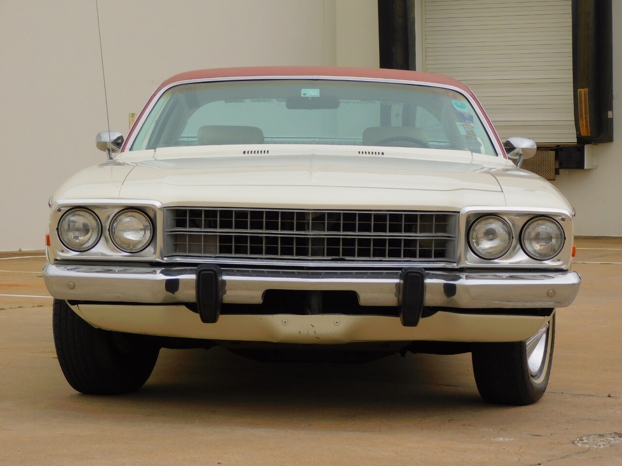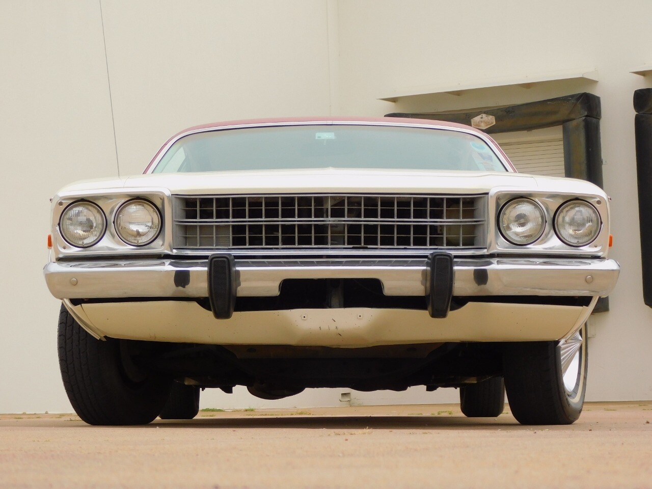 This vehicle is a standout with its nice white exterior paint, with maroon vinyl top and sweet original style hubcaps.
