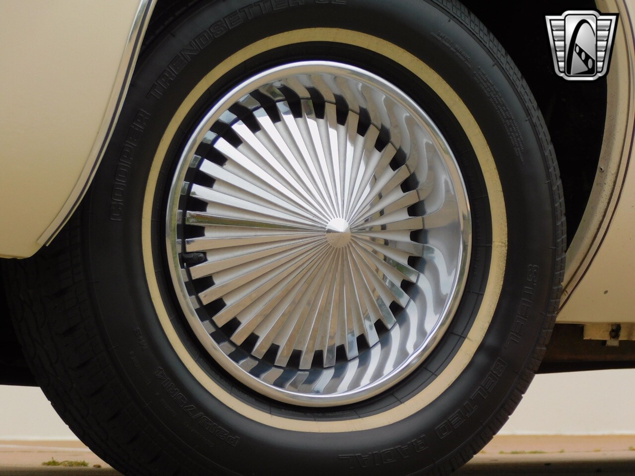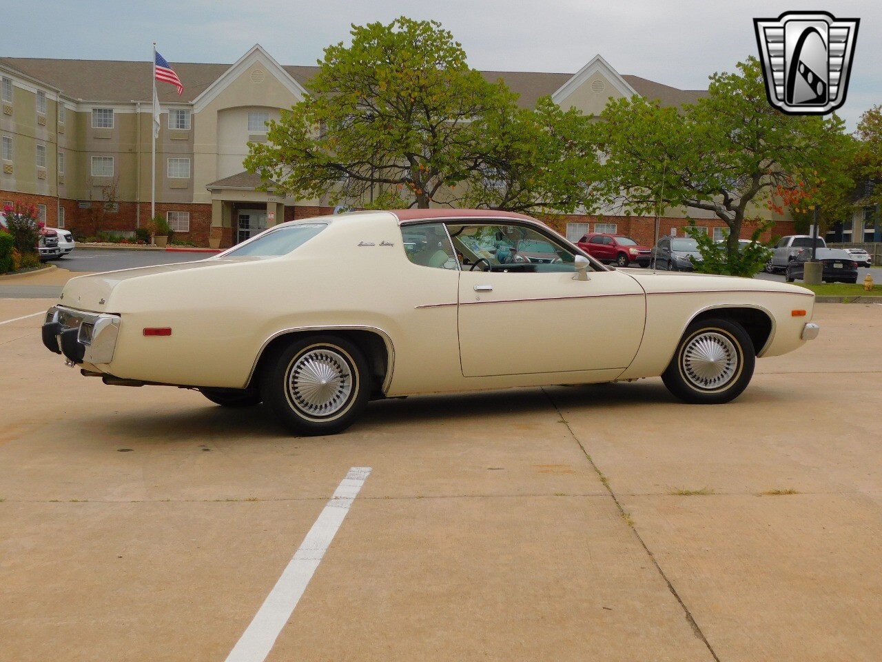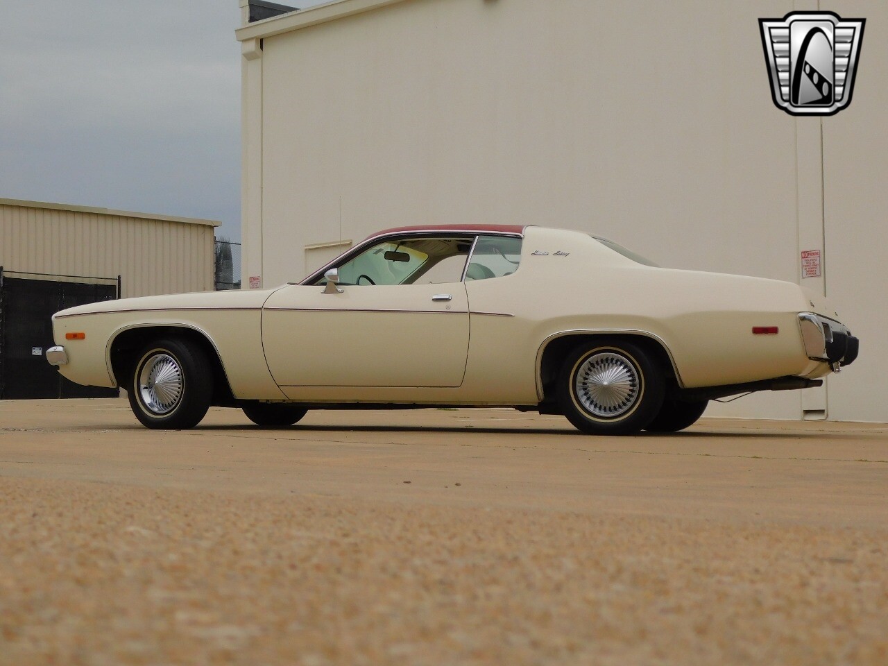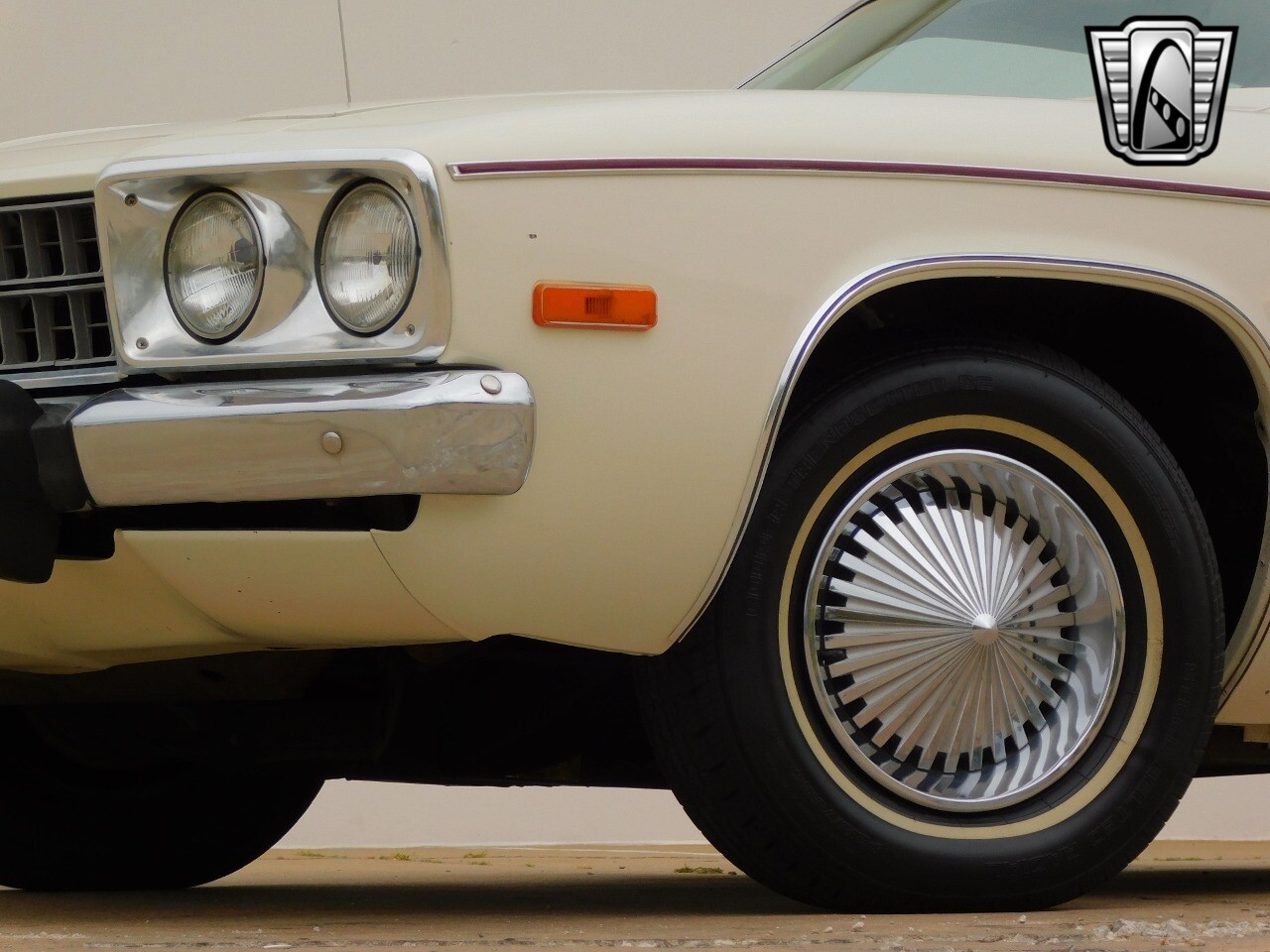 This vehicle is a standout with its nice white exterior paint, with maroon vinyl top and sweet original style hubcaps.