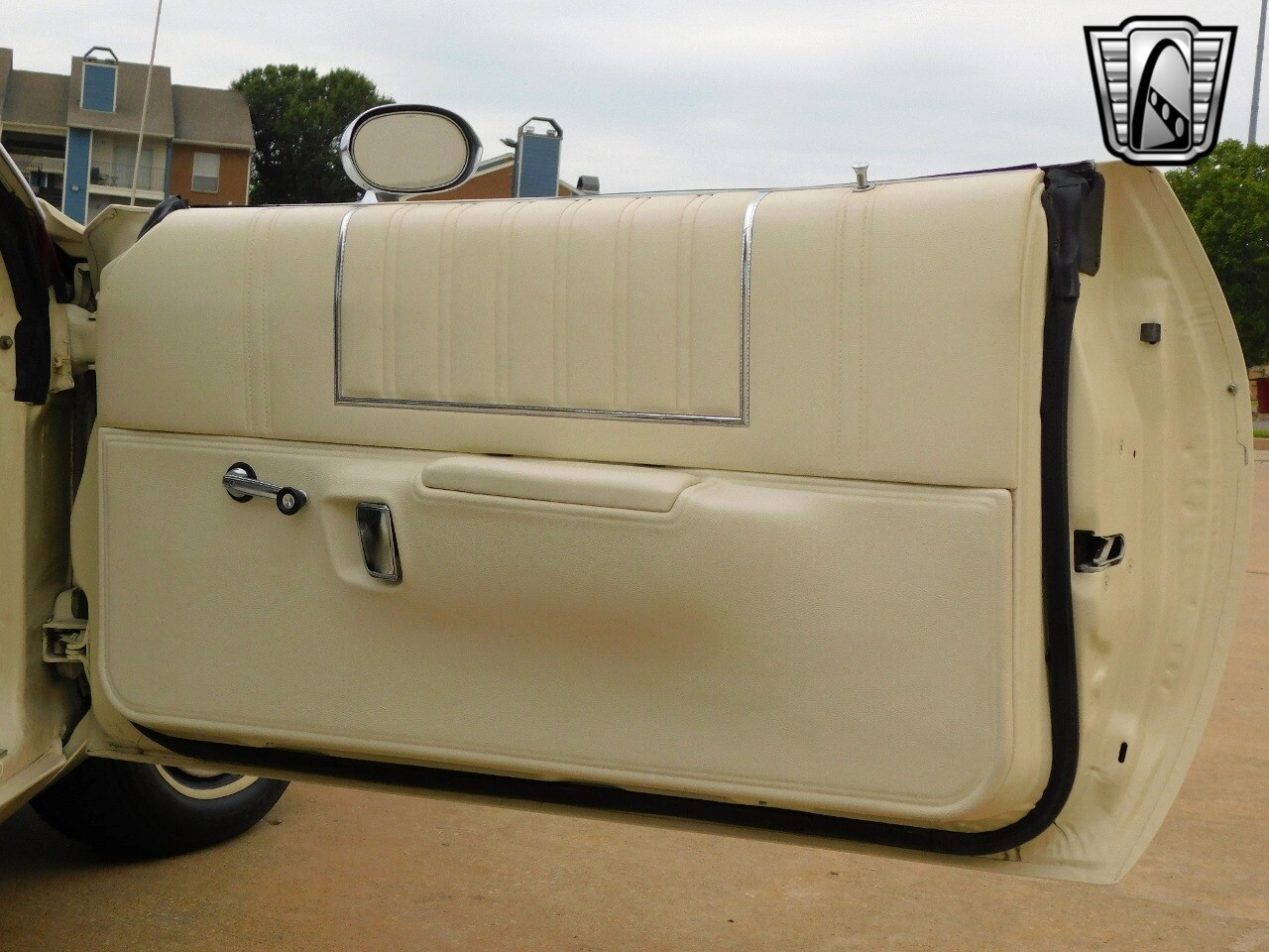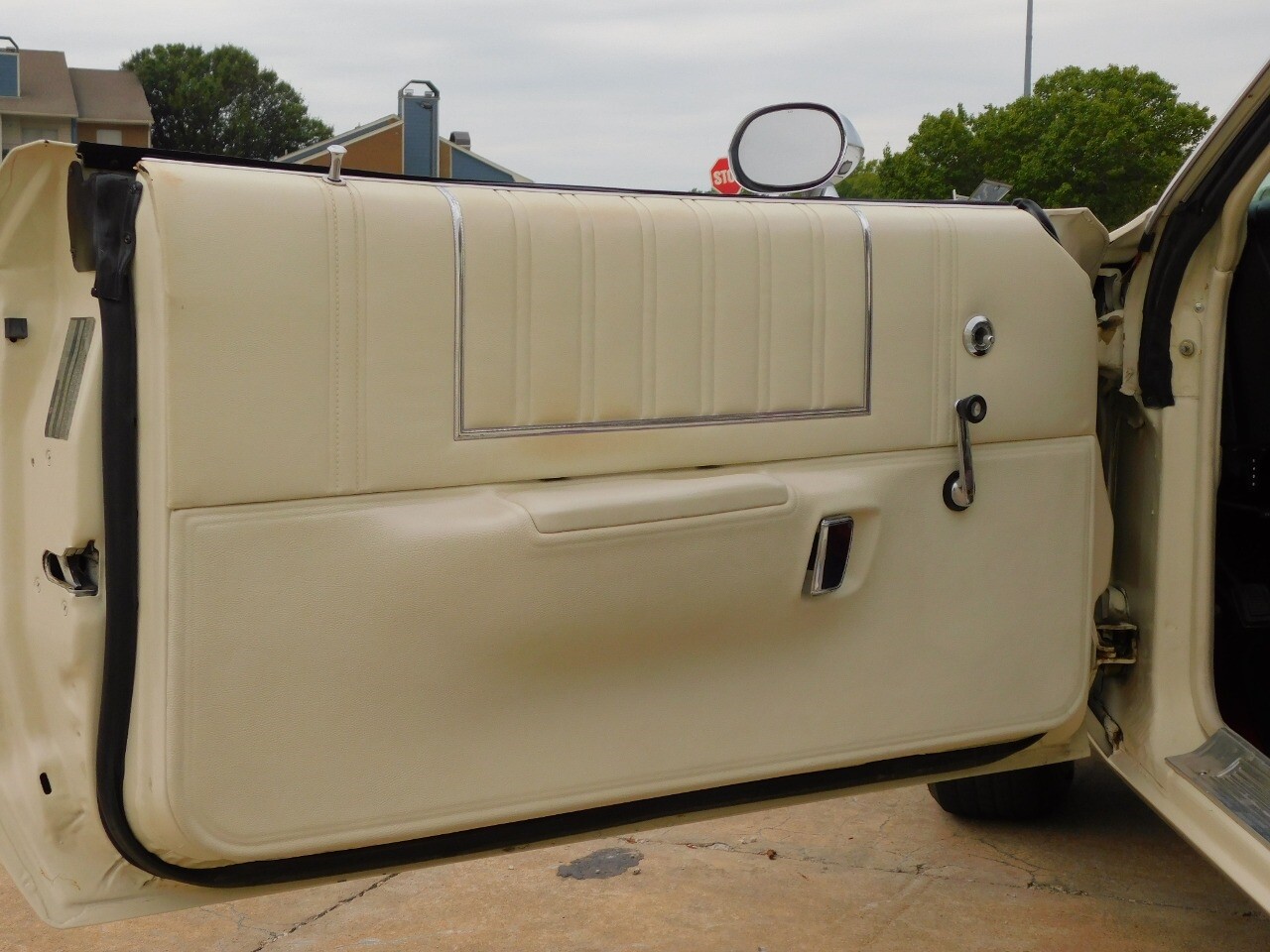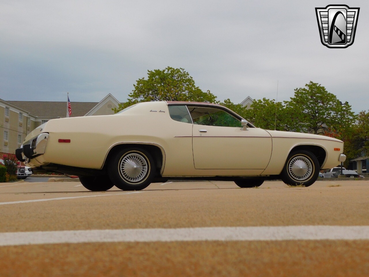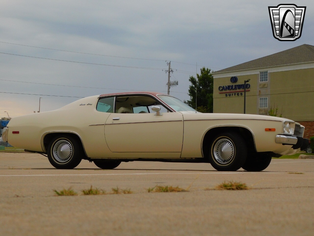 This vehicle is a standout with its nice white exterior paint, with maroon vinyl top and sweet original style hubcaps.