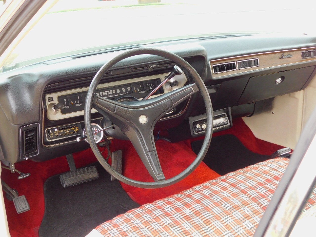The interior of this Plymouth Satellite is just as impressive as its exterior. It features a white/red tartan cloth interior that provides a comfortable and stylish ride. The seats are designed to offer maximum comfort, making it an ideal choice for long drives.