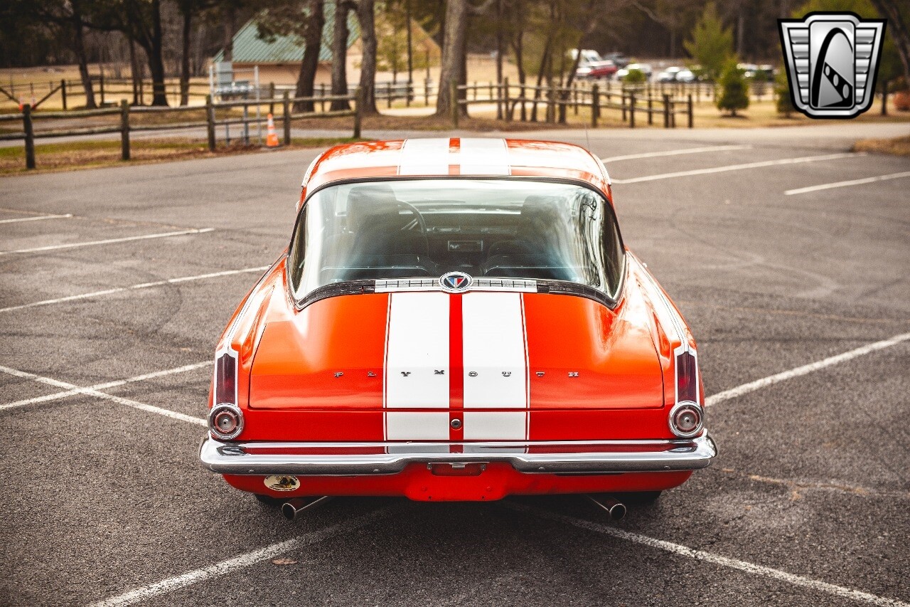 Step into the world of classic American muscle with this 1965 Plymouth Barracuda. This iconic vehicle is a standout with its vibrant orange exterior, a color that captures the spirit of the era. The black cloth interior provides a comfortable and stylish contrast, making every ride a memorable experience.