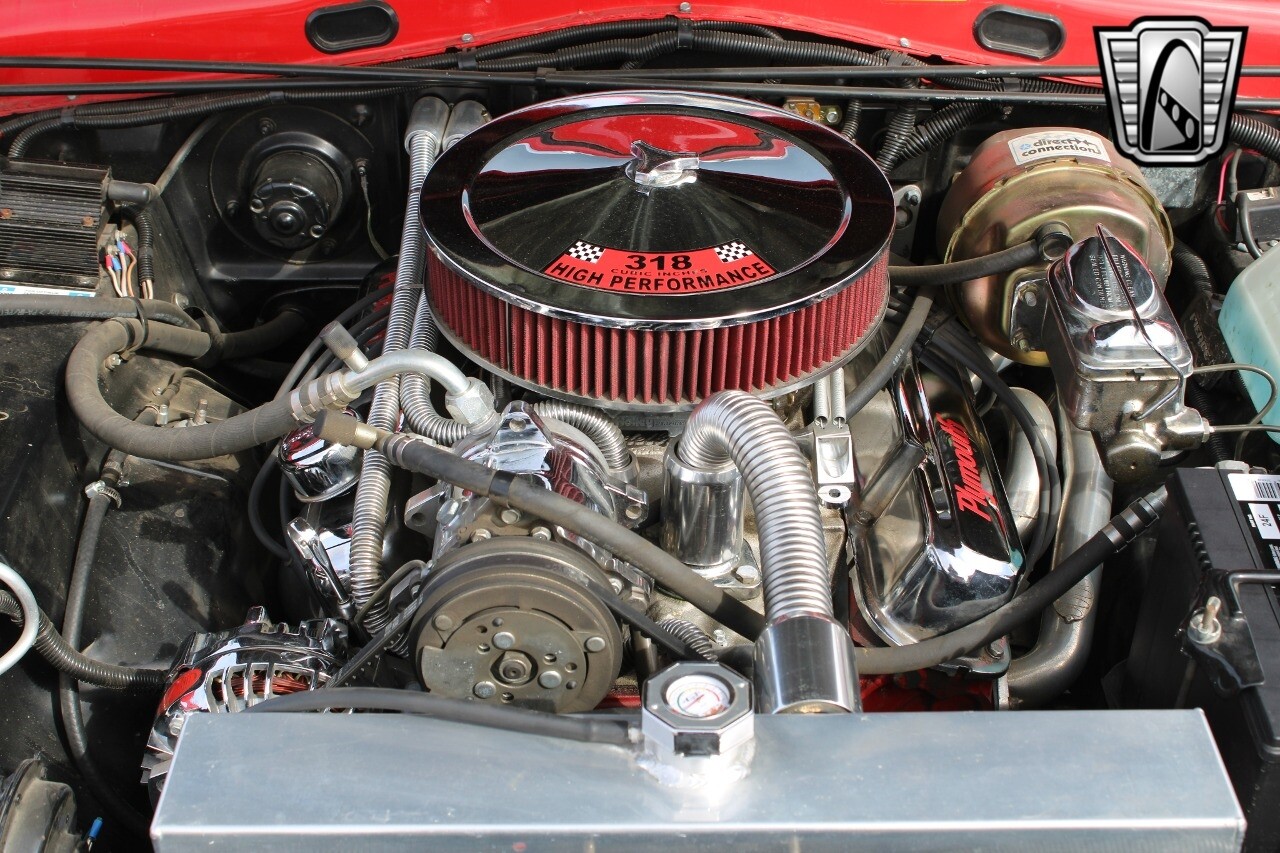 Under the hood, you'll find a powerful 318 CID V8 engine, paired with a 4-speed manual transmission. This combination ensures a driving experience that is both thrilling and engaging, offering a blend of power and control.
