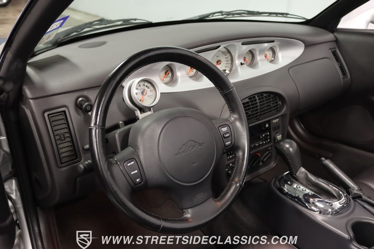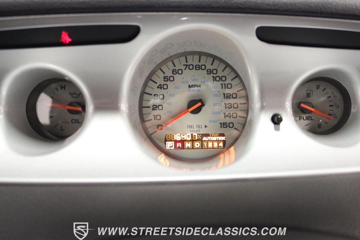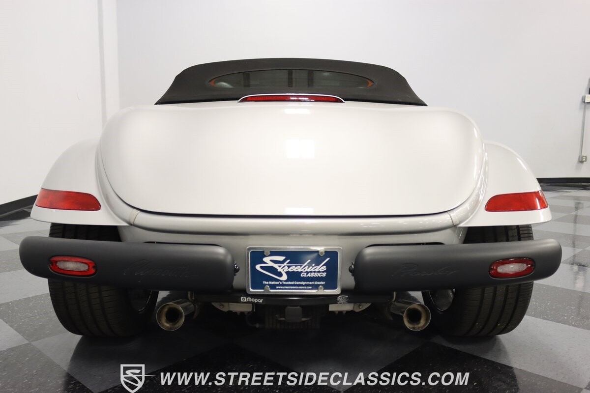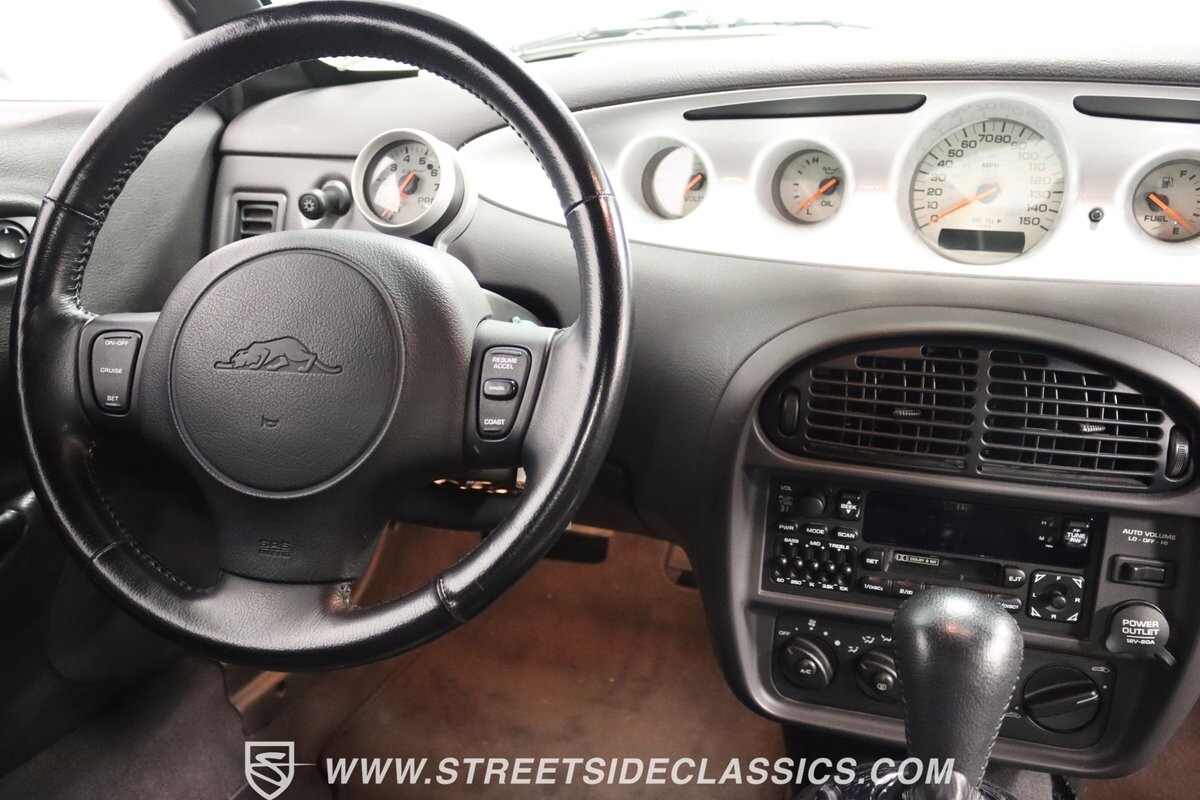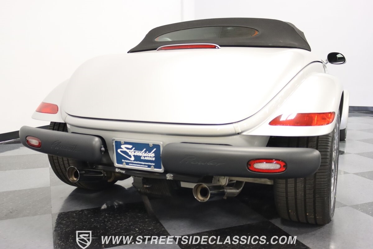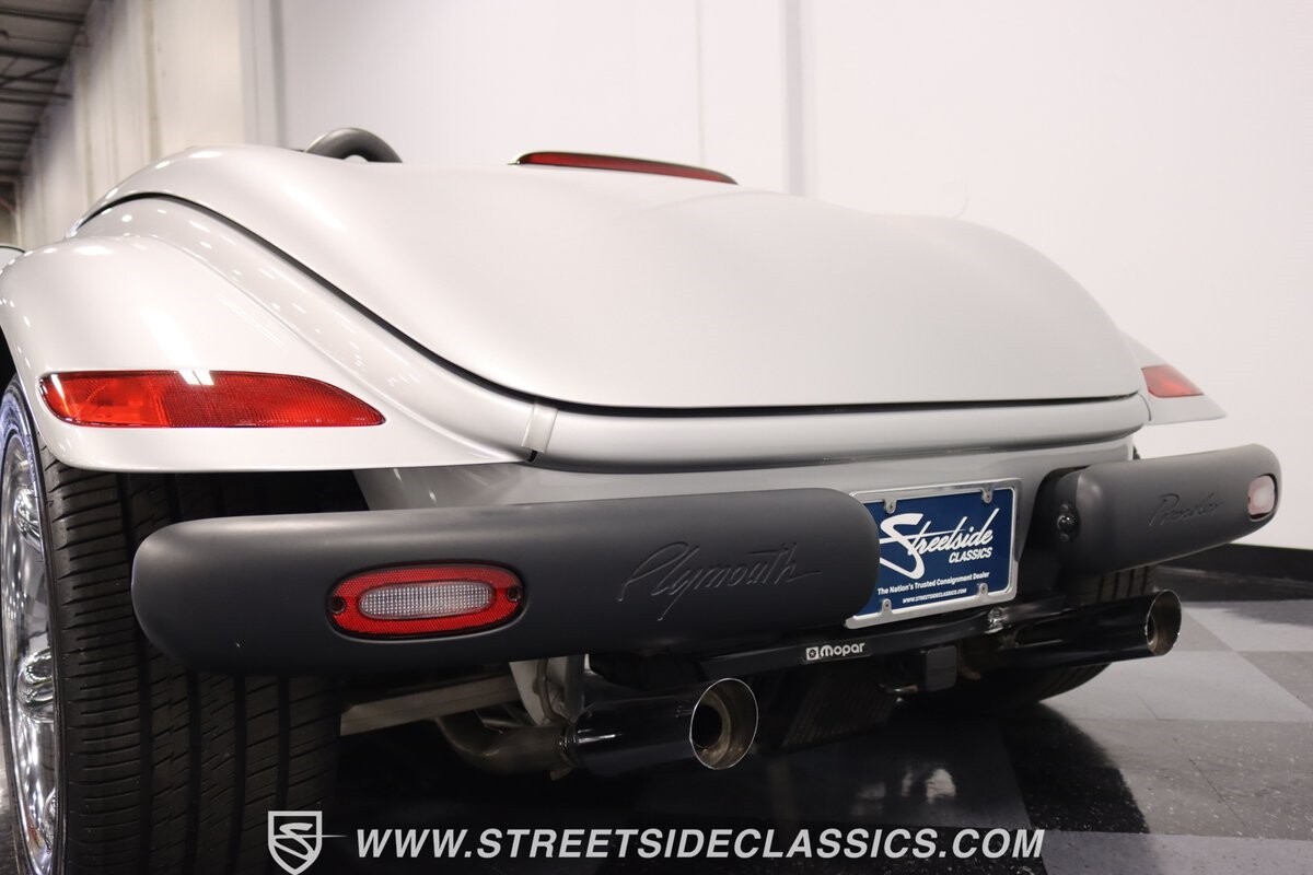 The black roof looks terrific with its low-slung style against the bright silver paint, but it looks even better when lowered. There is an almost matte gray appearance from the supple leather upholstery. It offers an air of distinction while still being complementary to the sleek Silver exterior paint - the kind of color scheme you would expect from a European sports car. While the Prowler is inspired by the best in classic hot rods, this one certainly has a more international flair. Low mileage means a good-looking car and this loaded interior looks inviting. The welcome features like a powerful AM/FM/cassette factory stereo w/CD changer, power windows, power locks, keyless entry, cruise control, dual airbags, ABS and cold-blowing air conditioning. The sleek black instrument panel allows the white-faced gauges to stand out even bolder.