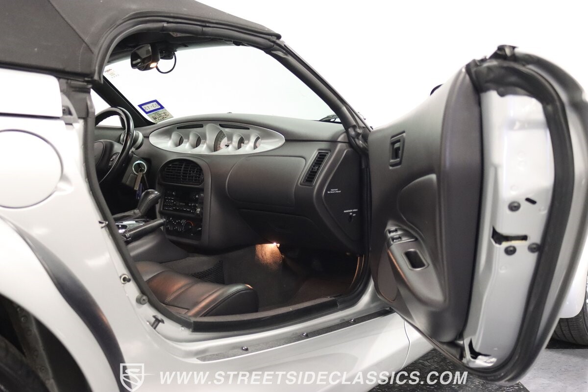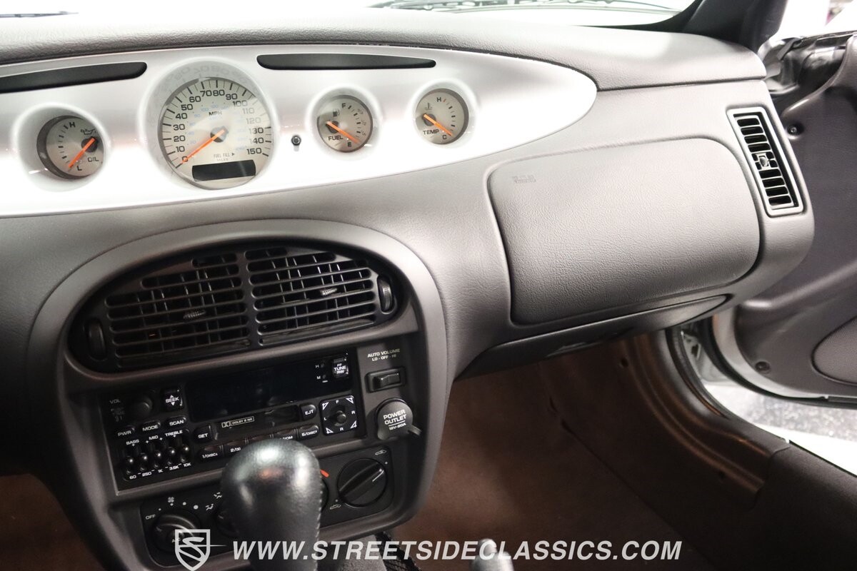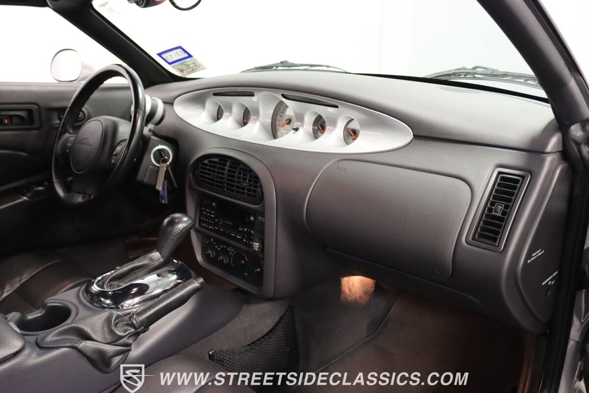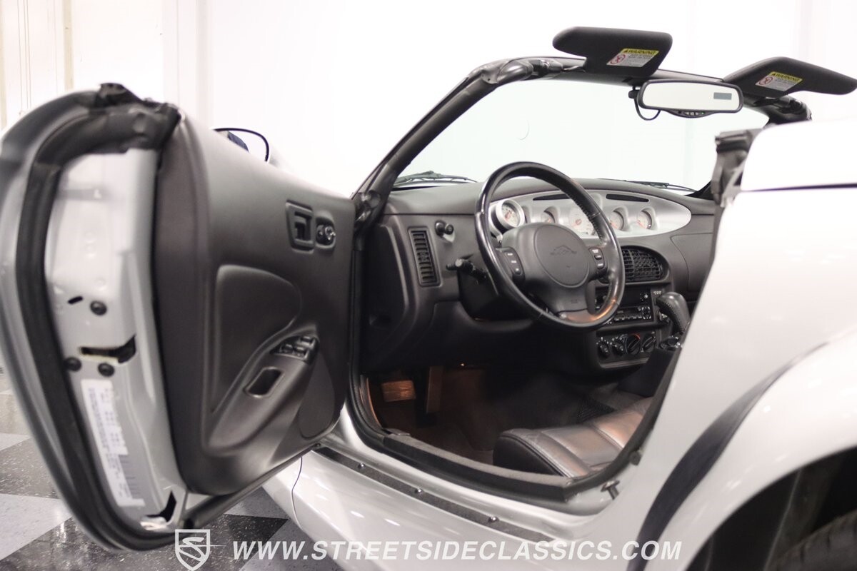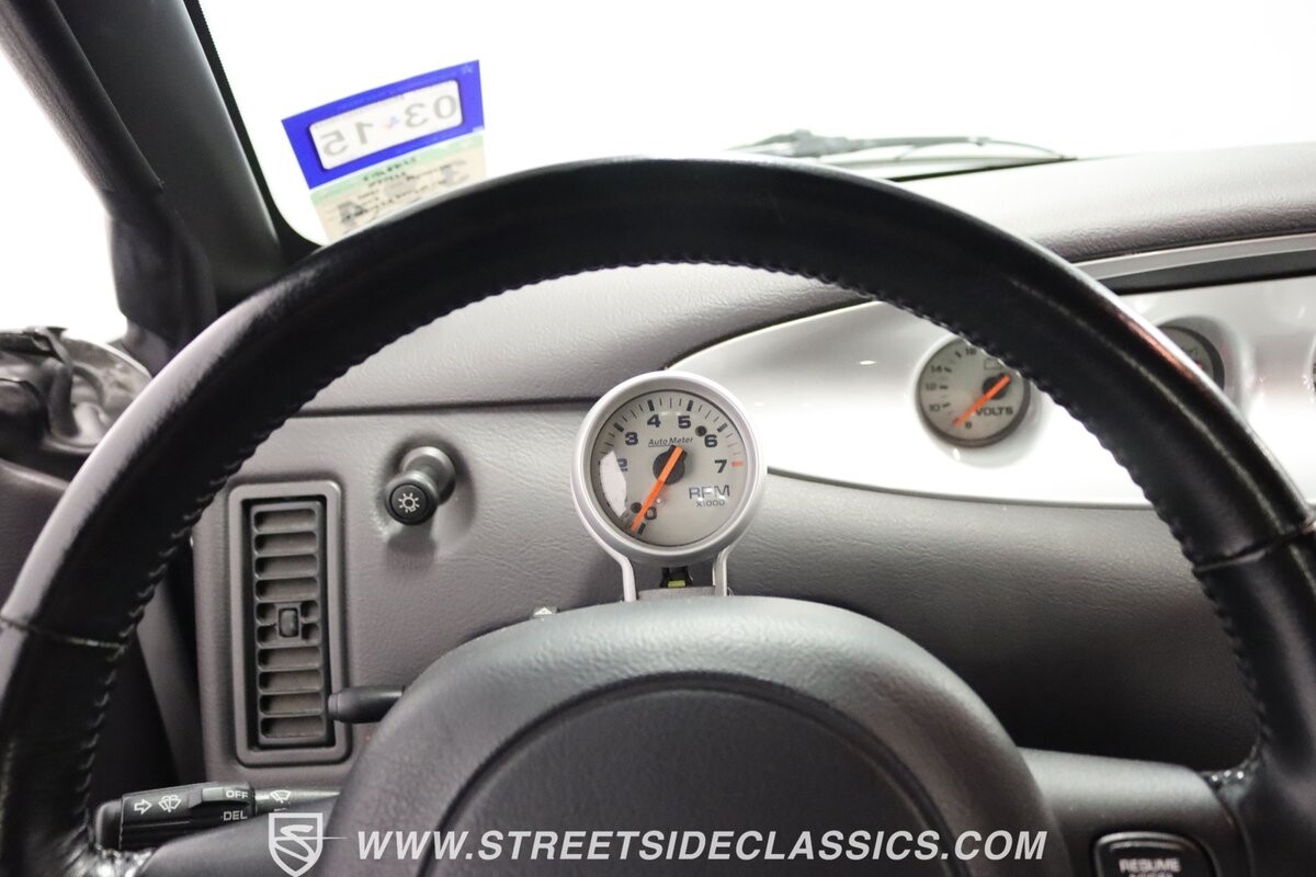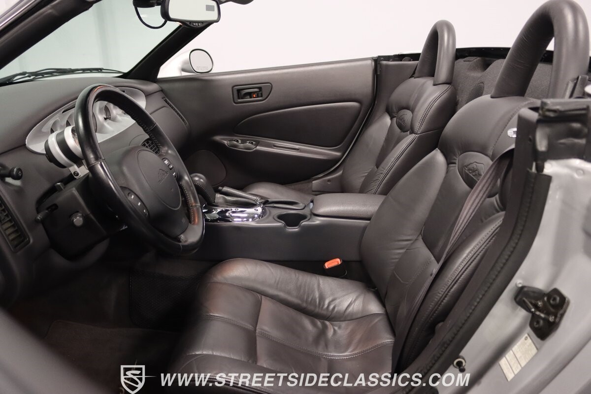 The black roof looks terrific with its low-slung style against the bright silver paint, but it looks even better when lowered. There is an almost matte gray appearance from the supple leather upholstery. It offers an air of distinction while still being complementary to the sleek Silver exterior paint - the kind of color scheme you would expect from a European sports car. While the Prowler is inspired by the best in classic hot rods, this one certainly has a more international flair. Low mileage means a good-looking car and this loaded interior looks inviting. The welcome features like a powerful AM/FM/cassette factory stereo w/CD changer, power windows, power locks, keyless entry, cruise control, dual airbags, ABS and cold-blowing air conditioning. The sleek black instrument panel allows the white-faced gauges to stand out even bolder.