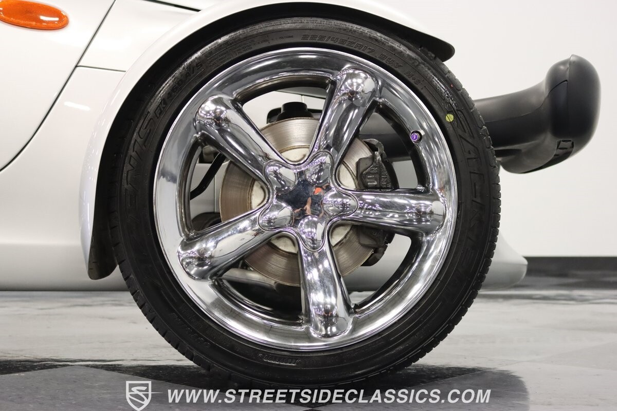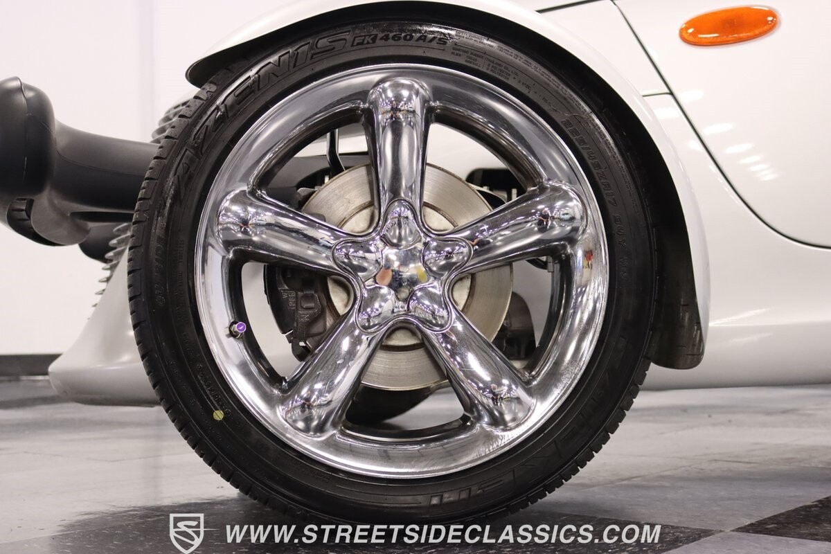 This 2000 Plymouth Prowler has averaged less than 1k miles annually, so you know it only came out of the garage for special occasions. That is why the finish and body show far less use than other cars approaching their quarter-century anniversary. The factory silver paint allows the light to roll evenly across all the curves - and this car has many of them! Chrysler wanted Plymouth to have a halo car, and they spent big on expensive panels and a hand-finished production. This car was the era of Daimler-Chrysler, and how this Plymouth was made seems to have more in common with a Mercedes-Benz in build quality. Everything from the side mirrors to the cycle fenders have a retro style, finished off by the high polish on the alloy wheels and the factory's staggered 17/20-inches front/rear stance is pure hot rod cool.