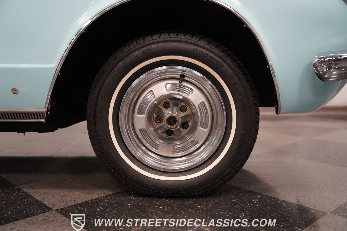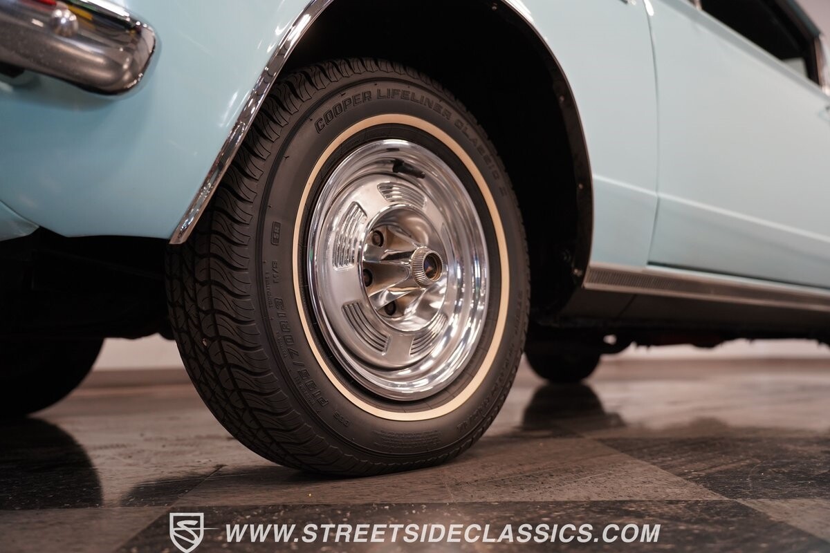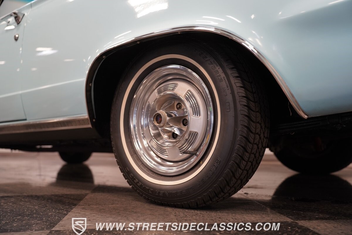 This 1965 Plymouth Barracuda stands as a pivotal piece of muscle car history, with its sporty V8 and iconic fastback design, complete with the large wraparound rear glass. Cloaked in an eye-catching shade of blue, this hardtop model sports a well-maintained repaint that enhances its visual appeal. The vehicle rides on 13-inch wheels encased in P195/70 R 13 tires, offering a poised and compelling presence. Chrome accents and factory hubcaps add a touch of sophistication that complements the exterior's vibrant palette.