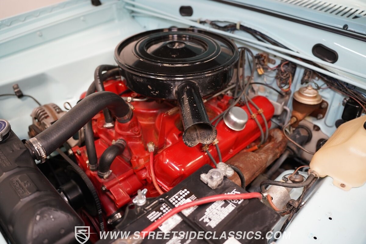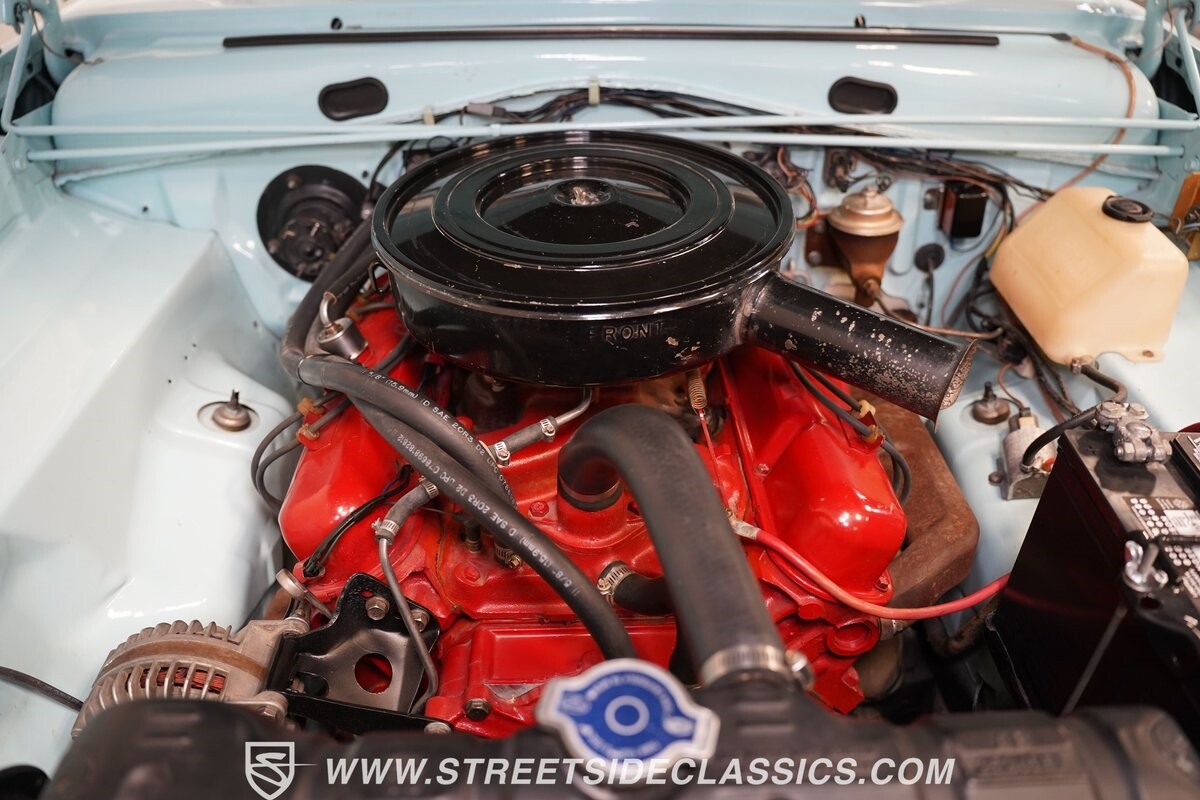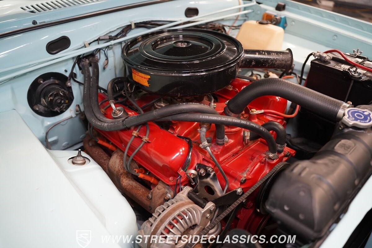 The engine bay houses a 273 V8 engine connected to a 3-speed automatic transmission, a combination that respects the vehicle's historical integrity while providing ample power. The basic, yet effective carburetor underscores the car's period-correct engineering. With an independent front suspension and a solid rear axle, along with front and rear drum brakes, the Barracuda handles with the unassisted authenticity that enthusiasts admire.