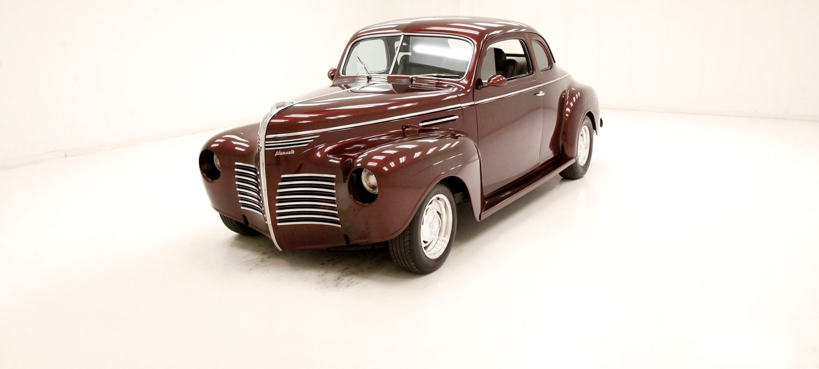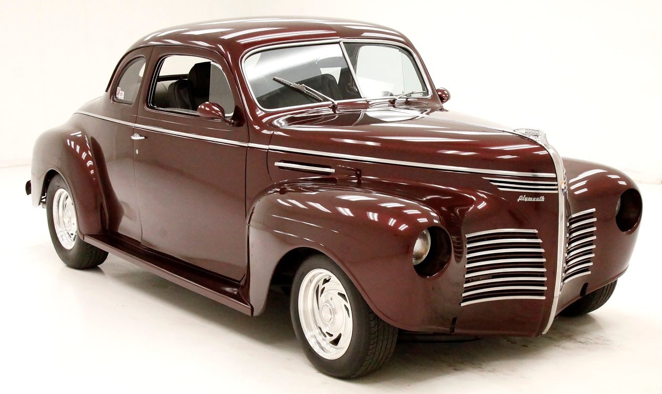 For consignment, a beautiful buttoned up and customized Plymouth P10 Club Coupe from 1940. Owned by the current consignor since the 1980's with all of the modifications having been performed by the owner, making for a truly custom hot rod. It has a wonderfully powerful 354ci Hemi NOS crate motor, the original roofline, a customized front end, and a newer more modern interior. The perfect car to cruise with a 2.73 rear axle which is smooth as silk on the highway at cruising speed and always eager to make little noise with a good of the throttle. Pull the trigger before someone else takes a shot at it!