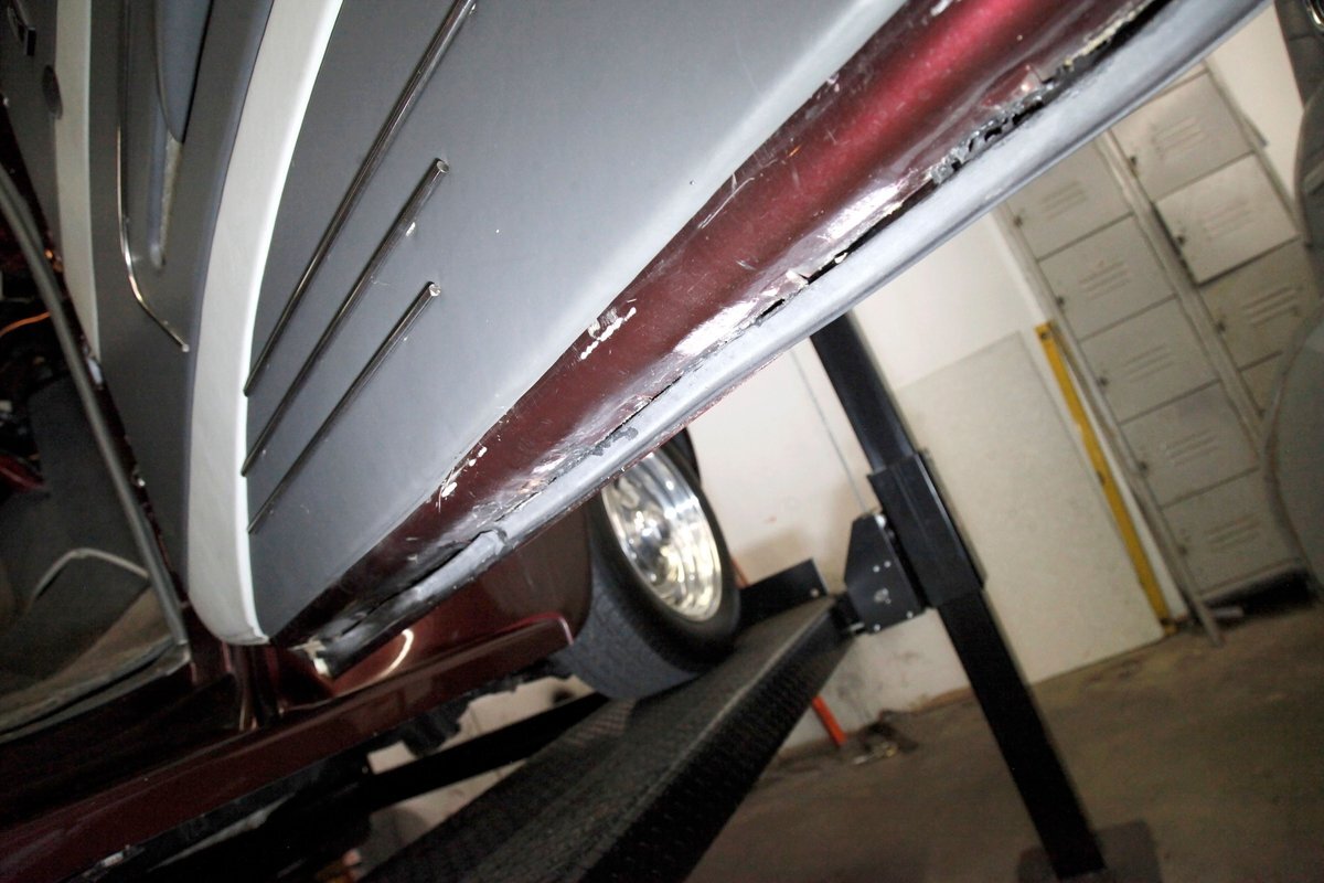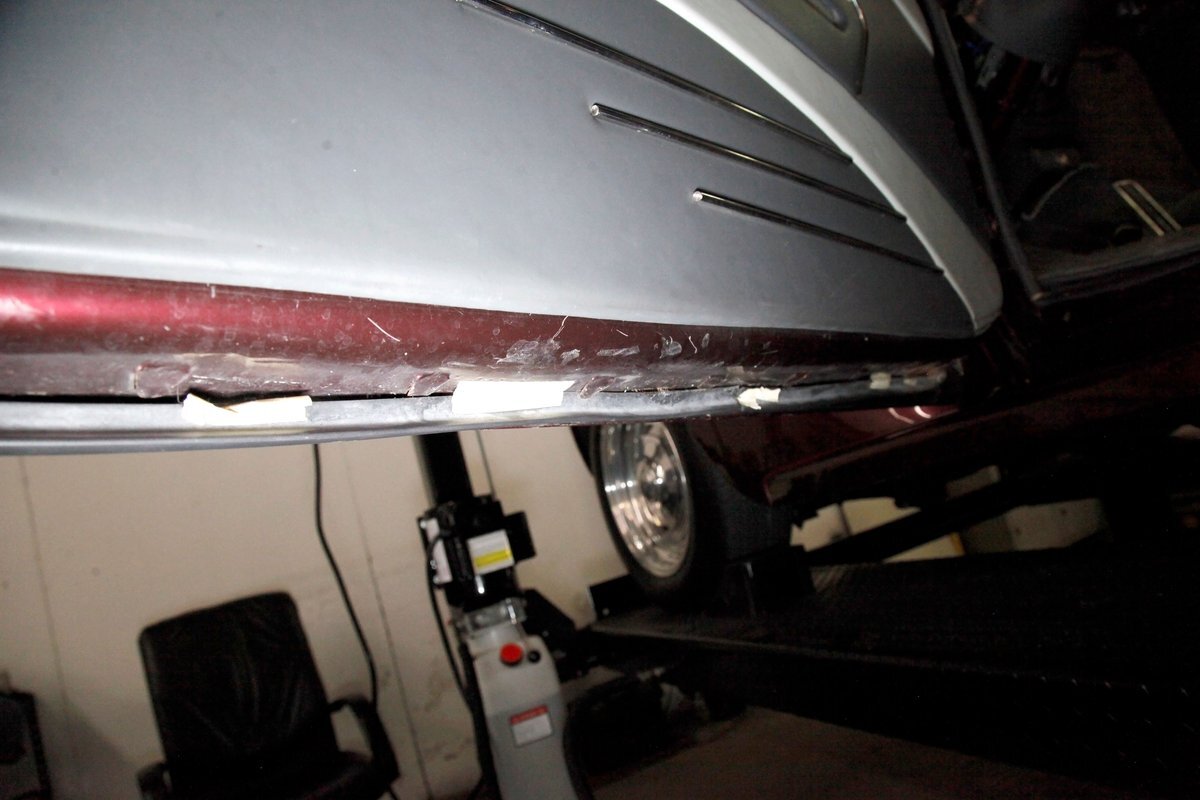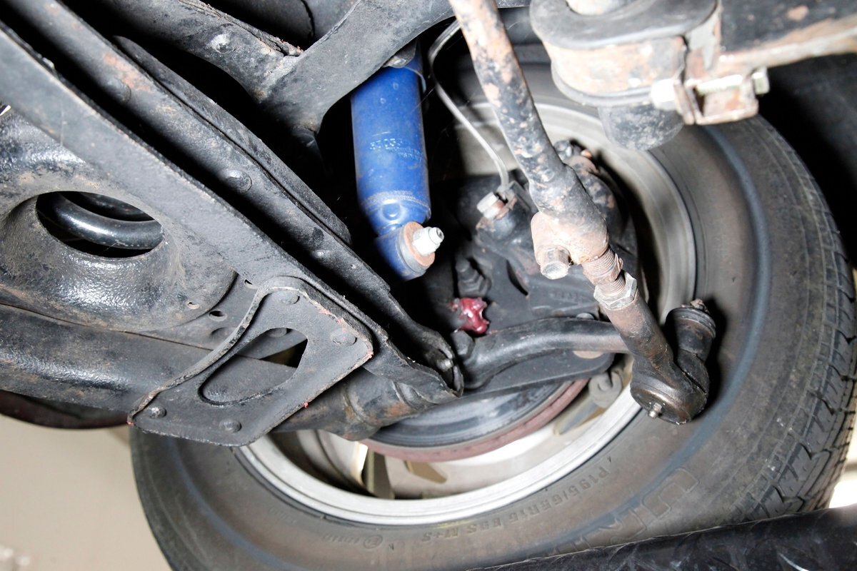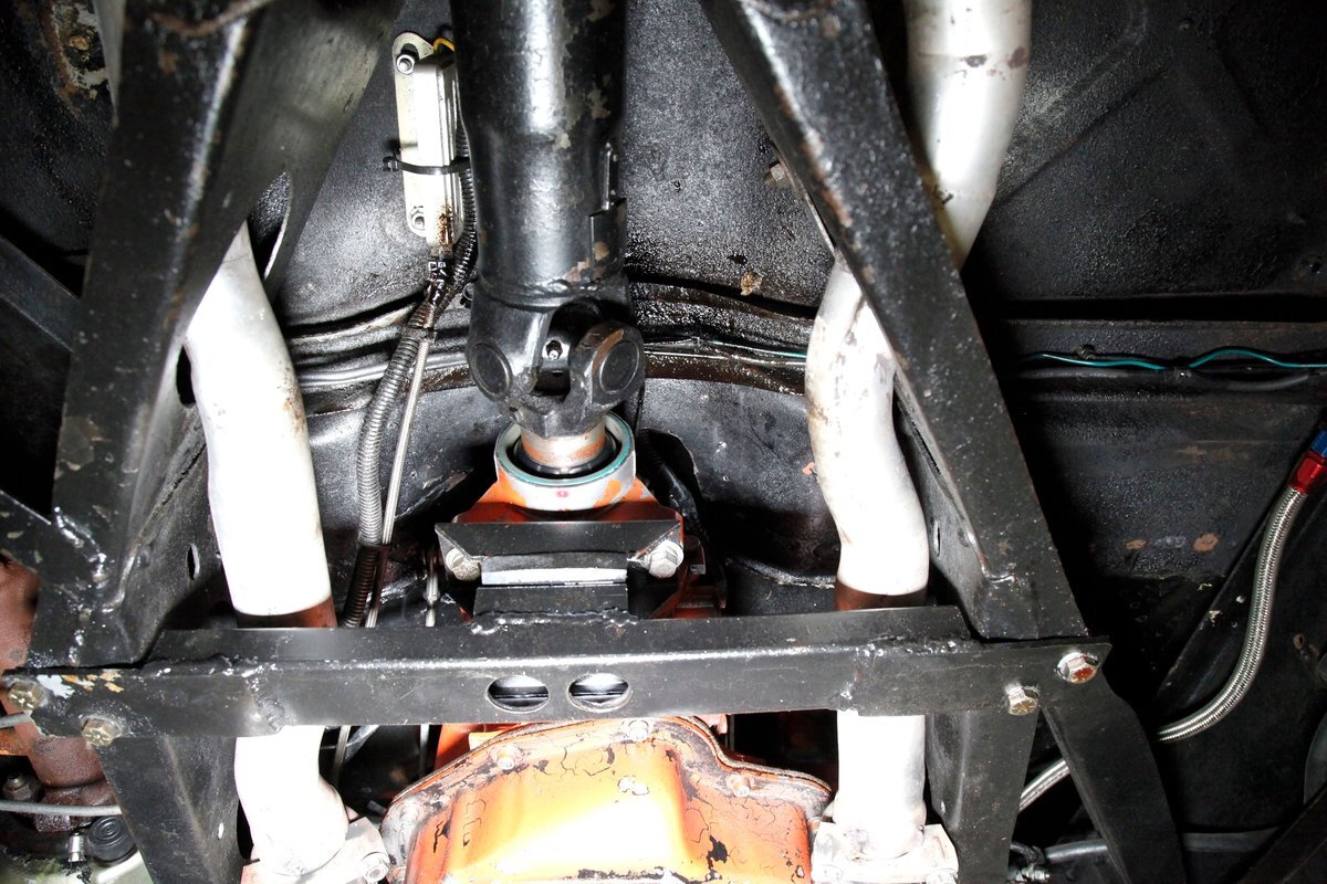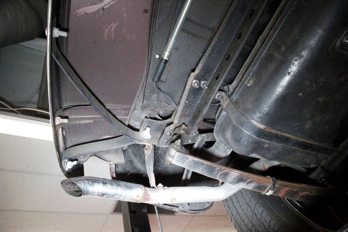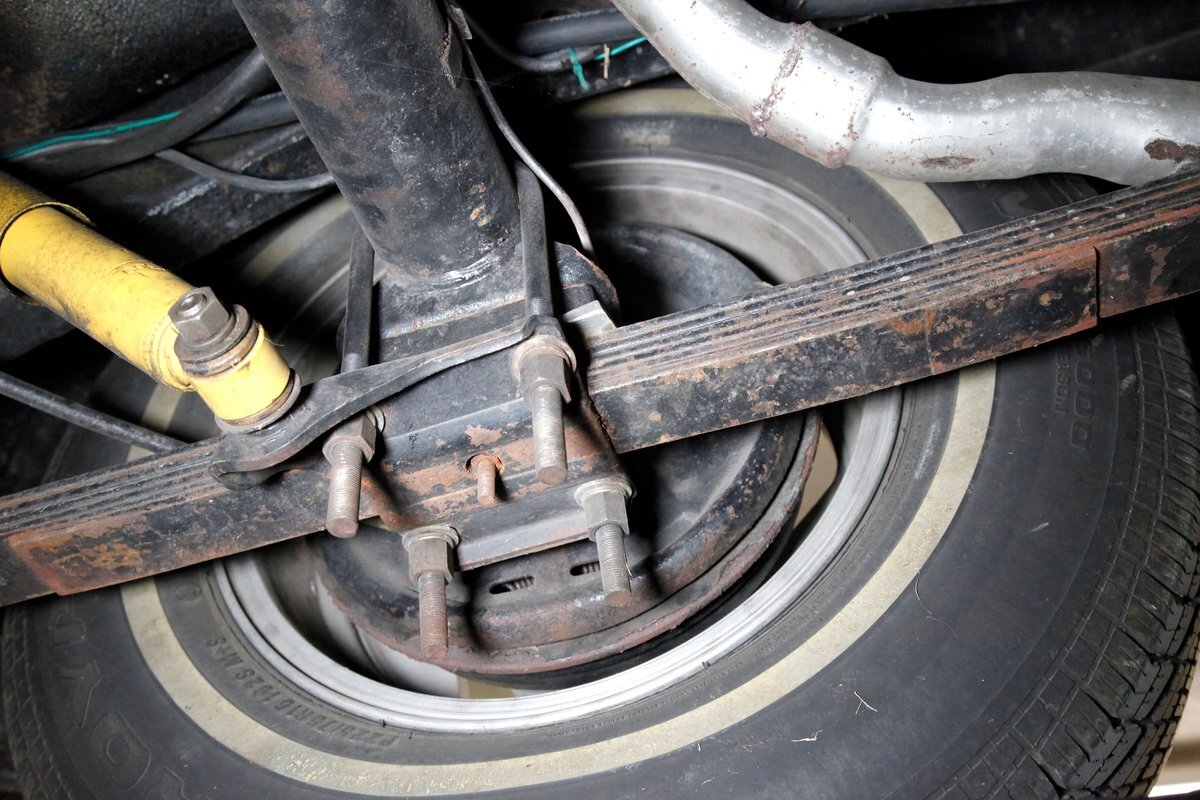 As expected the undercarriage has a slight patina look, minimal surface rust on the leaf springs and has been totally undercoated. Solid steel X framing is looking great and new lines snake throughout. The bottom end of engine is clean and drip free. Independent front suspension is on in front and leaf springs are on back. Power disc braking goes with the independent front and power discs are on back to bring this rodder to a stop.