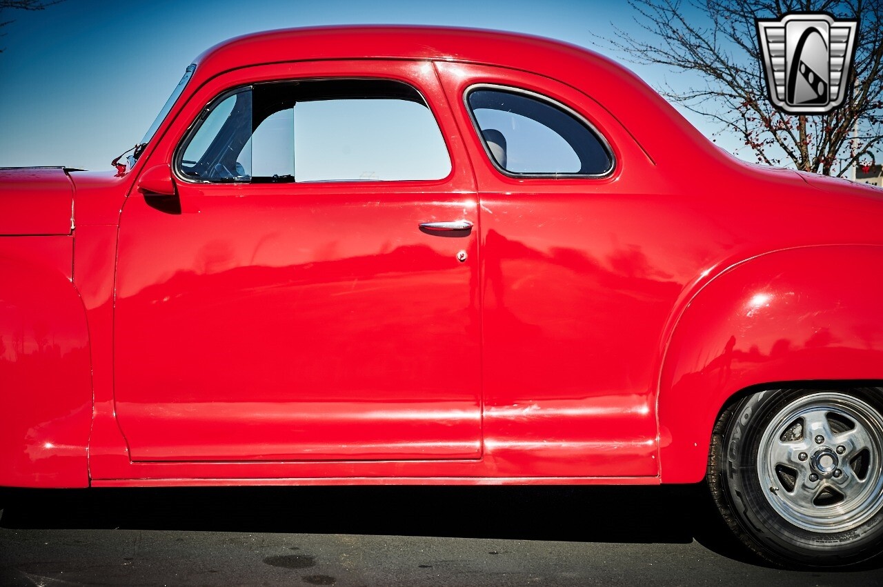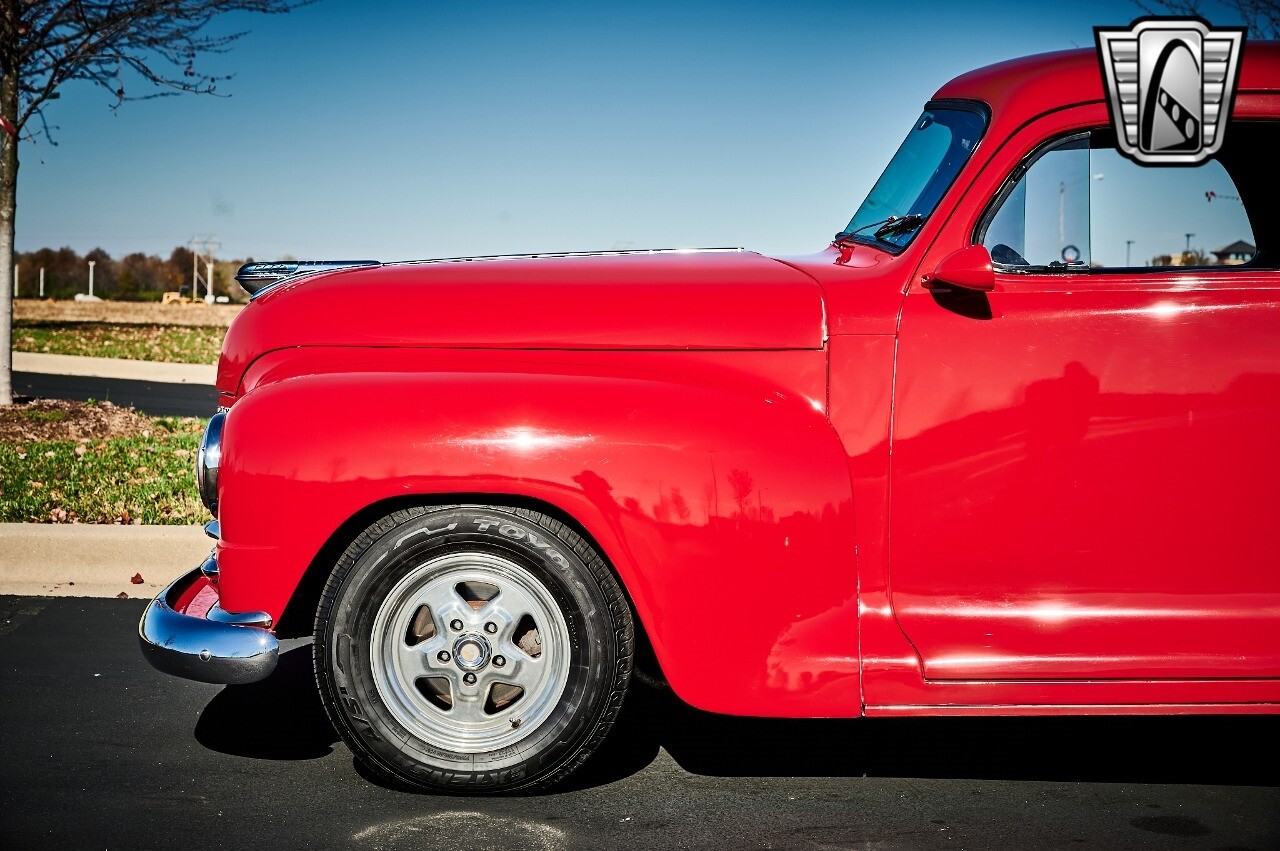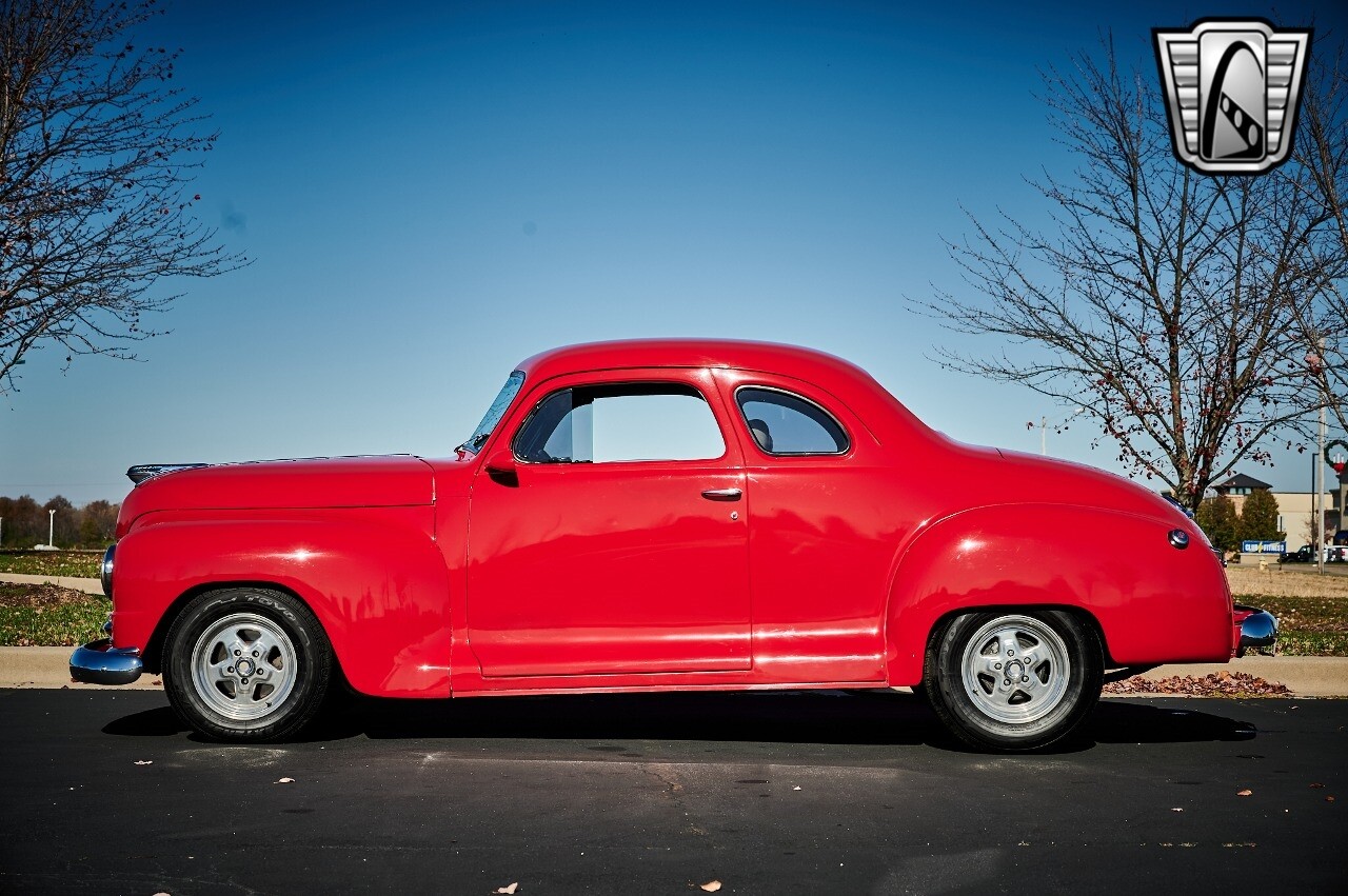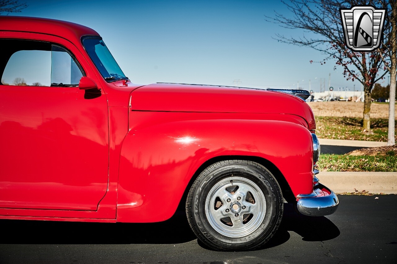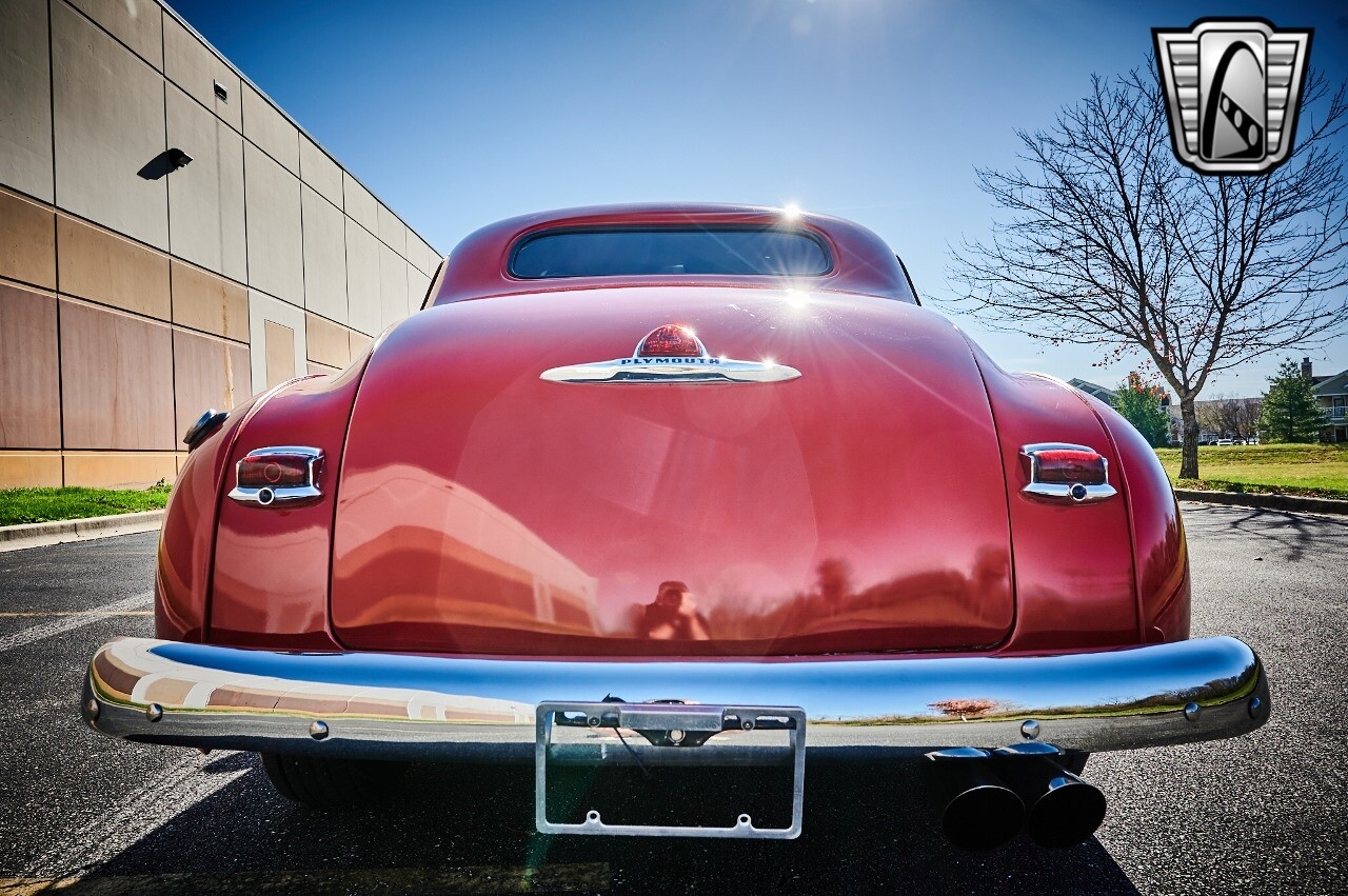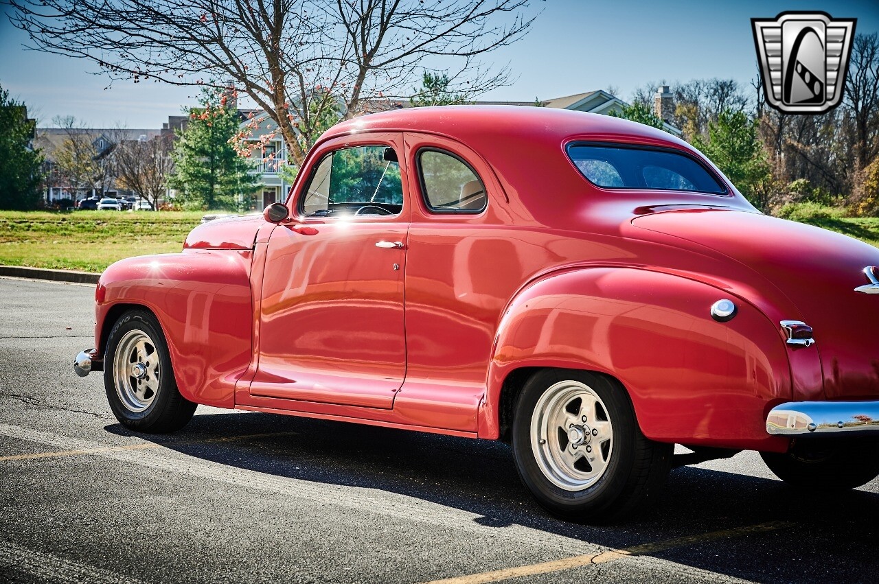 Gateway Classic Cars of STL is excited to list this 1948 Plymouth Super Deluxe coupe. This Victory Red 2 door beauty has a 318 CID V-8 Dodge engine paired up to an automatic transmission. This car has had a Nova subframe installed to modernize the front suspension system along with front power disc brakes. For added comfort & convenience, it has power steering, cruise control, LeCarra Steering wheel, tilt steering wheel & has had aftermarket air conditioning installed. The power tan door panels, floor mats and bucket seats with seat belts, compliment the blue carpet, dash & metal work inside. The below eye line dual outside mirrors add to its sleek look. This machine has staggered 15 inch alloy wheels wrapped in steel belted radial tires front & rear. According to the owner, this car has had air shocks installed on the rear of the car. The dash is complimented with functional Auto Meter gauges, indicator light for turn signals & a functioning nostalgic AM/FM Cassette player. The exhaust system has dual chrome tips both exiting the passenger side rear of the car. [ omitted ]. [ omitted ]. The St Louis showroom is located at 1237 Central Park Drive, O'Fallon Illinois 62269.