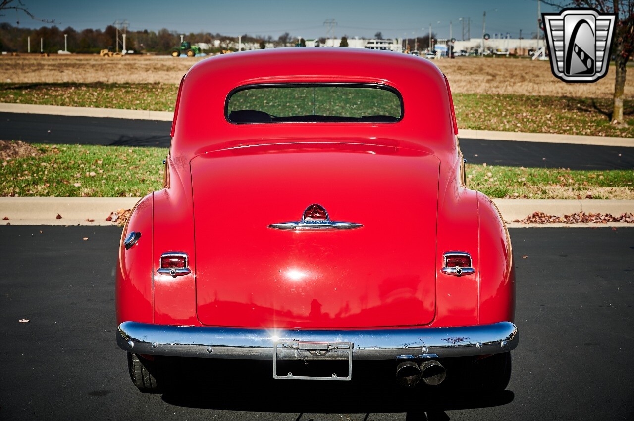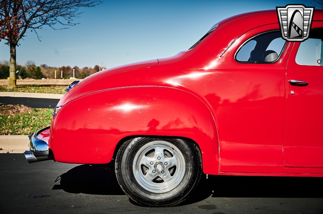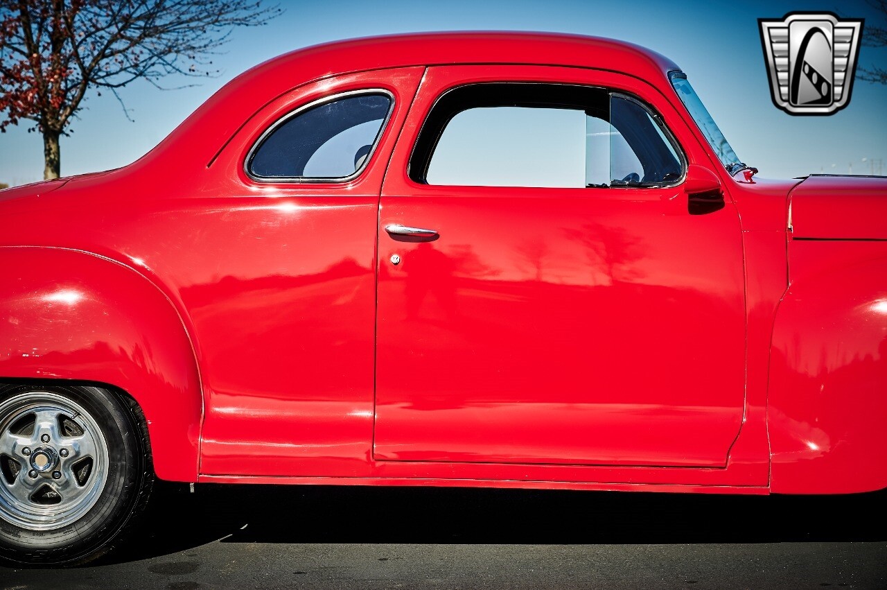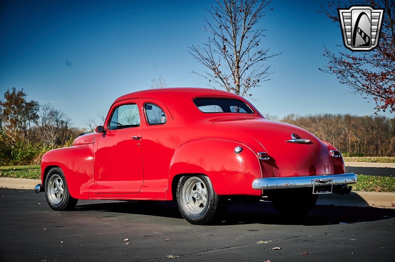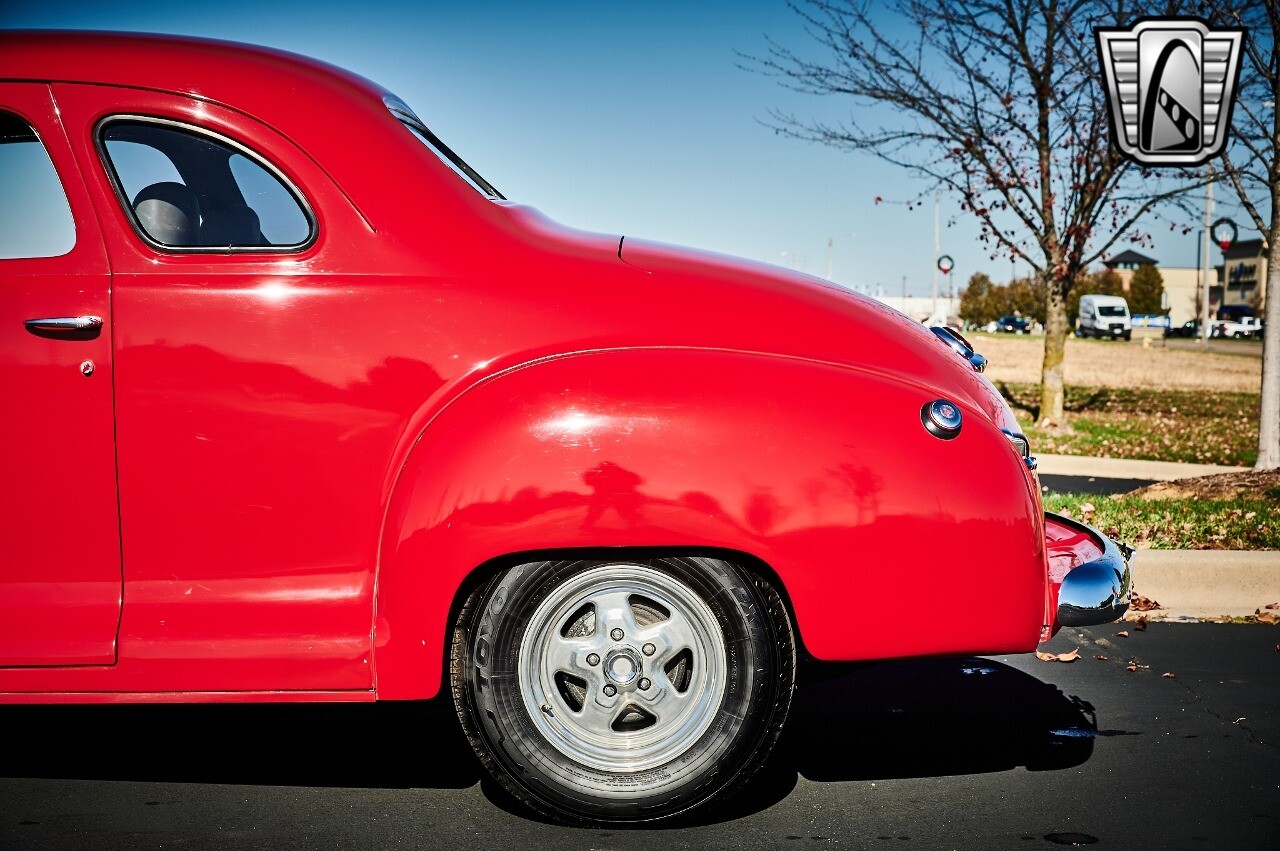 Gateway Classic Cars of STL is excited to list this 1948 Plymouth Super Deluxe coupe. This Victory Red 2 door beauty has a 318 CID V-8 Dodge engine paired up to an automatic transmission. This car has had a Nova subframe installed to modernize the front suspension system along with front power disc brakes. For added comfort & convenience, it has power steering, cruise control, LeCarra Steering wheel, tilt steering wheel & has had aftermarket air conditioning installed. The power tan door panels, floor mats and bucket seats with seat belts, compliment the blue carpet, dash & metal work inside. The below eye line dual outside mirrors add to its sleek look. This machine has staggered 15 inch alloy wheels wrapped in steel belted radial tires front & rear. According to the owner, this car has had air shocks installed on the rear of the car. The dash is complimented with functional Auto Meter gauges, indicator light for turn signals & a functioning nostalgic AM/FM Cassette player. The exhaust system has dual chrome tips both exiting the passenger side rear of the car. [ omitted ]. [ omitted ]. The St Louis showroom is located at 1237 Central Park Drive, O'Fallon Illinois 62269.
