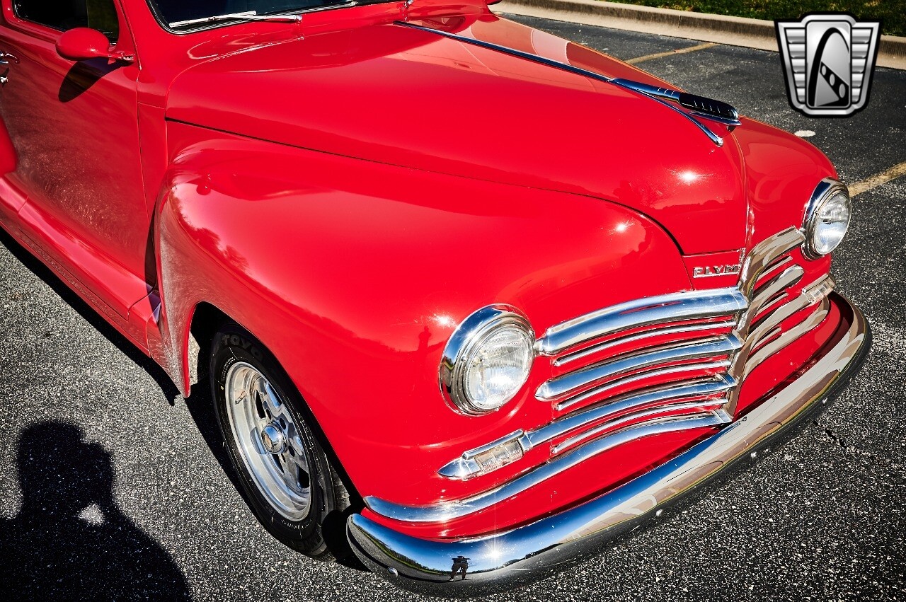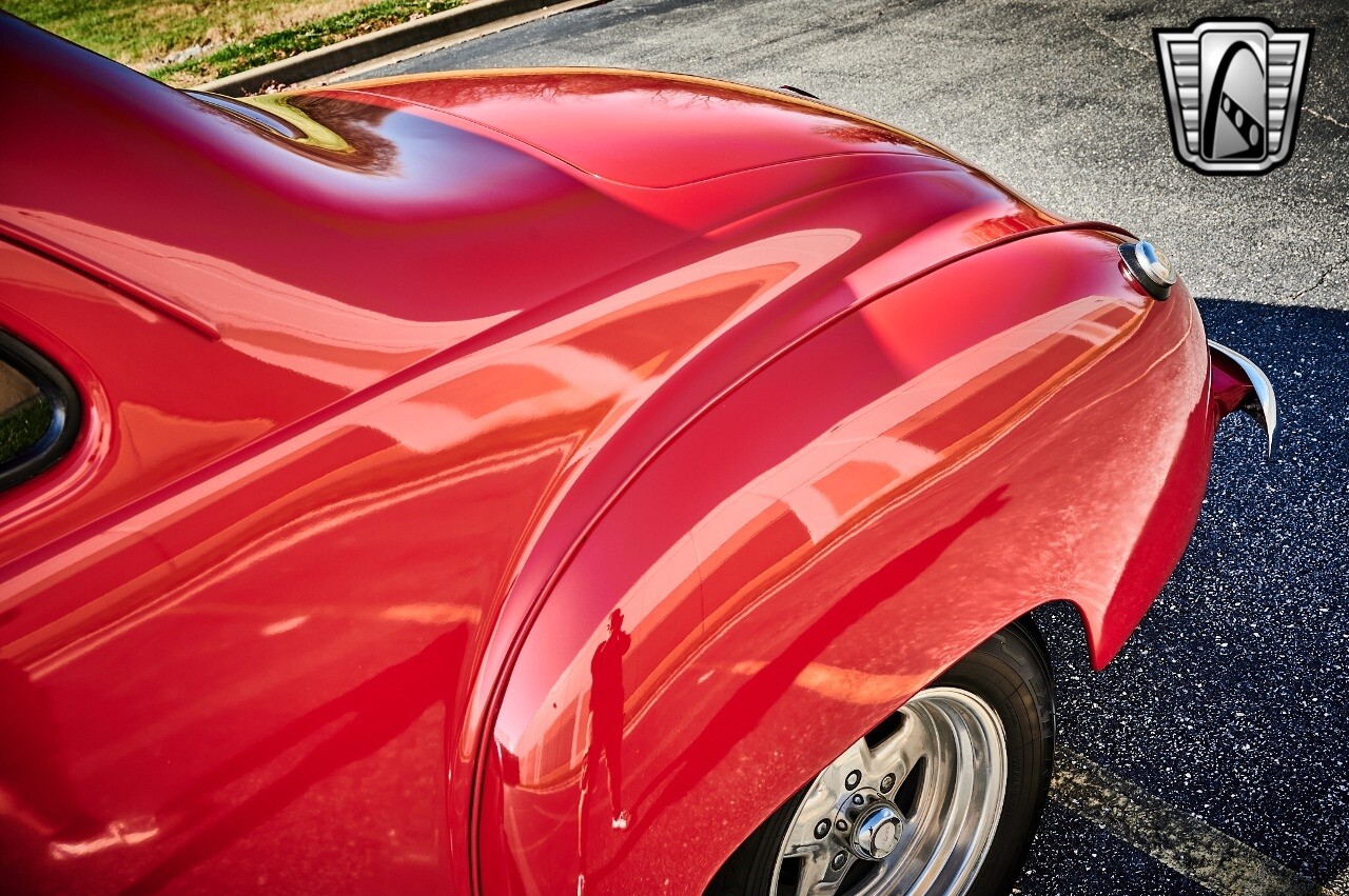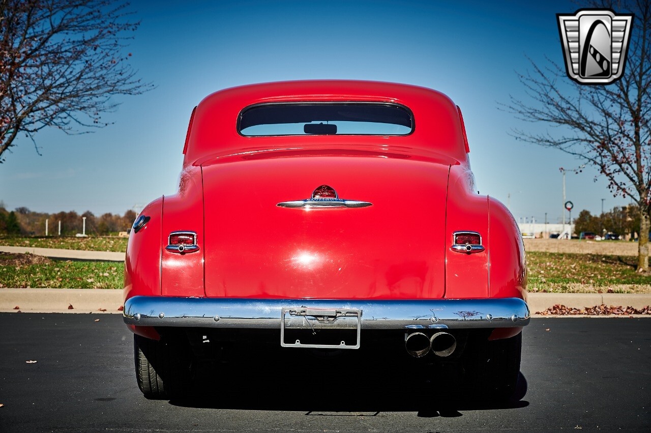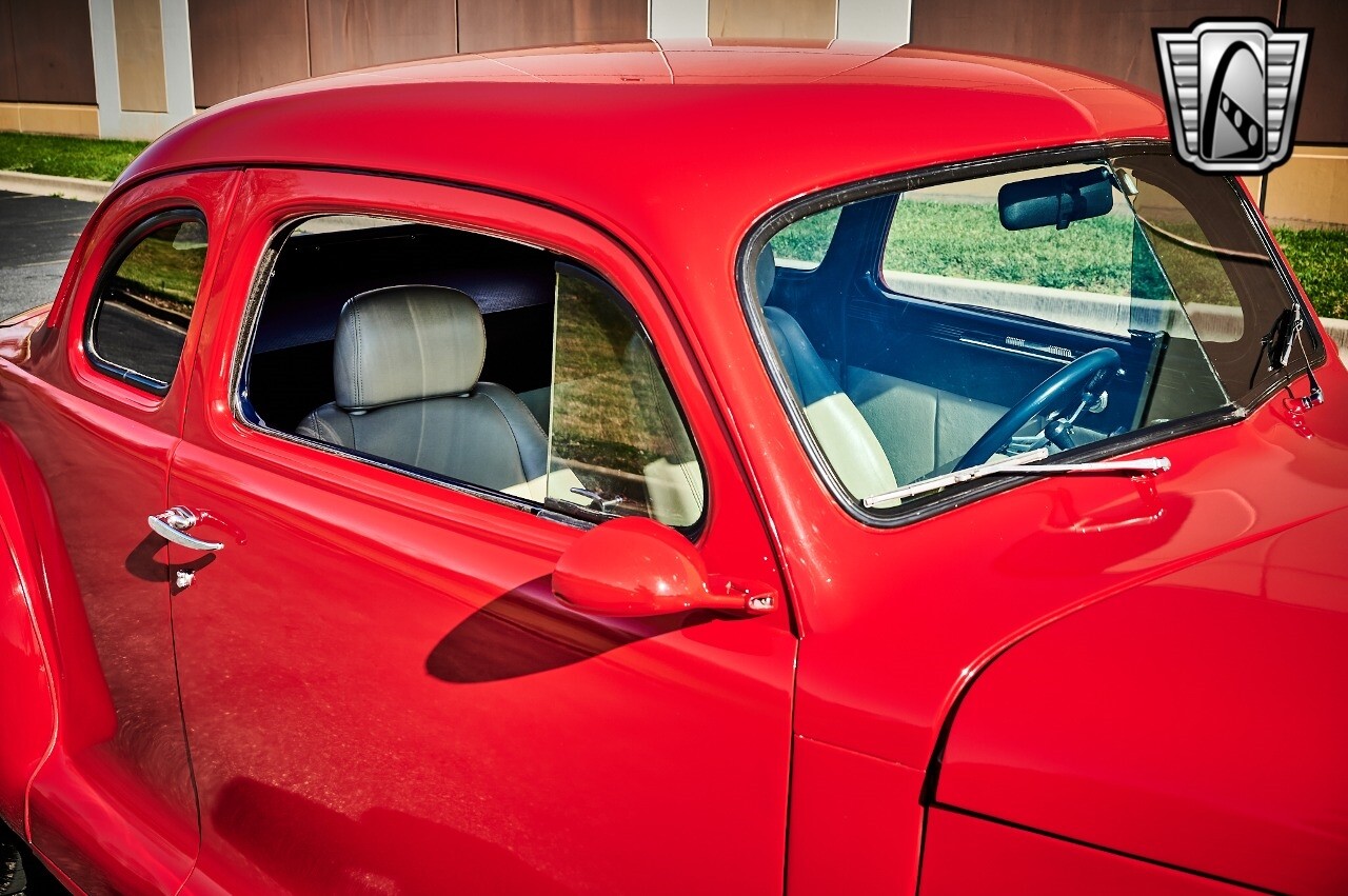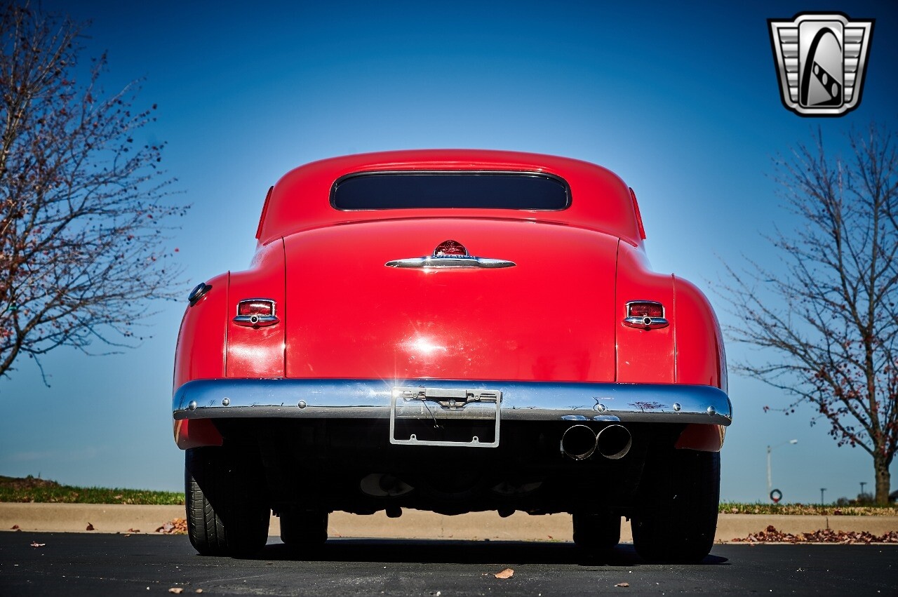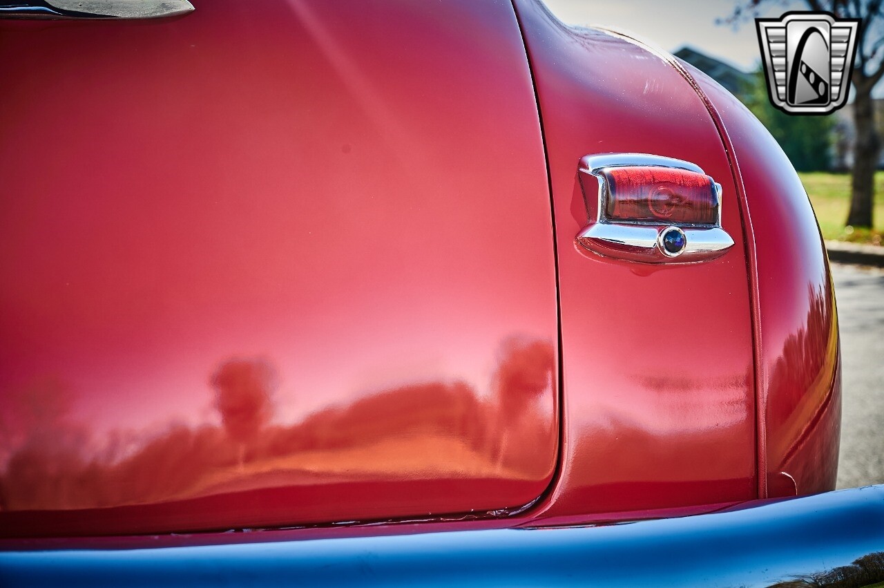 Gateway Classic Cars of STL is excited to list this 1948 Plymouth Super Deluxe coupe. This Victory Red 2 door beauty has a 318 CID V-8 Dodge engine paired up to an automatic transmission. This car has had a Nova subframe installed to modernize the front suspension system along with front power disc brakes. For added comfort & convenience, it has power steering, cruise control, LeCarra Steering wheel, tilt steering wheel & has had aftermarket air conditioning installed. The power tan door panels, floor mats and bucket seats with seat belts, compliment the blue carpet, dash & metal work inside. The below eye line dual outside mirrors add to its sleek look. This machine has staggered 15 inch alloy wheels wrapped in steel belted radial tires front & rear. According to the owner, this car has had air shocks installed on the rear of the car. The dash is complimented with functional Auto Meter gauges, indicator light for turn signals & a functioning nostalgic AM/FM Cassette player. The exhaust system has dual chrome tips both exiting the passenger side rear of the car. [ omitted ]. [ omitted ]. The St Louis showroom is located at 1237 Central Park Drive, O'Fallon Illinois 62269.