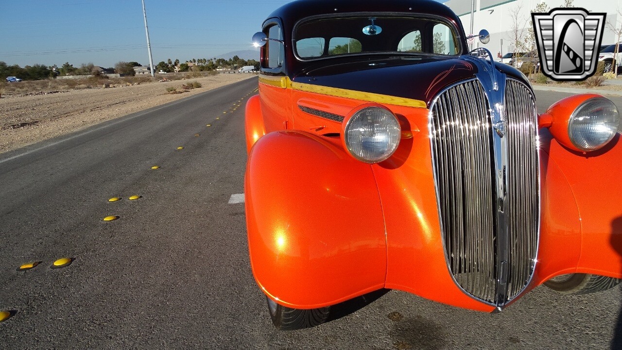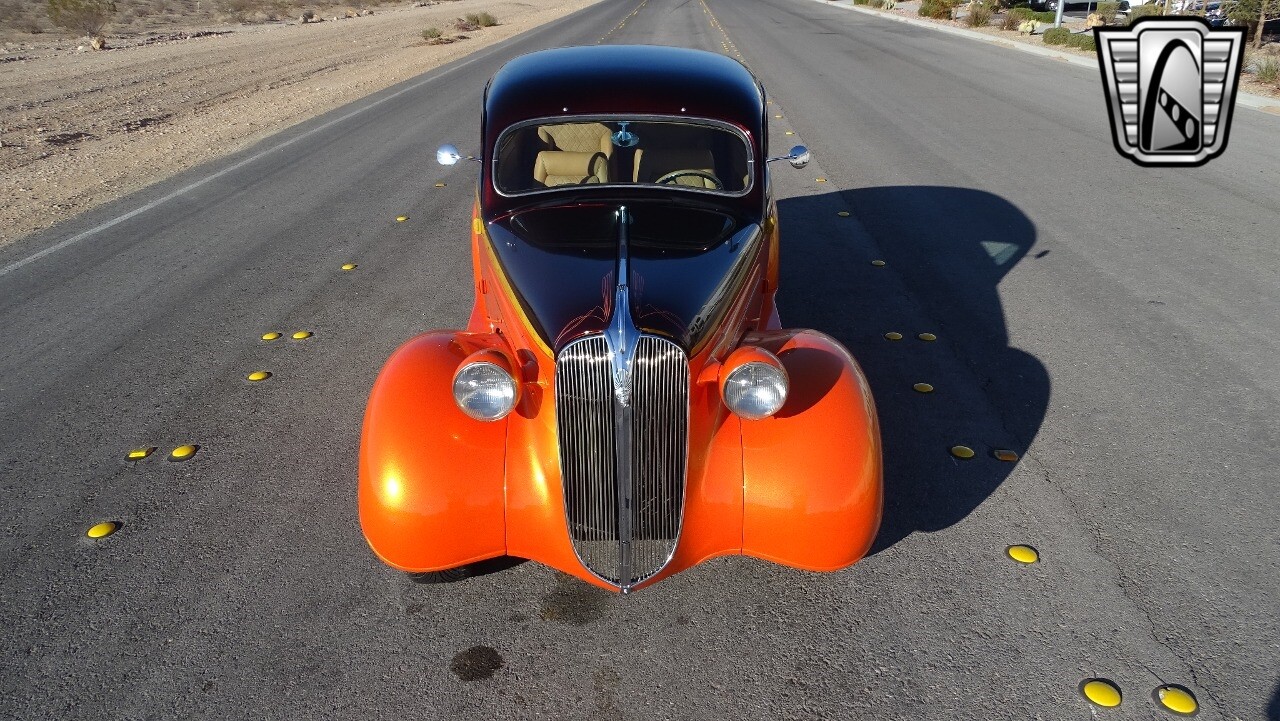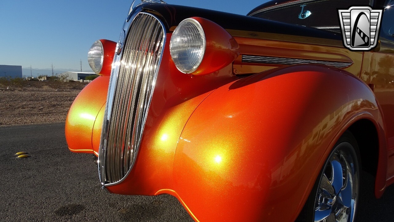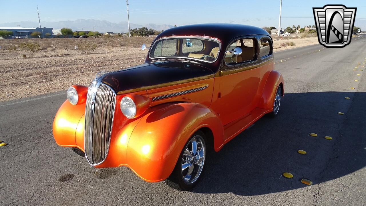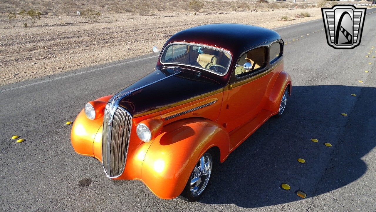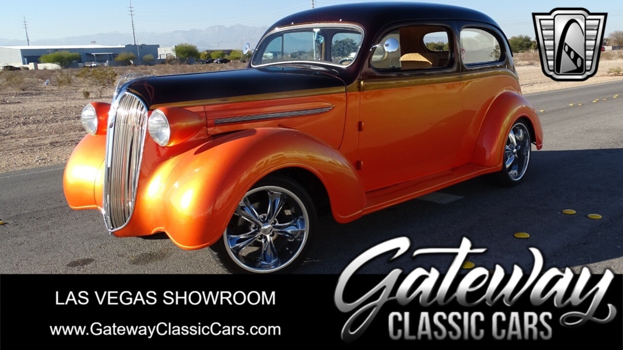 Gateway Classic Cars of Las Vegas presents this 1937 Plymouth P4. Plymouth only produced the P4 model for only one year. Coming out of the depression, the Plymouth P4 was designed with a longer and wider body than its predecessor. This custom P4 has an impressive look with it's two tone paint job of Burgundy and Orange and complimented with a Cream and Brown interior with modern seats and diamond stitching for both seats and headliner. It can adapt the stance to your liking with air suspension and it is accented nicely with Chip Foose Chrome custom wheels. This custom P4 is powered by 350 ci V8 mated to a automatic transmission. Additional upgrades include shaved door handles and modern sound system with subwoofer. Get this cool looking classic and cruise in style with this custom P4..